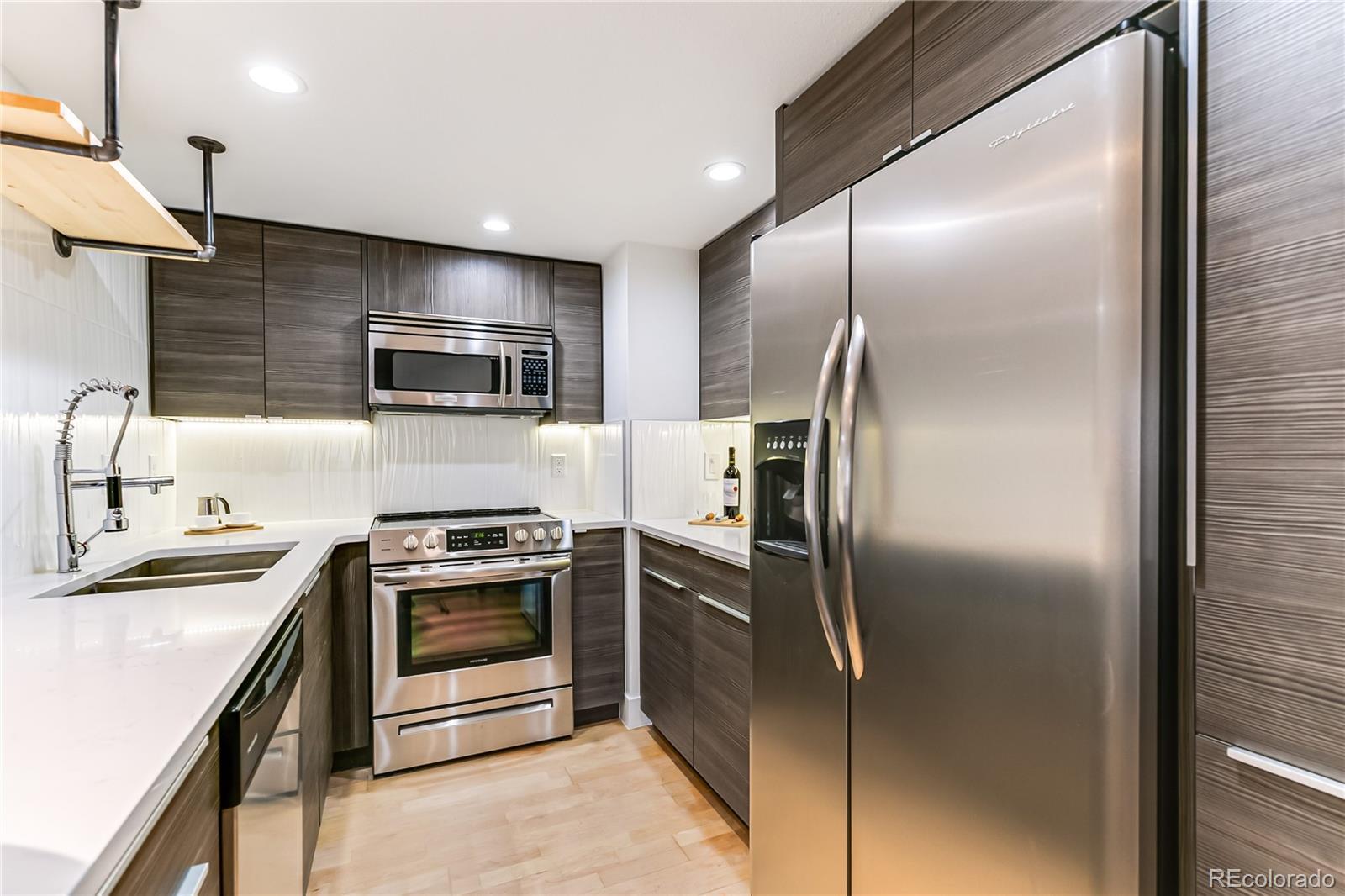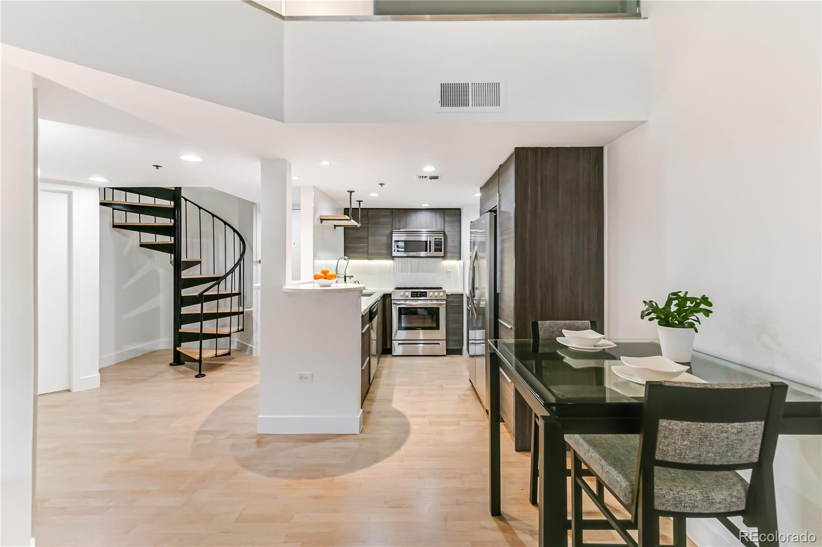Available Now! 5 Star Location with all the Cherry Creek North Amenities literally right outside your front door. Rent is $3500. The place is currently furnished and rent would be $3800. An ideal location as most rental units are much further East, and not in such a hot spot as this updated Top Floor Condo. Furnished or unfurnished - your call. Unit #413 boasts 2 BR and 2 full Baths with updated finishes throughout, a modern kitchen, and stunning bathrooms. A 2-story layout with vaulted ceilings enhance the spacious and open feel. West facing with a quaint balcony perfect for that morning espresso or evening sunset cocktail. A cool spiral staircase takes you upstairs to the spacious primary suite complete with a walk-in closet with organized and efficient shelving. Large en-suite bathroom with double sinks and stacked Washer Dryer closet. The downstairs bedroom can also easily be a studio/office/flex space, and has access to its own private bathroom. Secure underground parking with 1 guaranteed spot. Secure underground parking at least one parking spot. The second spot next to the wall under a vent is a bit tighter, but does work (see photos). Parking is a premium in Cherry Creek North, so this is invaluable!