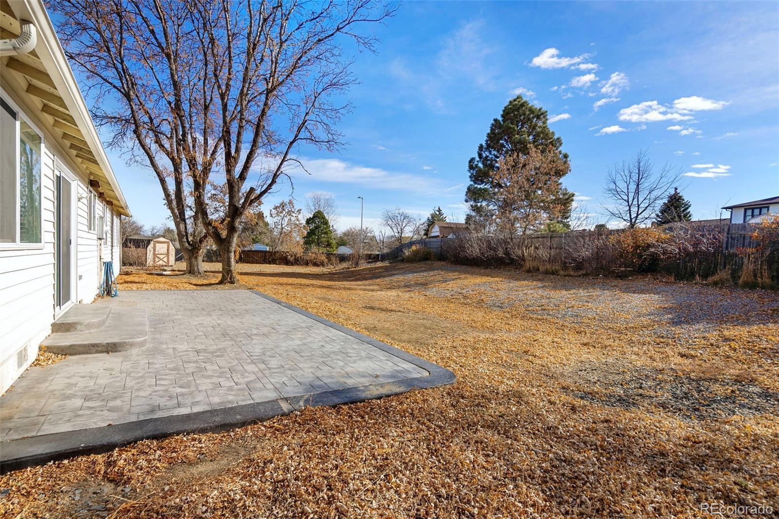 Updates galore in this 3-bed/2-bath sprawling ranch home in Thornton. It sits on a massive 15,783sf lot and has outdoor space for days in both the front and back. The southern-facing backyard is enormous with a few mature trees for shade in the hot summer. It's fully fenced and has a tough shed for extra storage of yard equipment. There is a stamped concrete patio - perfect for relaxing in the hammock or hosting BBQ night. The open floor plan is bright with recessed LED lights throughout the common areas. The kitchen has stainless steel appliances and quartz countertops. The sink was replumbed to accommodate the deeper country sink. Brush nickel hardware all over. LVP throughout the home. Living room has a brick hearth that adorns the electric fireplace. NO STAIRS! Main floor washer/dryer (included with sale.) Utility room closet has floor access to the crawlspace. All the bedrooms have a ceiling fan. The Goodman A/C and furnace were replaced in 2022. Newer vinyl windows (2020) come with coverings. Water heater is 2015. Brand new roof (2024.) Garage door and opener can be controlled from your phone. Driveway has been replaced (2024.) Sprinkler system front and back were installed in 2020. Trash day is Wednesday ;-) Let's do this!