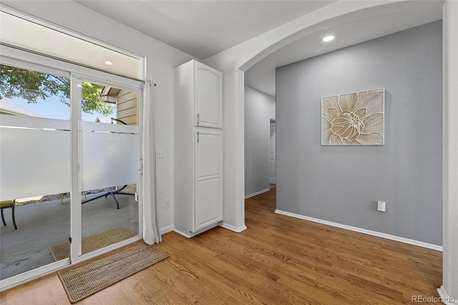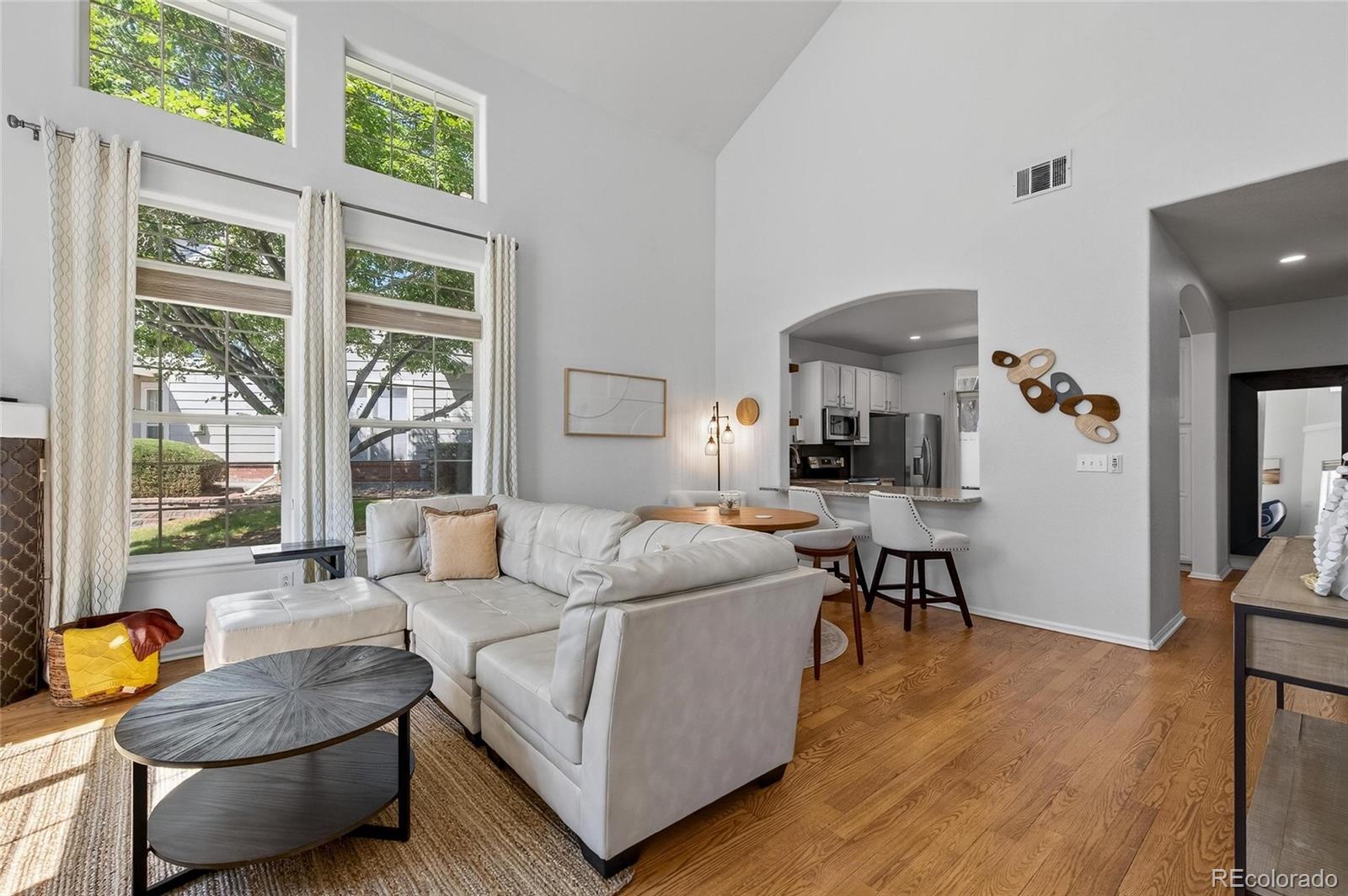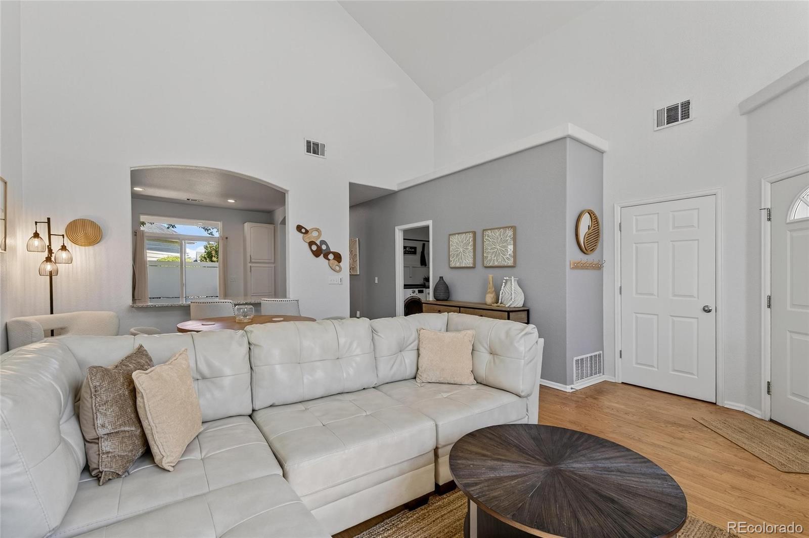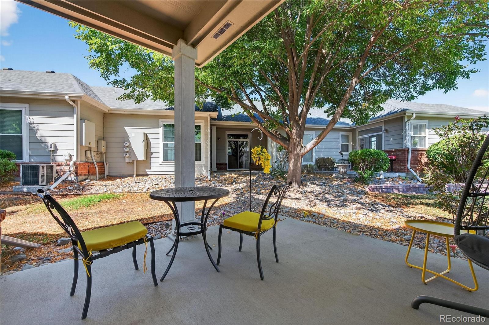 If you’re ready for a beautifully remodeled turnkey home, then step into modern comfort in this gorgeous 2-bedroom, 2-bath, patio-style ranch (townhouse, legal says condo) home. Location near 104th and Colorado Blvd, this bright, open floor plan boasts 20ft high vaulted ceilings in the living/dining room area. Oversized windows add to this light filled beauty. Warm solid hardwood floors that flow into a sleek kitchen with quartz countertops, stainless appliances, and a stylish breakfast bar. The primary suite feels like a retreat with its spa-inspired bathroom featuring double vanities and a walk-in shower wrapped in luxurious tile, double shower head, his and hers, custom 9' barn door, walk-in closet, built-in cabinet for additional storage. Laundry/mud room with built-in cabinetry. Washer, dryer included. A second bedroom and 3/4 bath offers plenty of space for guests, or a home office. Top down, bottom up blackout shades in bedrooms, auto lights in laundry and primary suite walk-in closet, tons of storage - lots of extra features you'll discover in this great home. All mechanical is less than 5 years old. Oversized 2 car garage with a massive finished attic space above accessed by drop down stairs. New roof 2024. All furnishings are for sale including art work, except the primary bedroom set, it's not for sale. Enjoy morning coffee on your covered patio in the peaceful, quiet community setting. With its modern updates and lock-and-leave convenience, this home is the perfect blend of style and function.