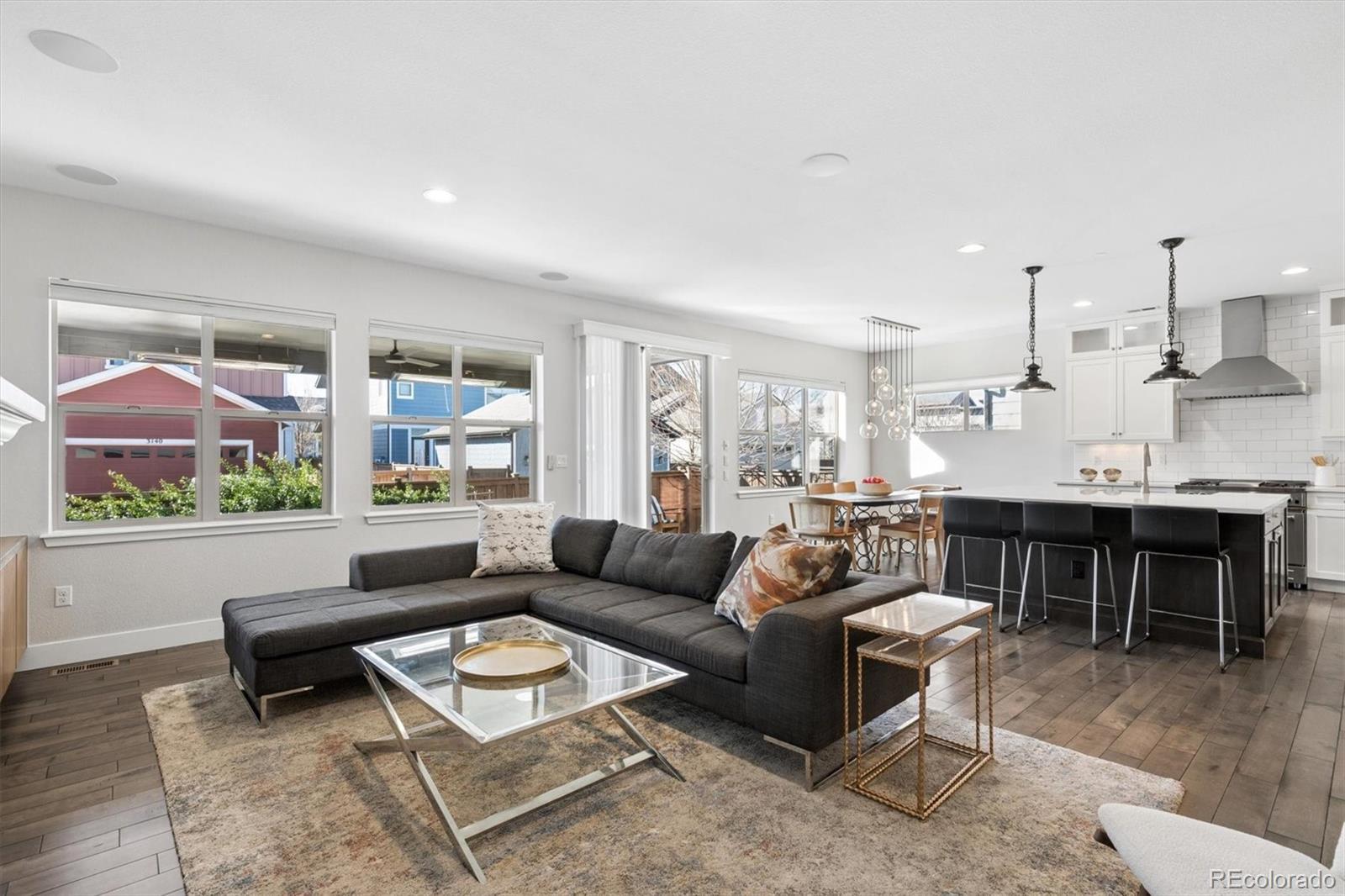 ADDITIONAL PROFESSIONAL PHOTOS WILL BE UPLOADED FRIDAY 2/27 - Welcome to 7840 E. 32nd Ave., a stunning Infinity home in the heart of Central Park West along the 32nd Avenue Greenway. Ideally positioned for vibrant community living and peaceful outdoor surroundings, this home blends luxury, comfort, and thoughtful design. An expansive two-story entry filled with natural light and fresh interior paint creates a bright, welcoming feel. The gourmet kitchen anchors the home with floor-to-ceiling cabinetry, designer appliances, and an oversized island perfect for gatherings and everyday living. Outdoor spaces shine with a side yard and patio with playset, a covered and heated back patio for year-round enjoyment, and a private hot tub for relaxing under the Colorado sky. Upstairs, the oversized primary suite offers a spa-like five-piece bath, steam shower, and custom walk-in closet. Three additional bedrooms, two baths, a laundry room, and a versatile bonus room create a highly functional upper level. The finished basement is designed for entertaining with a media room and wet bar, craft room, fifth bedroom (currently a workout space), ¾ bath, and a temperature-controlled wine room concealed behind a double bookcase. Sliding black wine shelving reveals a secure storage room with a safe. The three-car garage includes two EV chargers, Gladiator slat wall storage, and a custom epoxy floor. Recent upgrades include new carpeting, a whole-house humidifier, tankless hot water heater, newer dryer, and custom mudroom with abundant storage. This is more than a home—it’s a lifestyle. Review the amenities sheet to experience all this exceptional property offers.
