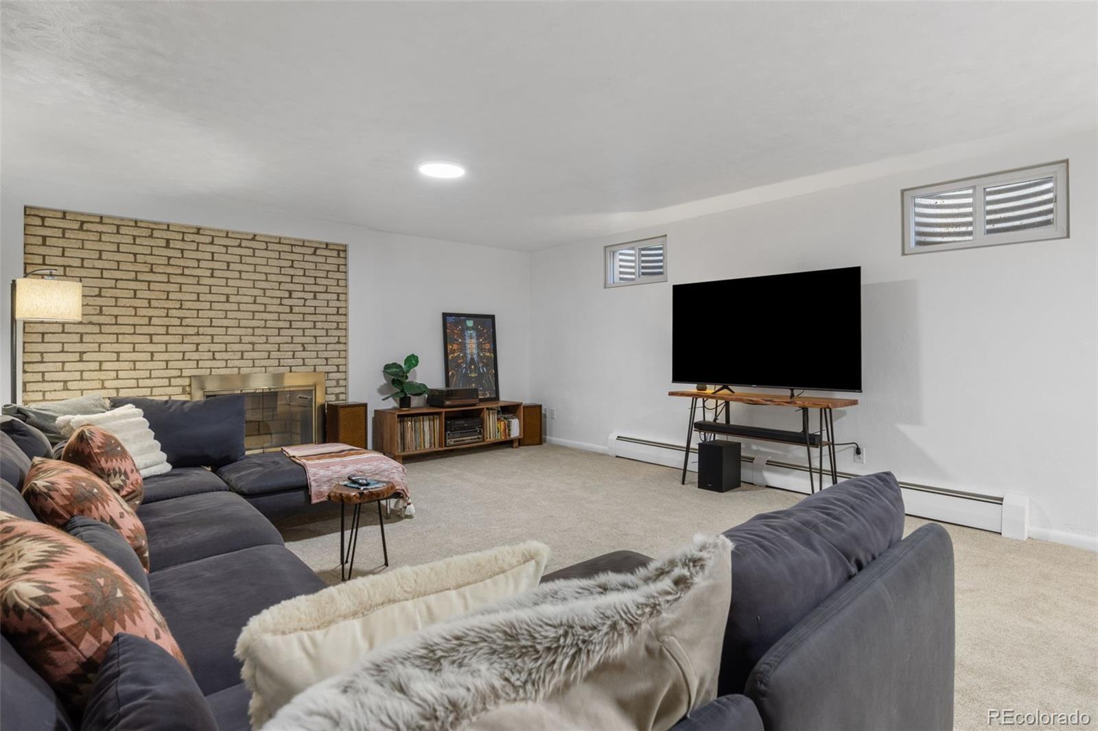 Nestled on a quiet .28-acre lot in Wheat Ridge’s Applewood neighborhood, this classic brick ranch is a rare blend of mid-century character, thoughtful updates, and everyday livability—ready for its next chapter. Sunlight fills the living room with its gas fireplace and coved ceiling, flowing into a dining room and hardwood-floored eat-in kitchen. A bright sunroom offers the perfect spot for morning coffee, while the primary bedroom with 3/4 bath and two additional bedrooms—one with a built-in desk—provide comfort and flexibility. The basement extends the home’s livability with a second expansive living room—ideal for media, play, or guest space—along with a non-conforming bedroom, an open updated laundry area, and an additional unfinished flex room perfect for storage, fitness, or future value-add. A sizable crawl space provides even more storage or long-term potential. Outside, enjoy the covered patio just off the back door, a 220v concrete pad for entertaining or unwinding, plus mature trees, a newer fence, and updated siding, roof, and garage door. A two-car garage, circular driveway, fresh paint, and new carpet complete the move-in-ready package. Close to Crown Hill Park, Applewood Village, additional parks, the Wheat Ridge Rec Center, Colorado Mills, light rail, and major highways, this home delivers comfort, character, and an effortless lifestyle.