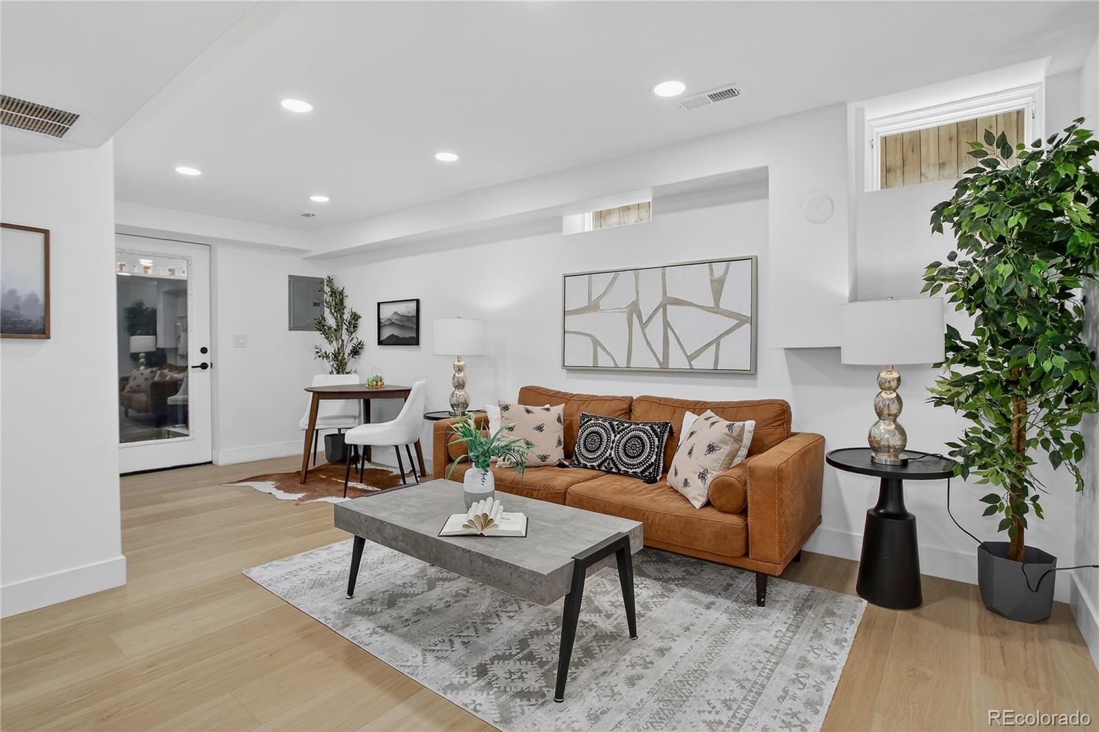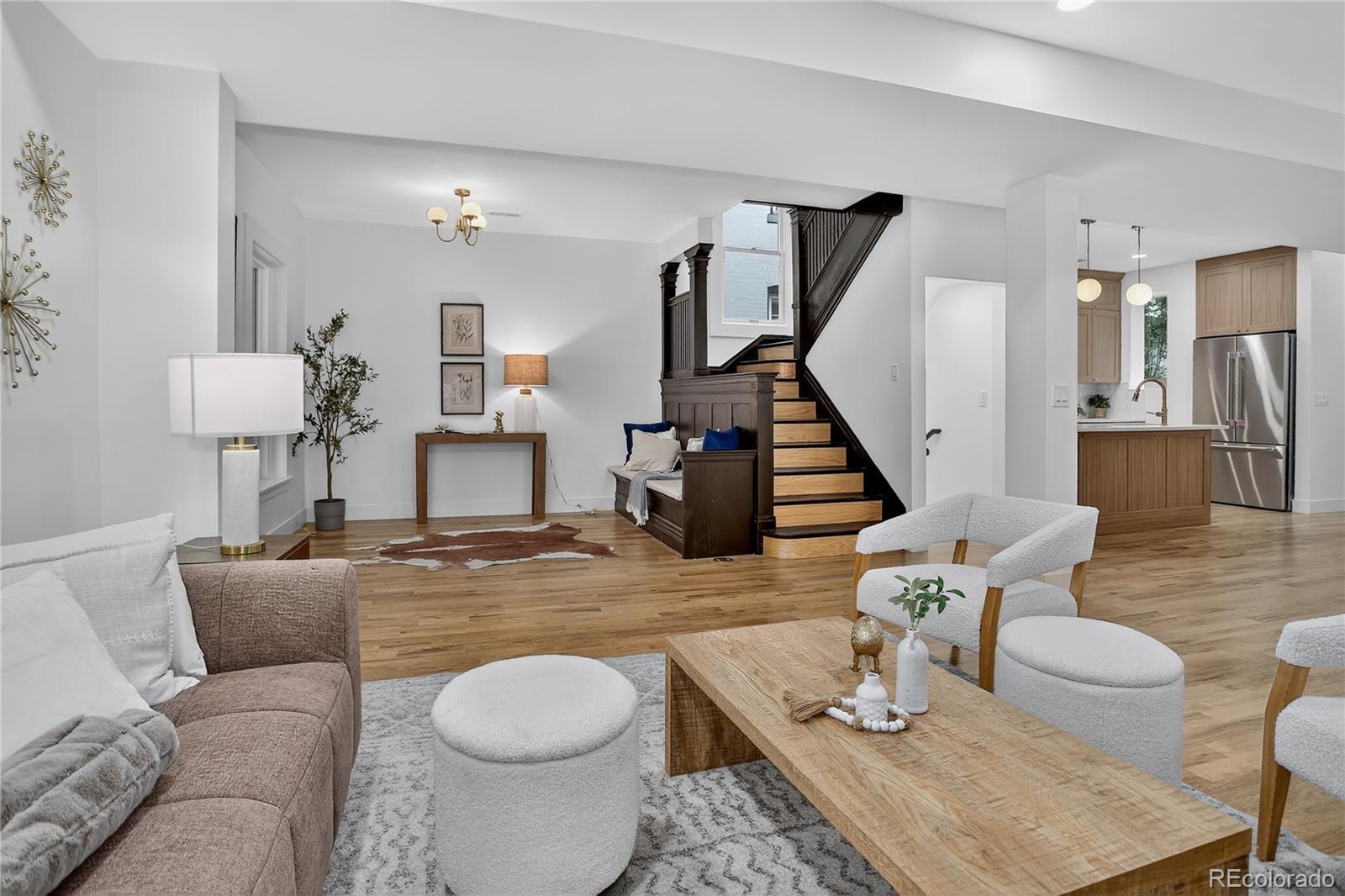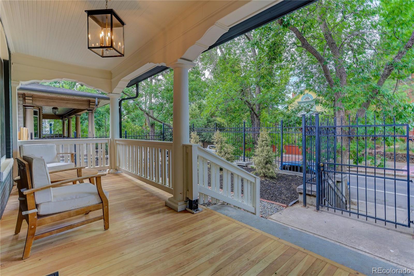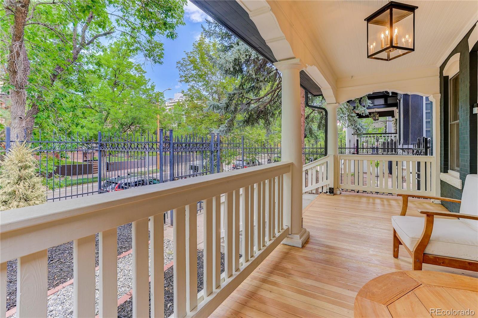 Located in the heart of the East Seventh Ave Historic District, this beautifully updated Denver Square blends classic charm with modern luxury in the most seamless way. From the moment you step inside, the restored wood bench and original stair railing and exposed brick set the stage for the craftsmanship & character that define this home. The main level is made for entertaining, featuring an open layout, anchored by a fully remodeled chef’s kitchen. You’ll love the 6-burner gas range, custom cabinetry, walk-in pantry, and built-in outlets! A bright and airy flex space opens through two sets of new Pella sliding glass doors to the covered patio and private backyard— A half bath adds convenience without sacrificing style. Upstairs, the primary suite is a true retreat + a terrific size! Enjoy a spa-inspired ¾ bath with floor-to-ceiling marble tile, a custom walnut dual vanity, an oversized walk-in closet (design it your way with a seller concession!), and private laundry. Two additional bedrooms and a beautifully updated full bath with a double vanity complete this level. The finished basement with its own private entrance offers incredible versatility—ideal for guests, in-laws, or multigenerational living. It features a large bedroom with egress, a ¾ bath, living area, kitchenette, and second laundry setup. Outside, you’ll find a serene backyard with mature trees, lush grass, a blooming hibiscus tree, and a spacious covered patio perfect for outdoor dining. You have a garage and large RV/extra parking as well! This home has been renovated top to bottom, including new double-pane wood windows, wood sliding doors, hardwood floors, roof, AC, furnace, plumbing, electrical, sprinklers, and more. The finished basement—HAS ITS OWN ENTRANCE—functions perfectly as a guest suite or multigenerational living space, offering a large bedroom with egress window, ¾ bath, living area, kitchenette, and second laundry.