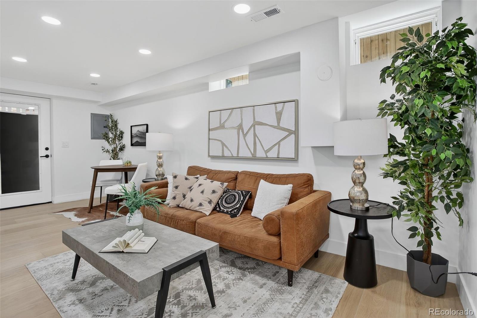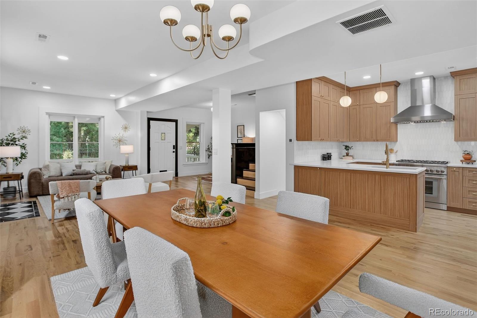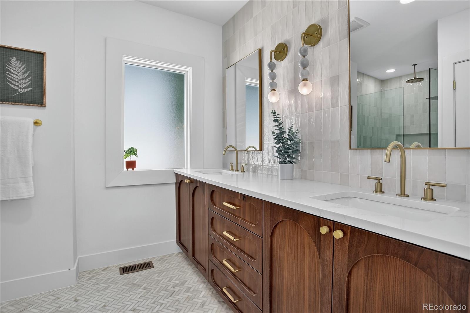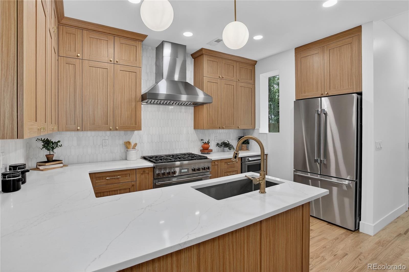 Located in the heart of the East Seventh Ave Historic District, this beautifully updated Denver Square blends classic charm with modern luxury in the most seamless way. From the moment you step inside, the restored wood bench and original stair railing and exposed brick set the stage for the craftsmanship & character that define this home. The main level is made for entertaining, featuring an open layout, anchored by a fully remodeled chef’s kitchen. You’ll love the 6-burner gas range, custom cabinetry, walk-in pantry, and built-in outlets! A bright and airy flex space opens through two sets of new Pella sliding glass doors to the covered patio and private backyard— A half bath adds convenience without sacrificing style. Upstairs, the primary suite is a true retreat + a terrific size! Enjoy a spa-inspired ¾ bath with floor-to-ceiling marble tile, a custom walnut dual vanity, an oversized walk-in closet (design it your way with a seller concession!), and private laundry. Two additional bedrooms and a beautifully updated full bath with a double vanity complete this level. The finished basement with its own private entrance offers incredible versatility—ideal for guests, in-laws, or multigenerational living. It features a large bedroom with egress, a ¾ bath, living area, kitchenette, and second laundry setup. Outside, you’ll find a serene backyard with mature trees, lush grass, a blooming hibiscus tree, and a spacious covered patio perfect for outdoor dining. You have a garage and large RV/extra parking as well! This home has been renovated top to bottom, including new double-pane wood windows, wood sliding doors, hardwood floors, roof, AC, furnace, plumbing, electrical, sprinklers, and more. The finished basement—HAS ITS OWN ENTRANCE—functions perfectly as a guest suite or multigenerational living space, offering a large bedroom with egress window, ¾ bath, living area, kitchenette, and second laundry.