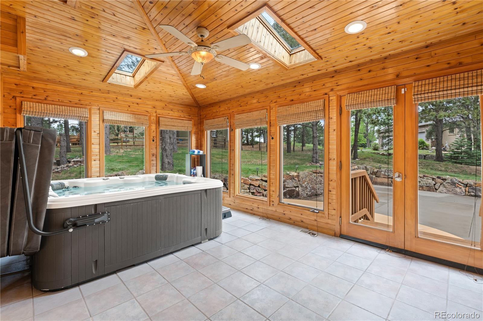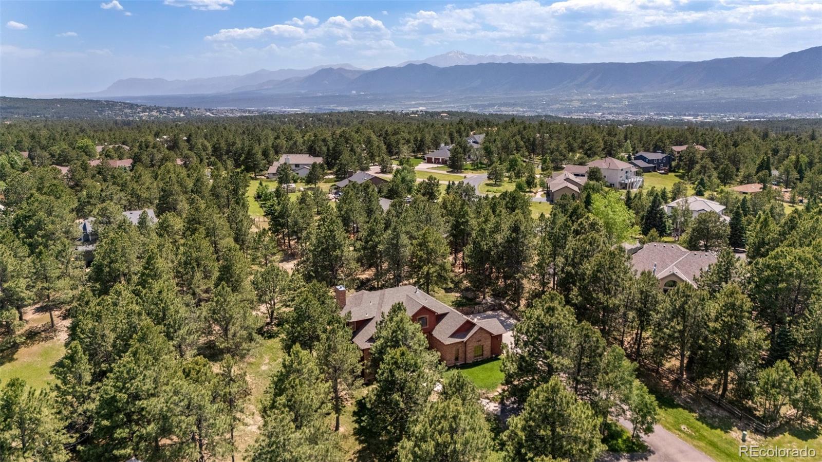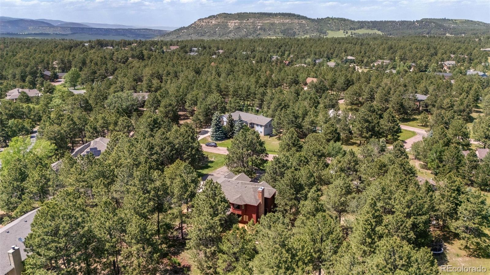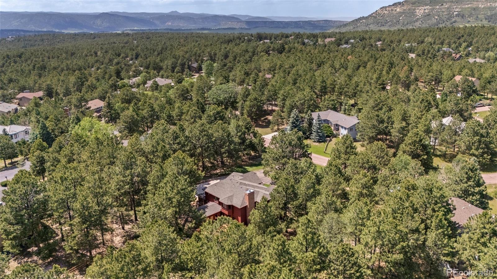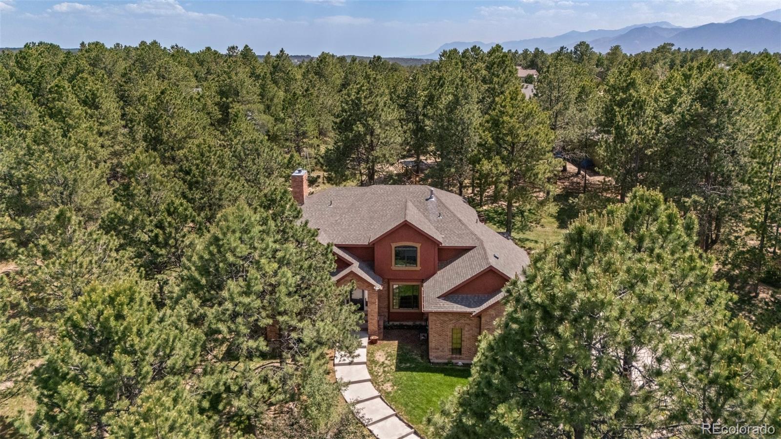 Nestled in the trees of sought-after Woodmoor, this 5-bed, 5-bath stucco home offers comfort, elegance, and thoughtful design throughout. The oversized 3-car garage includes RV parking, 2 large windows, and 5 ceiling-mounted bike racks. A circular paved driveway leads to the grand entrance, where you’re greeted by a stunning dual-entry staircase and freshly refinished hardwood floors. The formal dining room features elegant wainscoting and dual access, including a pass-through to the kitchen. The front family room includes a cozy fireplace and views of the beautifully landscaped, flower-filled yard. At the rear of the home, the kitchen includes a gas range, stained-glass cabinet doors, built-in desk and china cabinet, wood pantry shelves, and a central island with a lighted pot rack. The adjoining informal dining area and living room flow to a ground-level oversized deck with a gas line and extra outlets—perfect for entertaining. Off the main living area, you’ll find a private office and a spacious sunroom with a well-maintained hot tub. Upstairs, the large primary suite includes a sitting area, walk-in closet, and 5-piece bath with jetted corner tub and room for additional furniture. Three additional bedrooms and two full baths complete the upper level. The finished basement features a bright family room with fireplace and 3 large windows, a 5th bedroom, full bath, hobby/storage room, and an open area ideal for a wet bar or reading nook. Updates include: fresh interior paint, new carpet, refinished hardwood floors, a new furnace, and freshly stained deck. The yard is filled with mature trees, colorful flowers, and handcrafted sitting areas—offering a peaceful retreat just minutes from town. This rare Woodmoor gem blends classic style, modern updates, and exceptional outdoor living. A must-see!