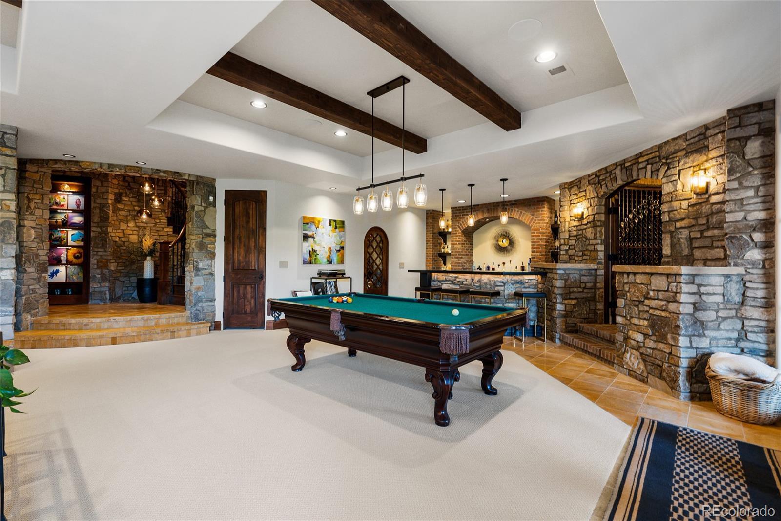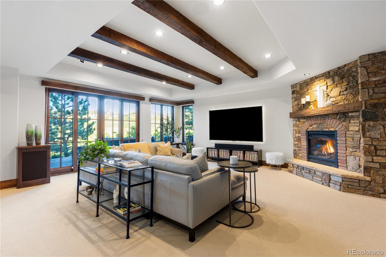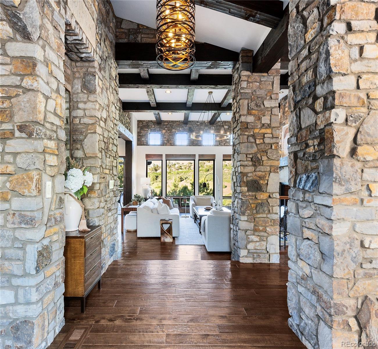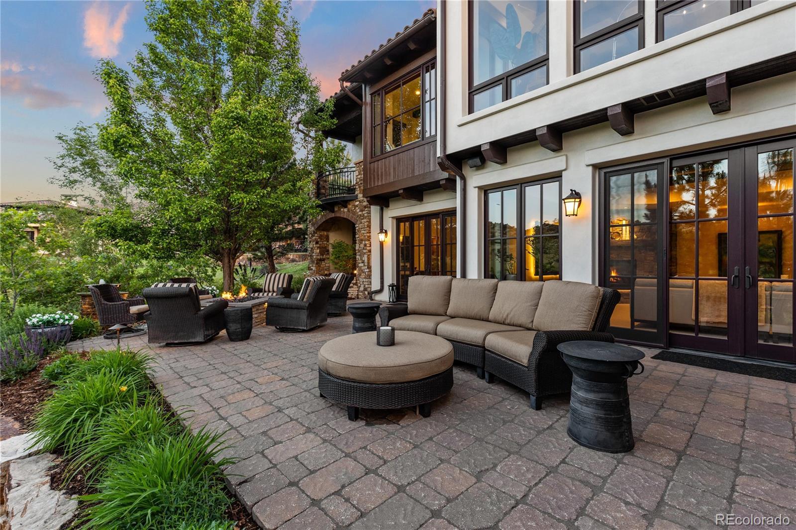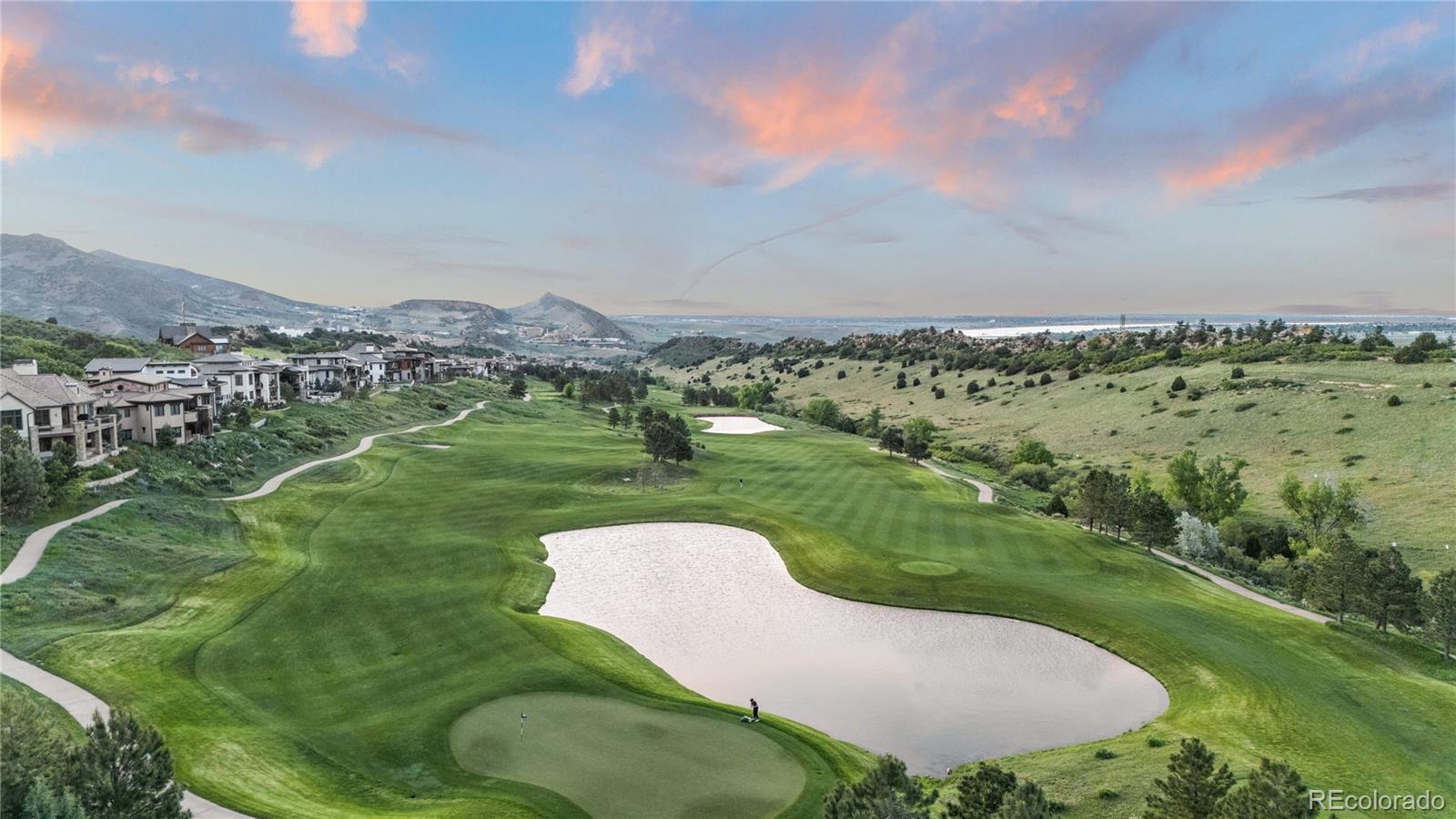 Perched above the 13th green at Ravenna, this 7400 square-foot custom masterpiece is a celebration of Colorado luxury living. With forever views in all directions, this recently refreshed home blends timeless design with modern comforts throughout. Step inside to soaring windows that flood the interiors with natural light dancing off hardwood floors, timbered beams, and a show-stopping stone fireplace. The recently updated kitchen features new quartzite countertops on the spacious center island, marble backsplashes, Wolf appliances, and a caterer’s pantry with a built-in Miele coffee system. Accordion doors open to a heated, covered deck for year-round alfresco dining, while the formal dining room offers a curved wall of windows and domed ceiling. The main level primary suite is a private retreat, complete with a beverage bar, secluded balcony, jetted tub, steam shower, dual vanities, and a walk-in closet with custom organization and washer/dryer. Upstairs, an executive office features its own bath and shower, walk-in closets cleverly concealed behind custom shelving, and a private balcony. The walkout lower level sets the stage for entertaining. Highlighted by two climate controlled wine rooms, bar, billiards, and big screen viewing area, and outside by a large private patio with fire pit, TV and hot tub. A home automation system controls music, lighting, shades and more. Oversized 3 car garages with 220V EV charging plug, heated driveway and entry, along with low maintenance landscaping, make year-round living effortless. Ravenna Country Club, named by AvidGolfer as the Best Private Club in the Denver area, spans 634 acres of breathtaking terrain. Waterton Canyon, Chatfield and Roxborough State Parks, are all just minutes away, placing not only Colorado’s finest golf course, but hiking, biking, boating, and wildlife viewing right at your doorstep.