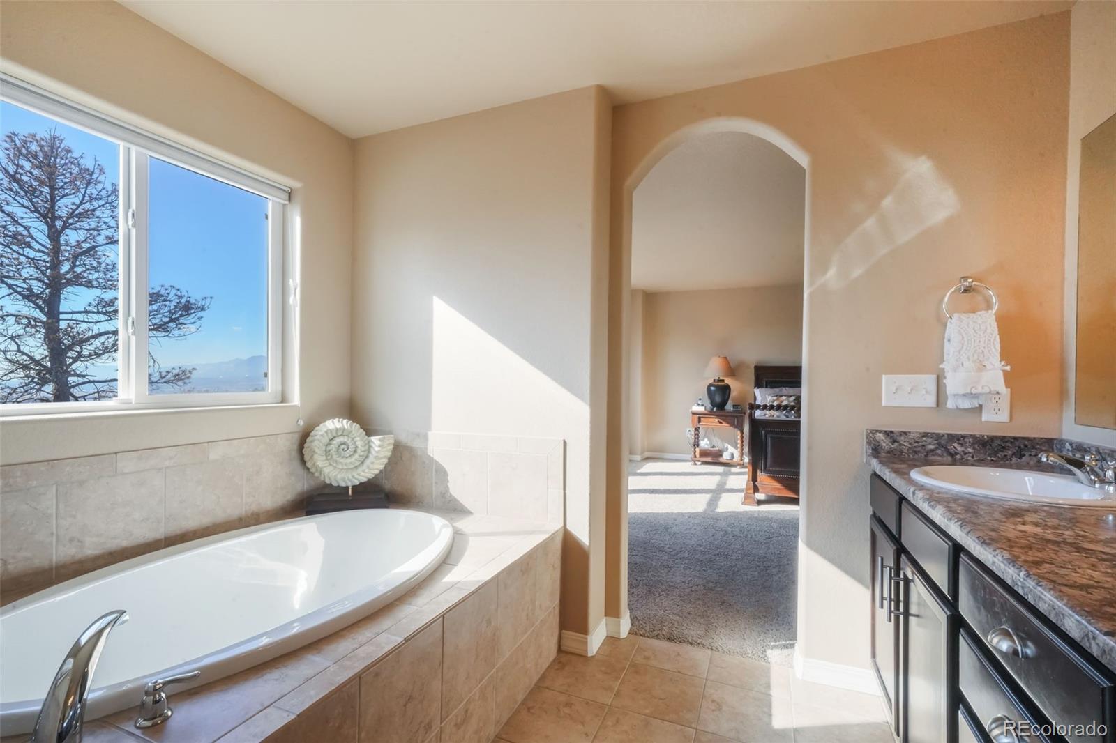 Experience Colorado luxury living at its finest in this exquisite 5 bedroom, 4 bathroom home located in the highly desirable Misty Acres community and the top-rated District 38 school district. This move-in ready two-story stucco home offers breathtaking, unobstructed views of Pikes Peak and the Front Range, combining timeless elegance with everyday comfort. Step inside to discover an open-concept floor plan featuring rich hardwood floors, plush carpet, and designer tile finishes throughout. The gourmet chef’s kitchen is a true showpiece, boasting stainless steel appliances, double wall ovens, solid granite countertops, a large walk-in pantry, and a gas-ready cooktop. Enjoy effortless entertaining in the formal dining area, complete with patio doors leading to a covered outdoor living space, perfect for savoring Colorado’s stunning sunrises and sunsets. The main level office provides a quiet, private workspace ideal for remote professionals. Upstairs, retreat to the luxurious master suite featuring grand French doors, a spa-inspired five-piece bath, and an oversized walk-in closet. The upper level also includes three additional bedrooms, a spacious loft, a full bathroom, and a conveniently located laundry room. The fully finished basement offers a large family or media room, an additional bedroom and bathroom, plus ample storage space, ideal for guests or multi-generational living. Situated on a premium lot backing to a peaceful, tree-lined open space, this property delivers both privacy and natural beauty. The landscaped backyard is fully fenced and features mature pines, scrub oak, a cozy wood-burning fire pit, and a full sprinkler system. The front yard’s blend of lush grass and xeriscape design ensures low-maintenance curb appeal year-round. Enjoy the perfect balance of luxury, comfort, and breathtaking mountain scenery, just minutes from shopping, dining, parks, and easy I-25 access.