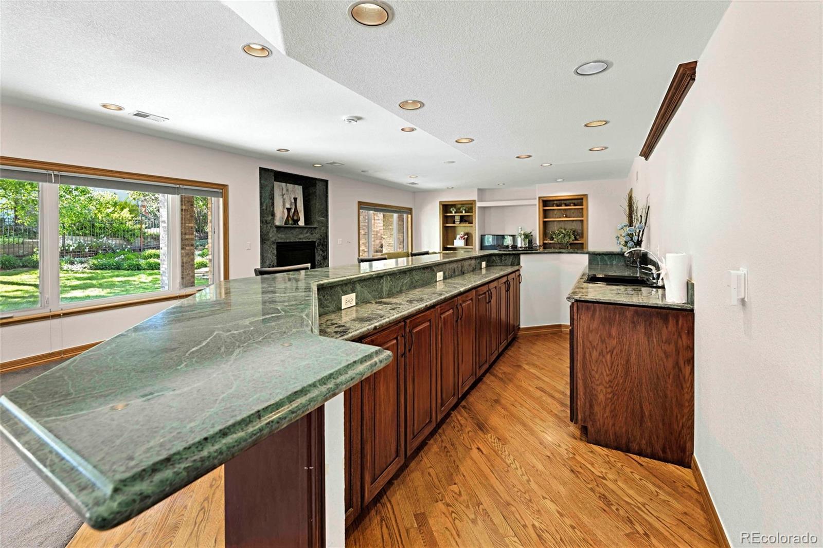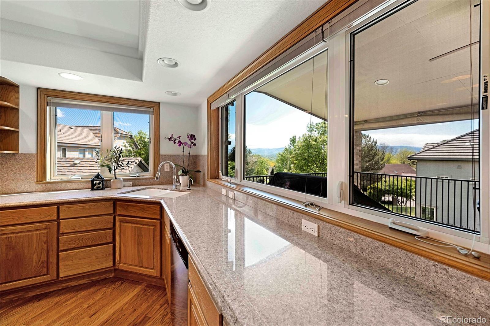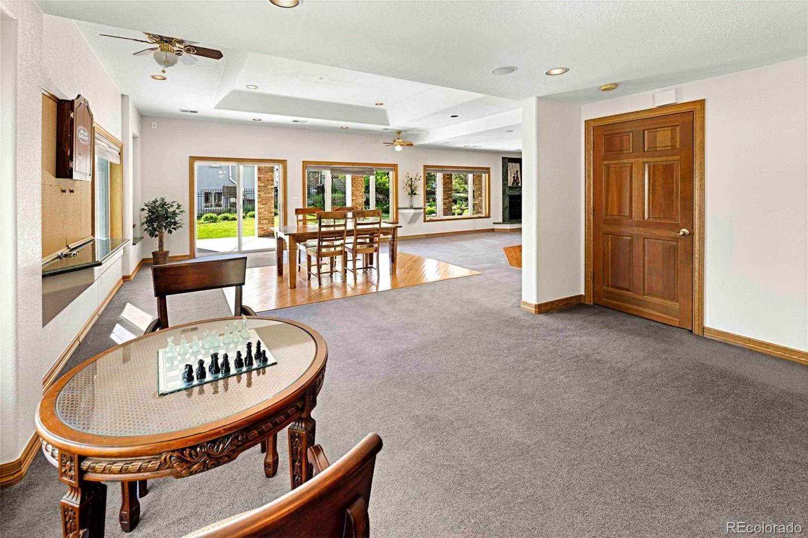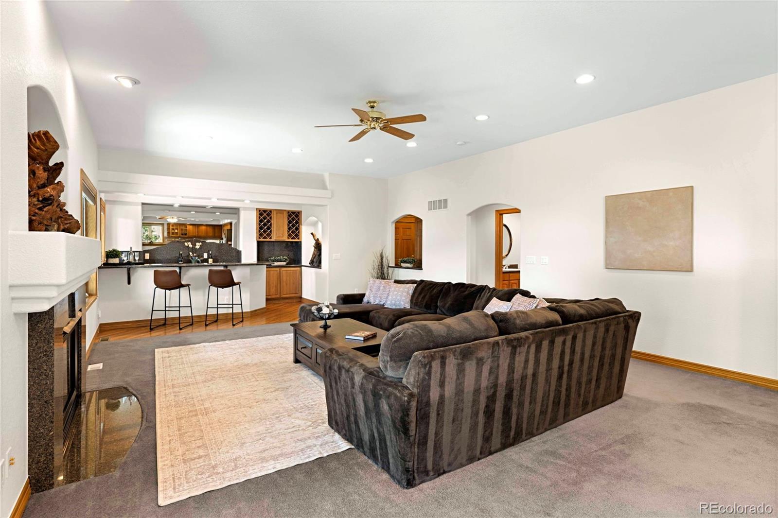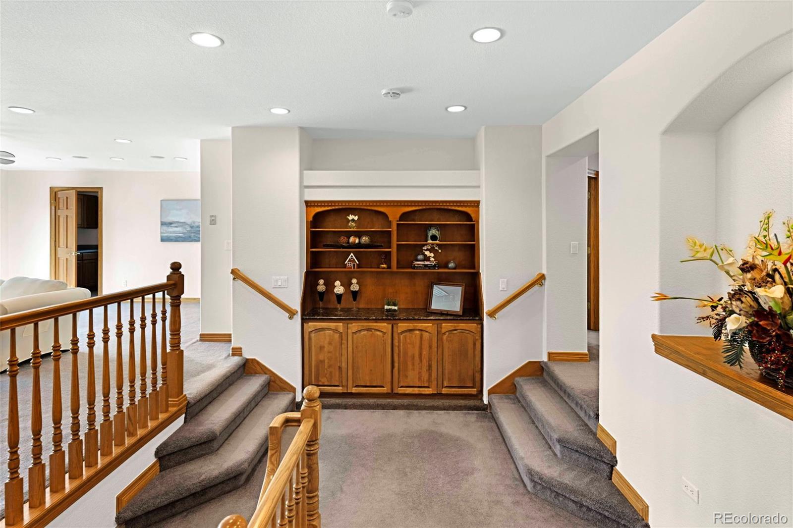 Five Car Garage*7078 of Finished Living Space*Mountain Views* Thraemoor Estates is a prestigious enclave of luxury homes in Lakewood. This expansive residence is one of the largest in the area, offering 7,078 total finished square feet of thoughtfully designed living space Step into the grand entry foyer, where soaring vaulted ceilings highlight the formal living and dining rooms, creating a sense of spaciousness and elegance. The gourmet kitchen features granite countertops, abundant cabinetry, a central island, and opens seamlessly to the expansive family room. Here, you’ll find a cozy fireplace and a custom full-length bar with granite detailing perfect for entertaining Architectural accents such as arched doorways and niche features add charm and sophistication. The richly wood-paneled office offers direct access to the garage, while a main-level powder room and mudroom complete the functional main floor Enjoy al fresco dining on the covered patio, surrounded by a beautifully maintained, private fenced yard Upstairs, the primary suite offers a serene retreat with a five-piece bath, a dual-sided fireplace, two walk-in closets, and large west-facing windows. Three additional bedrooms include one with a private en suite bath, plus an additional full bath and convenient upper-level laundry. A flex/bonus room opens to a private upper patio, showcasing panoramic mountain views over the treetops—ideal for relaxing or entertaining. The full walkout basement is designed for fun and function with space for games, fitness, and gatherings. The wet bar is ready for parties or could serve as the foundation for a next-generation living area. You’ll also find a non-conforming bedroom, a ¾ bath, and direct access to the backyard. Freshly and professionally painted throughout, this home is market-ready and packed with too many special features to list. Come and experience the lifestyle that only Thraemoor Estates can offer—schedule your private tour today!