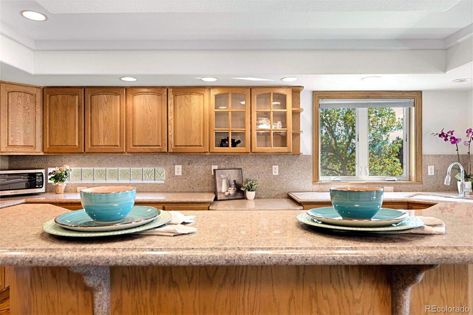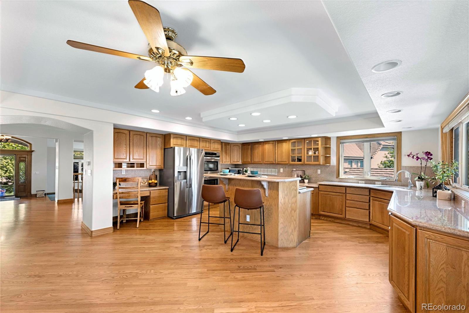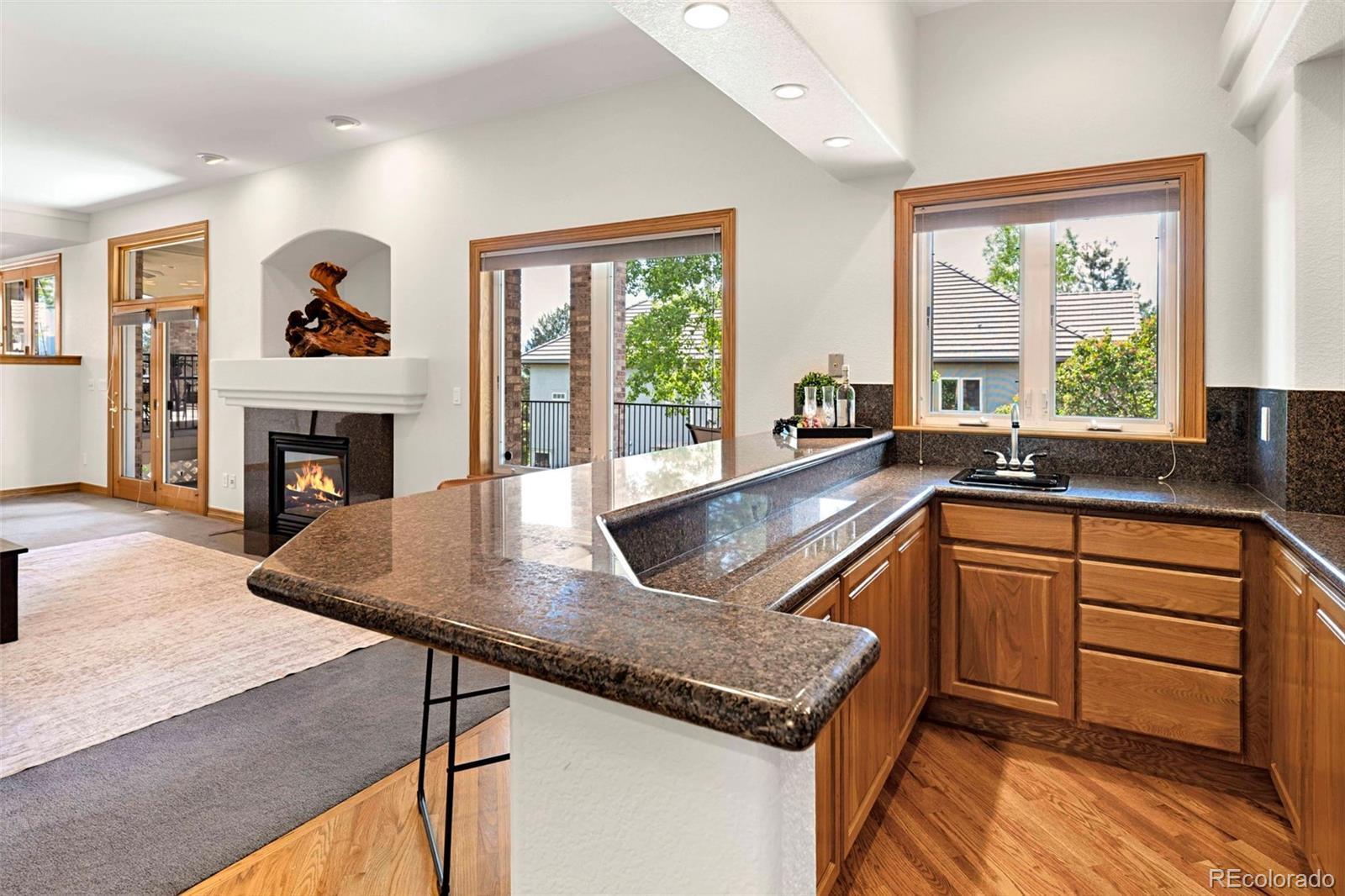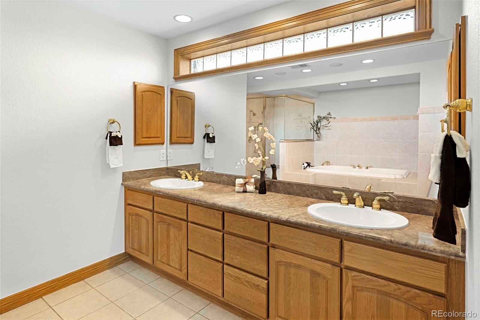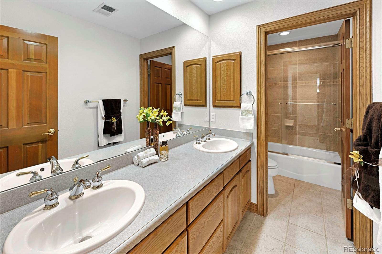 Five Car Garage*7078 of Finished Living Space*Mountain Views* Thraemoor Estates is a prestigious enclave of luxury homes in Lakewood. This expansive residence is one of the largest in the area, offering 7,078 total finished square feet of thoughtfully designed living space Step into the grand entry foyer, where soaring vaulted ceilings highlight the formal living and dining rooms, creating a sense of spaciousness and elegance. The gourmet kitchen features granite countertops, abundant cabinetry, a central island, and opens seamlessly to the expansive family room. Here, you’ll find a cozy fireplace and a custom full-length bar with granite detailing perfect for entertaining Architectural accents such as arched doorways and niche features add charm and sophistication. The richly wood-paneled office offers direct access to the garage, while a main-level powder room and mudroom complete the functional main floor Enjoy al fresco dining on the covered patio, surrounded by a beautifully maintained, private fenced yard Upstairs, the primary suite offers a serene retreat with a five-piece bath, a dual-sided fireplace, two walk-in closets, and large west-facing windows. Three additional bedrooms include one with a private en suite bath, plus an additional full bath and convenient upper-level laundry. A flex/bonus room opens to a private upper patio, showcasing panoramic mountain views over the treetops—ideal for relaxing or entertaining. The full walkout basement is designed for fun and function with space for games, fitness, and gatherings. The wet bar is ready for parties or could serve as the foundation for a next-generation living area. You’ll also find a non-conforming bedroom, a ¾ bath, and direct access to the backyard. Freshly and professionally painted throughout, this home is market-ready and packed with too many special features to list. Come and experience the lifestyle that only Thraemoor Estates can offer—schedule your private tour today!