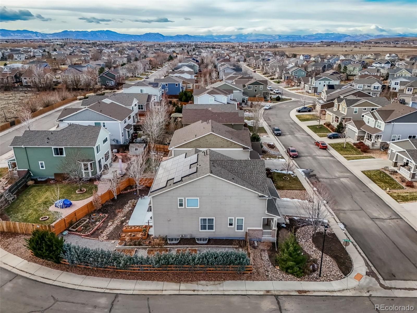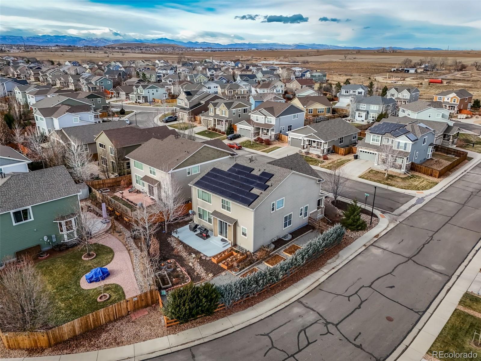 Welcome to North Creek Farms, a highly desirable north Thornton community offering exceptional access to Boulder, Denver, Ft Collins, DIA, mountains, and all Colorado destinations. This well maintained, Sun-filled & inviting home sits on a corner lot surrounded by neighborhood parks, trails, & open spaces. Inside, the beautiful open floor plan creates effortless connection between living spaces. A grand eat-in kitchen features center island, pantry, stainless steel appliances, & an easy flow into the separate dining room—ideal for gatherings & everyday comfort. Work from home in the private main floor office space. Warm newly refinished gleaming wood flooring enhances main level, while the upper level host the 3 bedrooms, a spacious loft & a conveniently located laundry room near all bedrooms (washer/dryer included). The Primary Bedroom is filled with sunlight and adjoining luxury bathroom & walk in closet. Energy efficiency shines with Seller-Owned Solar System, Tesla battery backup, and an EV charging station. Outdoor entertaining is a breeze in the fenced backyard - a Colorado retreat with south facing patio for entertaining, low-maintenance xeriscaping, raised garden beds, multiple trees for privacy and thoughtfully placed flowers and fruit plantings. Expansive unfinished basement is ready for you to add your personal design touches for additional rec/living space. A rare combination of a premium location, sustainable upgrades, and a beautifully maintained lot makes this home an outstanding opportunity in one of Thornton’s most connected neighborhoods. Everyday conveniences with shopping, transportation, services and highlighted by Top Golf, Costco, Home Depot, Home Furnishing Stores, grocery options, and the charm of exploring Historic Old Town Erie and Old Town Lafayette—are all just minutes away. ** SHOWINGS BEGIN SATURDAY February 21st, 2026. Contact Listing Agent to schedule your private showing of this amazing home and all its inclusions!
