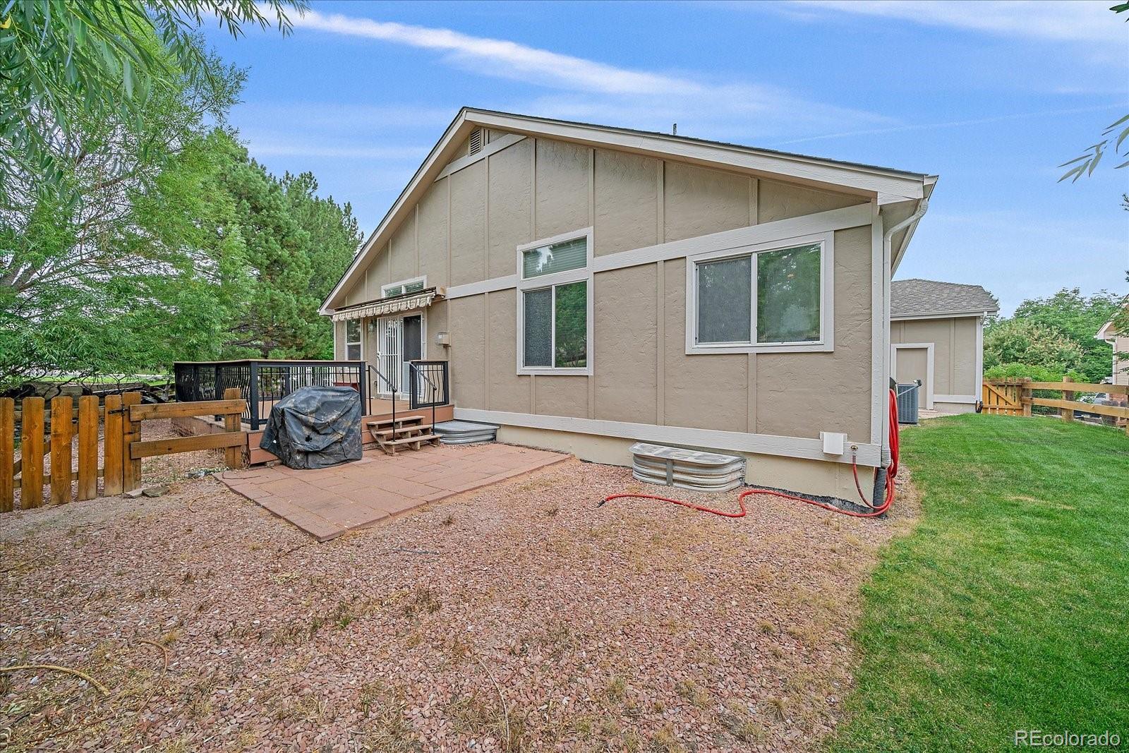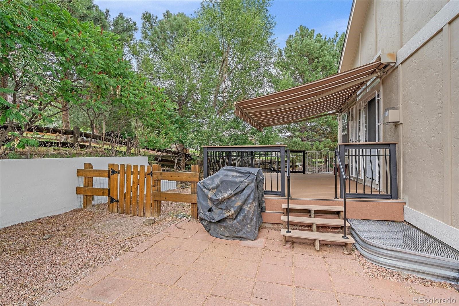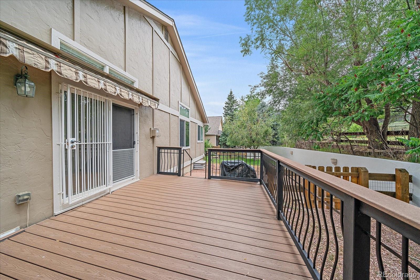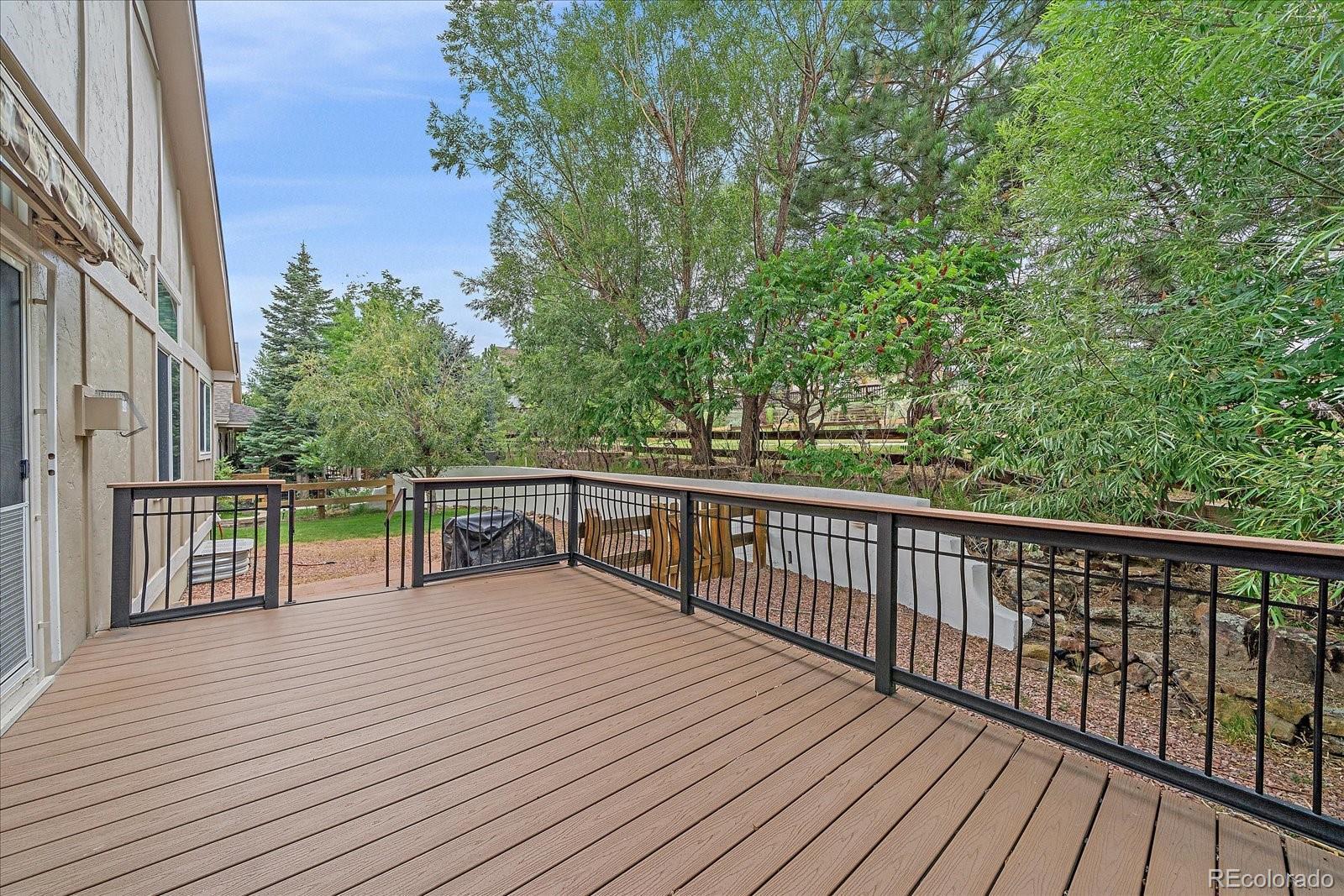Beautiful Ranch Home in Exclusive Red Hawk Golf Course Community Situated on a private corner lot of over a quarter acre, this meticulously maintained ranch backs to greenbelt and scenic trails, offering peaceful views and exceptional privacy. Mature trees frame a spacious Trex deck with a retractable awning—ideal for relaxing or entertaining outdoors.Inside, the main level features over 2,000 square feet of thoughtfully designed living space with quality upgrades throughout. Tile flooring flows from the entryway through the kitchen, which includes granite countertops, stainless steel appliances, and abundant cabinetry. The formal dining room is perfect for hosting special occasions, while the inviting family room and separate living room provide plenty of space for everyday living and gatherings.The spacious primary suite is a true retreat, complete with a luxurious en-suite bathroom featuring dual vanities, a soaking tub, a walk-in shower, and a large walk-in closet. Secondary bedrooms feature beautiful wood flooring and share easy access to a full bath.Downstairs, the full basement includes a large private bedroom with its own bathroom and a comfortable TV/flex room—perfect for guests, multi-generational living, or a media room.The property has a brand new rooff !!! Located in the desirable Red Hawk Golf Course community, this home combines comfort, style, and an exceptional lifestyle in a premier Castle Rock location.