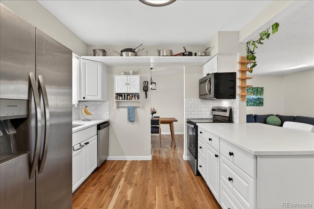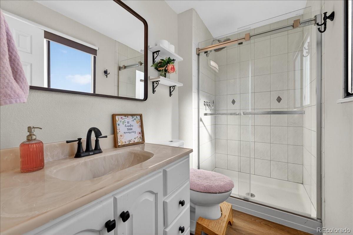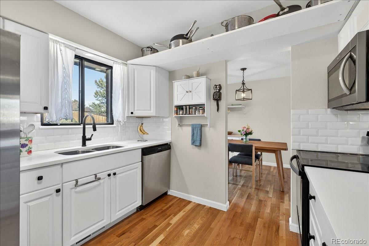 Welcome to this spacious, light-filled tri-level home with a finished basement in the highly desirable Sun Valley Estates, one of Lakewood’s most sought-after neighborhoods. Sitting on an expansive 10,951 sq ft fully fenced lot, this nicely updated residence offers 4 bedrooms, 4 bathrooms, and 2,231 square feet designed for both comfortable living and effortless entertaining. Enjoy peace of mind with new central air conditioning, plus a beautifully remodeled kitchen featuring slab granite countertops, new appliances, and hardwood floors that flow seamlessly into the open living, dining, and family rooms. Upstairs, the primary suite includes a private en-suite bath, complemented by two additional bedrooms and a full hall bath. The lower family room offers another inviting fireplace and a convenient half bath, while the finished basement provides a flexible home office or guest space complete with its own brand-new full bathroom. Step outside to a huge backyard ideal for BBQs, play, or pets, fully fenced and thoughtfully positioned with an upslope and depth that help buffer traffic noise while maintaining easy access to nearby parks. A large patio, covered front porch, and sizable storage shed add even more functionality. This friendly, safe, and very walkable neighborhood is next to two scenic reservoirs perfect for daily walks or dog outings, and just minutes from Belmar’s shopping, dining, and entertainment. With abundant natural light, a private backyard, and a versatile tri-level layout, this home truly checks every box.