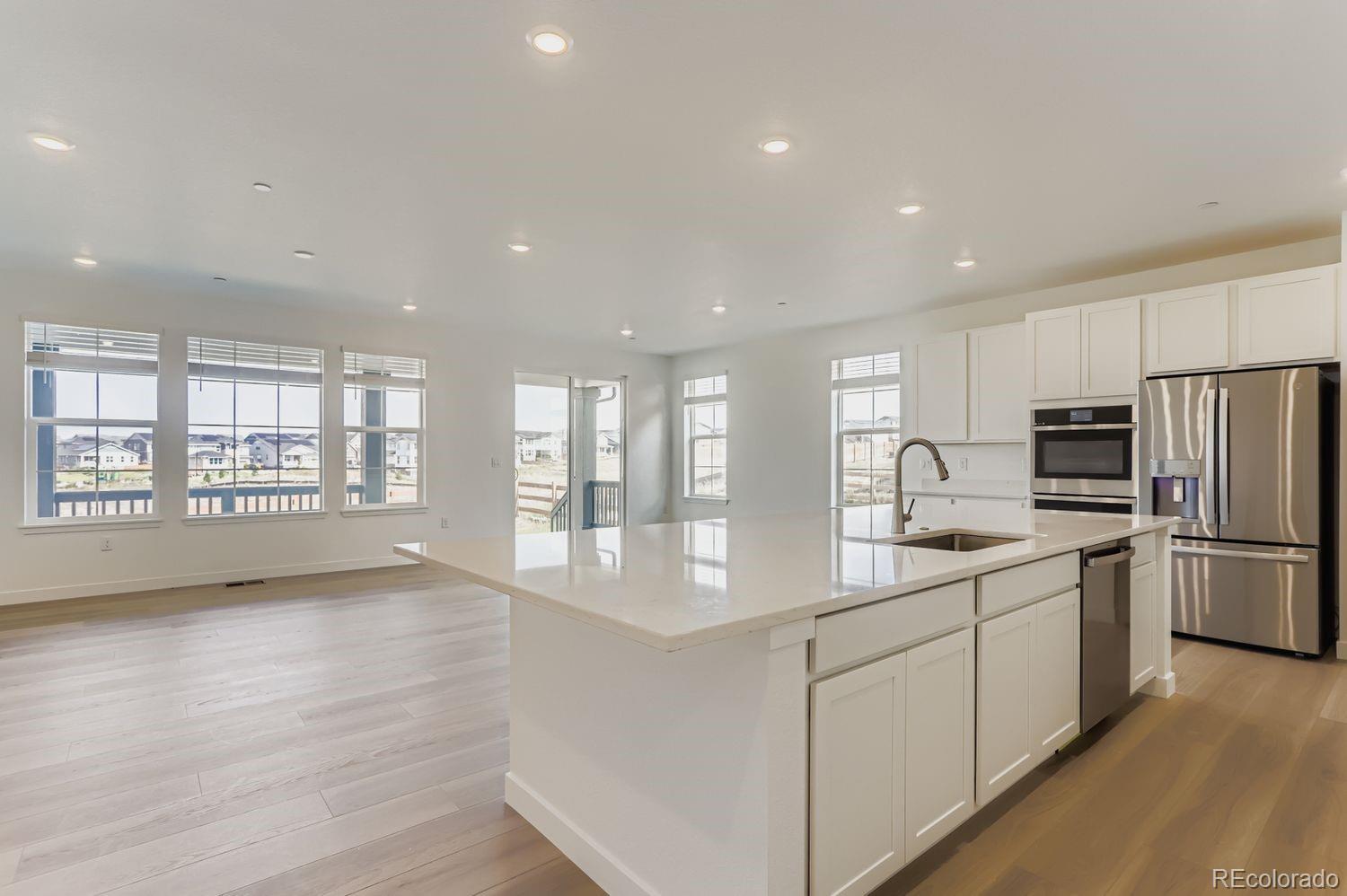 **Eligible for special financing – terms and conditions apply – ask for details** Move In Ready! Welcome home to the Super Home located in coveted Sunset Village and backs to open space. The main level features fantastic entertaining space! The gourmet kitchen overlooks the great room and breakfast nook and also has an abundance of cabinet space in the kitchen, a huge eat in kitchen island with quartz countertops and a large outdoor covered deck! The separated NextGen living space offers great options! A private living room and kitchenette provides great 'living space'. A large bedroom with an adjacent retreat area, laundry room and a 3/4 hall bathroom complete this flexible space! Use the NextGen space as a main floor suite, a true NextGen living space, or whatever suits your needs. Upstairs boasts an expansive primary suite with a retreat and en-suite spa style bathroom, oversized laundry room, 3 additional bedrooms, 2 bathrooms and a large loft area. The basement is unfinished waiting for your personalization. Some additional features include a huge rear deck, 3 car garage and solar panels. See everything Erie has to offer with it's small town feel, majestic mountain views, 63,000sf community center and 20,000sf community Library! Close to shopping/dining, trails and parks!