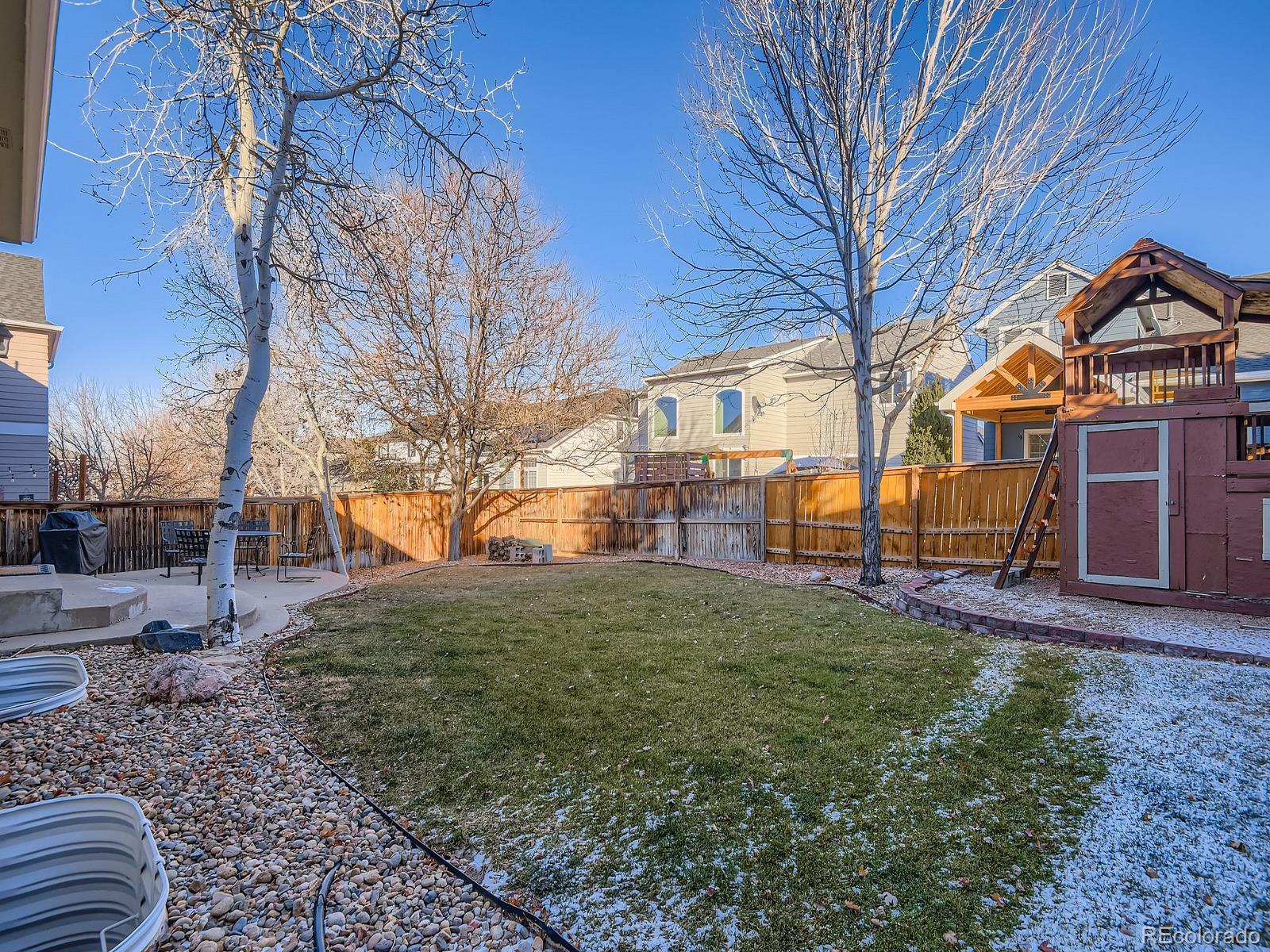 Welcome home to 10036 Brisbane Lane with its inviting covered front porch!! This beautifully updated 5 bedroom, 4 bath home with a 3 car garage is in the Eastridge neighborhood of Highlands Ranch. The main level offers an open floor plan with lots of natural light. The kitchen has granite, s/s appliances, updated cabinets, a large pantry and wood floors. It overlooks the cozy eating area and the spacious family room which is a great place to relax and enjoy the warmth from the gas fireplace. Upstairs is the oversized primary bedroom with 2 walk in closets and a private full bathroom along with 3 additional bedrooms that share a full sized bathroom. Downstairs, you’ll have more room to spread out in your finished basement. It was formerly used as a bedroom with its own closet and bathroom but it could also be used as an office, media room or exercise room. There’s also plenty of extra space for storage. Outside in the private backyard, you’ll enjoy soaking in the hot tub on chilly nights. The outside area also comes with a large shed for extra storage and a wooden playset. This move-in ready home is conveniently located near the Eastridge rec center, parks, and restaurants with easy access to Park Meadows, the DTC, C470 and I25.