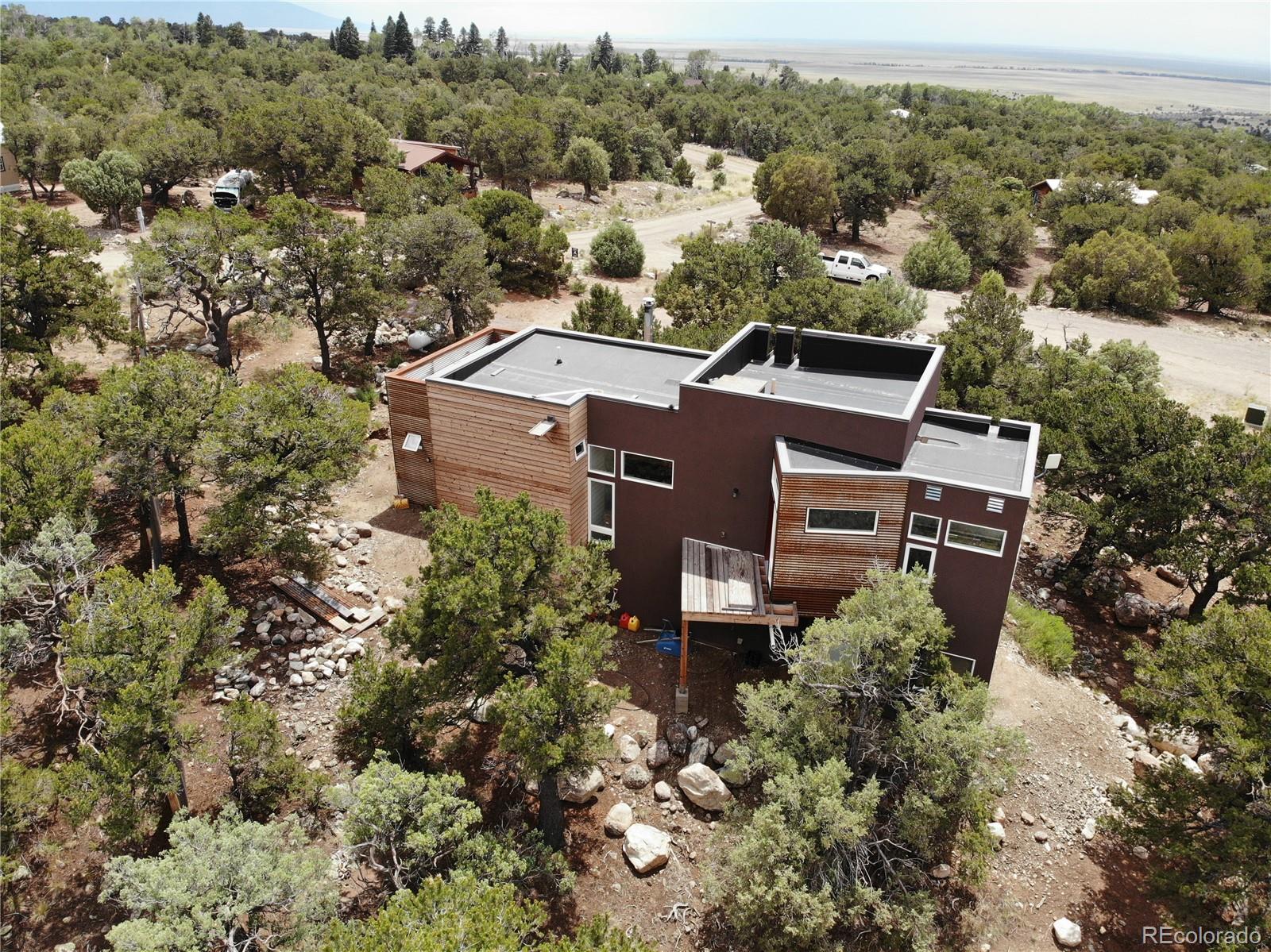 This architecturally engineered home blends the art of architecture with the precision of engineering, ensuring both aesthetic appeal and structural integrity. Designed with a focus on innovation, sustainability, and functionality. The design balances beauty and practicality, where the layout, materials, and finishes are all chosen to enhance the living experience. The home incorporates green building principles, such as energy-efficient materials, passive solar heating, and fire resistant materials. The meticulous builders focus was on creating a home that can withstand extreme weather conditions and be esthetically pleasing. The open-concept layout with large, open spaces and high ceilings, creates a sense of volume and flow. Expansive windows allow natural light to flood the interior, connecting the interior spaces with the surrounding environment. The massive Primary suite is flooded with natural light, and views of both mountains, and the valley below. There is the opportunity to add a kitchenette, with plumbing and electrical to make this an additional unit. The upper 5 piece bath with its oversized shower, Japanese soaking tub, and custom walnut vanity double sink, will please the pickiest buyer. After soaking step out onto the upper balcony deck, and be amazed at the stars in this International Dark Sky community. Hook up for an outdoor hottub, is pre wired should you choose. The first floor great room, has light coming in from all sides on the massive living area, and eat-in kitchen, with custom slideout cabinet drawers, stainless appliances, and island stove top. Two additional bedrooms, all with views of the abundant natural landscape surrounding this home. The home sits high on the mountain, close to Cottonwood Creek, hiking trails, the Great Sand Dunes National Park. Ten minutes to town, less then 1 hr. to hot springs resorts, and skiing. Still under construction, seller is working to make this your dream home. Call for your private showing