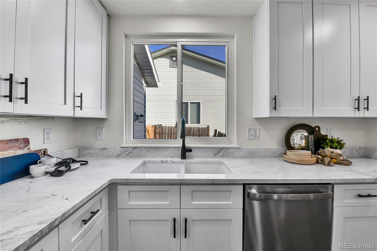 Welcome to this three-bedroom, two-bathroom home in Montbello. This beautifully remodeled home sits on a huge lot and offers ample amounts of upgrades. From fresh interior and exterior paint, new luxury vinyl plank flooring, new lighting, and more, this home is truly move-in ready! Upon entering, you will be greeted by the living room. Enjoy the luxury vinyl plank flooring, stunning accent wall, and large window allowing light to pour in. Venture to the kitchen, which is truly a dream. Enjoy the spacious quartz countertops, ample amounts of cabinetry, and open concept, allowing you to cook while still enjoying company. Plus, all brand-new, stainless steel appliances are included! The primary bedroom is conveniently located on the main level and offers plenty of space and natural light, easy access to a bathroom, and a sliding glass door leading to the deck and large backyard. The updated bathroom and second bedroom complete the main level, offering plenty of space. Head downstairs to the finished basement, where you will find an additional living room. This spacious area is great for entertaining friends and family, and offers brand-new, plush carpet flooring. A bonus room is also found in the basement, great for just about anything, including a sitting room, game room, movie room, or a kids playroom...the possibilities are endless! The third bedroom also features brand-new, plush carpet flooring and offers plenty of space, and easy access to the second updated bathroom. But wait, there's more! Head outside to the backyard, where you will find a spacious, brand-new deck. With easy access to anywhere, it is perfect for outdoor entertainment. You will love the luxury of having a huge lot, great for anything you could imagine, and ideal for kids and pets! Prime location offering easy access to just about anywhere, including I-25, Downtown Denver, Denver International Airport, and plenty of shopping, dining and entertainment options. Don't miss this amazing opportunity!