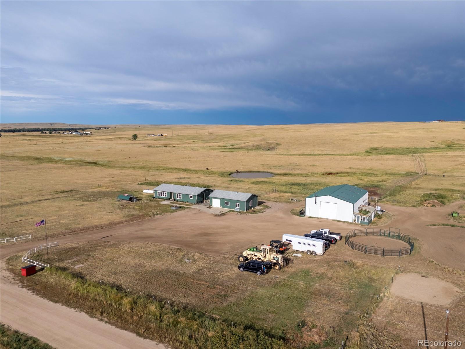 Escape to your own slice of country paradise on 64 peaceful acres just outside Simla, Colorado. This unique multi-residence homestead blends wide-open rural living with modern comforts, perfect for those who want the best of both worlds. The main home is a well-kept ranch-style featuring 3 bedrooms, 2 bathrooms, and an airy open layout. Large windows frame sweeping countryside views, with many recent upgrades—including newer windows, paint, roof, gutters, UV water system and sulfur system in main house, new appliances, new farmhouse sink, new washer and dryer, stalls in shop, arena pad, new shelters, chicken coop, shooting berm, round pen, and sump pump—ensure peace of mind for years to come. A short walk from the primary home, you’ll find a charming 1-bed, 1-bath guest house. It’s an ideal space for extended family or rental income. The impressive 40’x60’ barn absolutely delivers value—complete with electricity, 30 amp hookup, lighting, concrete floors, a horse stall, a tack room, a storage room, and oversized doors big enough to pull in an RV or trailer. Designed with agricultural pursuits in mind, the property is fenced and cross-fenced for livestock and features well-planned hog, goat, and chicken pens. This property has been thoughtfully improved from the ground up. Every detail reflects the time, care, and investment poured into transforming it, inside and out, into a fully operational homestead. This property's location is fantastic with many towns within a very short drive, just 20 minutes from Kiowa, 30 minutes to Elizabeth, and only 30 minutes to Limon, you can take your pick. Set against the wide-open skies of Colorado, this ranch unfolds in sweeping views, green pastures, and the timeless beauty of country living. Every corner—from the sunlit home to the rolling, fenced fields—radiates a sense of peace, purpose, and natural charm. FOR FLYOVER VIDEOSCLICK VIRTUAL TOUR ICON OR VISIT https://www.oldcountryre.com/26540-flower-circle-simla