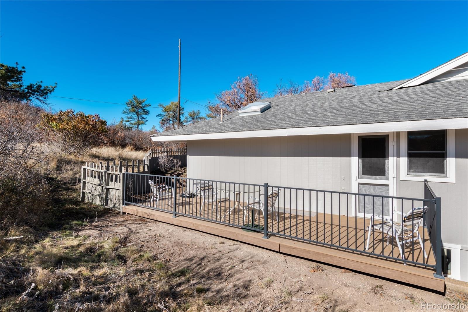 Sprawling ranch retreat in Surrey Ridge! Dream come true! Embrace living in this enchanting equestrian community conveniently positioned between Castle Rock and Lone Tree! One level living with finished basement and serene outdoor spaces! Tastefully updated with impeccably designed floor plan and abundant storage. Large inviting kitchen open to family room providing the perfect flow for entertaining and daily living alike! Newer boiler system and high end Breeze evaporative cooler. This home is filled with natural light, moss rock fireplace, four total bedrooms, bonus room with closet, four bathrooms, side entry garage and circular drive! Soak in the sun on the south facing trex deck that provides mountain views or enjoy spending time in the backyard with it's patio, water feature and fenced in space. Experience the allure of this sought after community along with the rare opportunity to own a ranch style home! Bridle path, trails and outdoor arenas! Zoned for two horses. Minutes to amenities and shopping while nestled on a small piece of paradise!