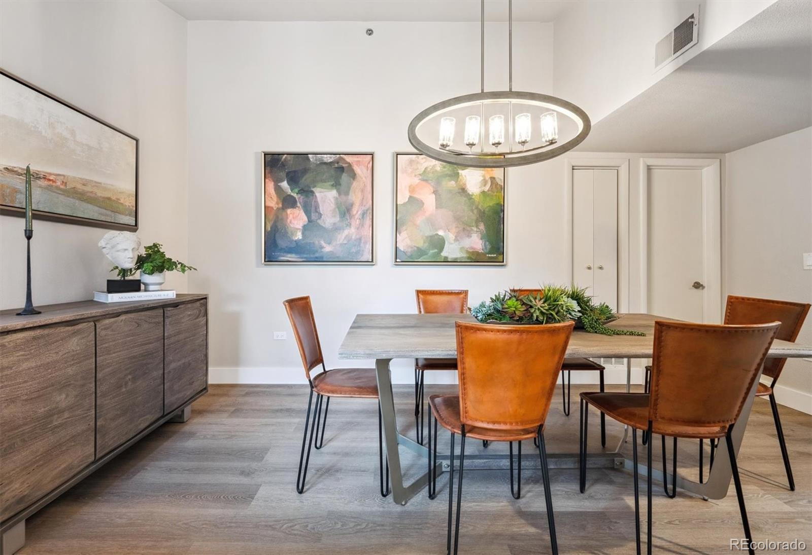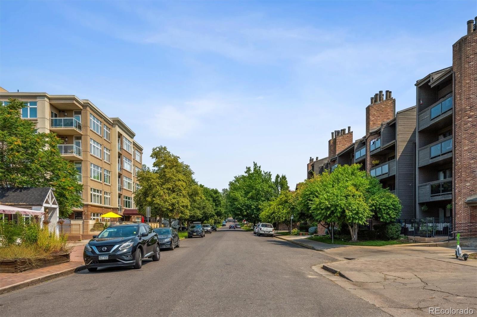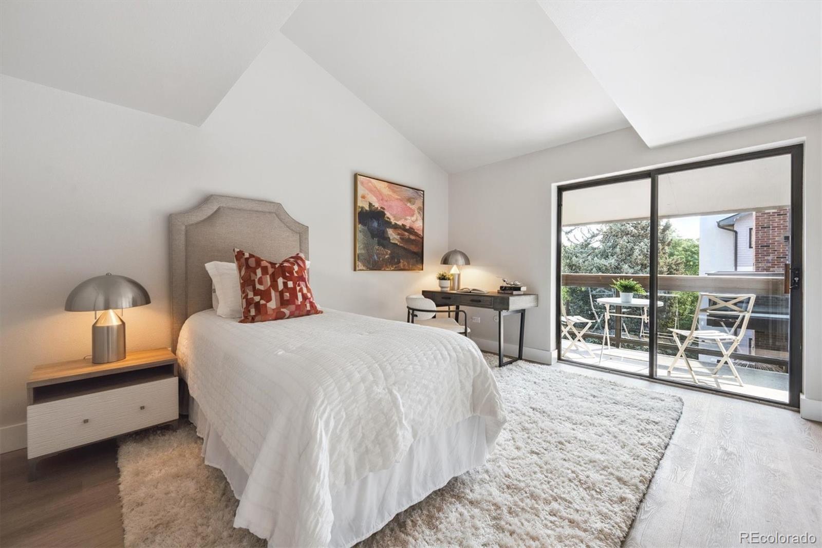 This is loft-style living at it's finest in one of Denver’s most sought-after neighborhoods, Cherry Creek North. As the largest unit in the building, 409 features thoughtful, modern upgrades throughout. LVP floors line the main level, anchored by a striking (easy-on) gas fireplace that brings warmth and elegance to the living area. The living room boasts large sliding glass doors that open to a private balcony and the dedicated dining area offers plenty of space for a formal dinner or an intimate meal. The main-floor bedroom features sliding glass doors for additional patio access and beautiful natural light. With elegant French doors, it functions perfectly as a bedroom, office, or both. The kitchen is updated with Silestone countertops, custom cabinetry, a tile backsplash, and sleek lighting. The main-floor bathroom is unusually spacious for a ¾ bath, providing both comfort and convenience for guests. Upstairs, the lofted primary suite is a serene, expansive retreat with ample closet space and a beautifully renovated en suite bathroom featuring a dual vanity and oversized walk-in shower enclosed in plate glass. This is a commuter-friendly location, both walkable and well-connected to public transit. It is situated on Detroit Street which is a quiet, charming corner of vibrant Cherry Creek North featuring; 300+ boutiques, 75+ cafés and restaurants, 50+ spas and salons, plus upscale hotels and everyday conveniences. From beloved summer farmers markets to festive holiday events, the neighborhood buzz is unmatched, making unit 409 is the perfect space to entertain OR rest and recharge. *BONUS* with two DEEDED parking spots in an attached underground garage, you will never have to compete to find a spot.