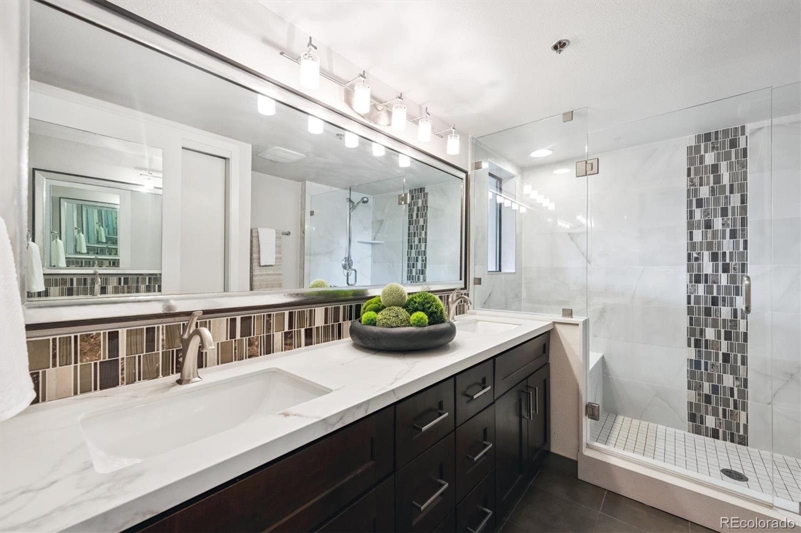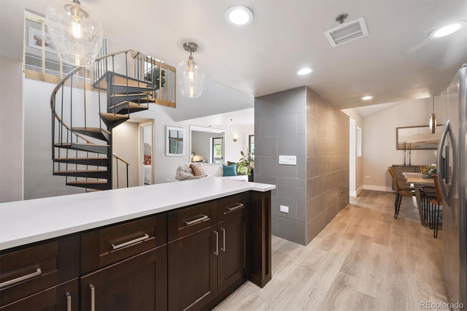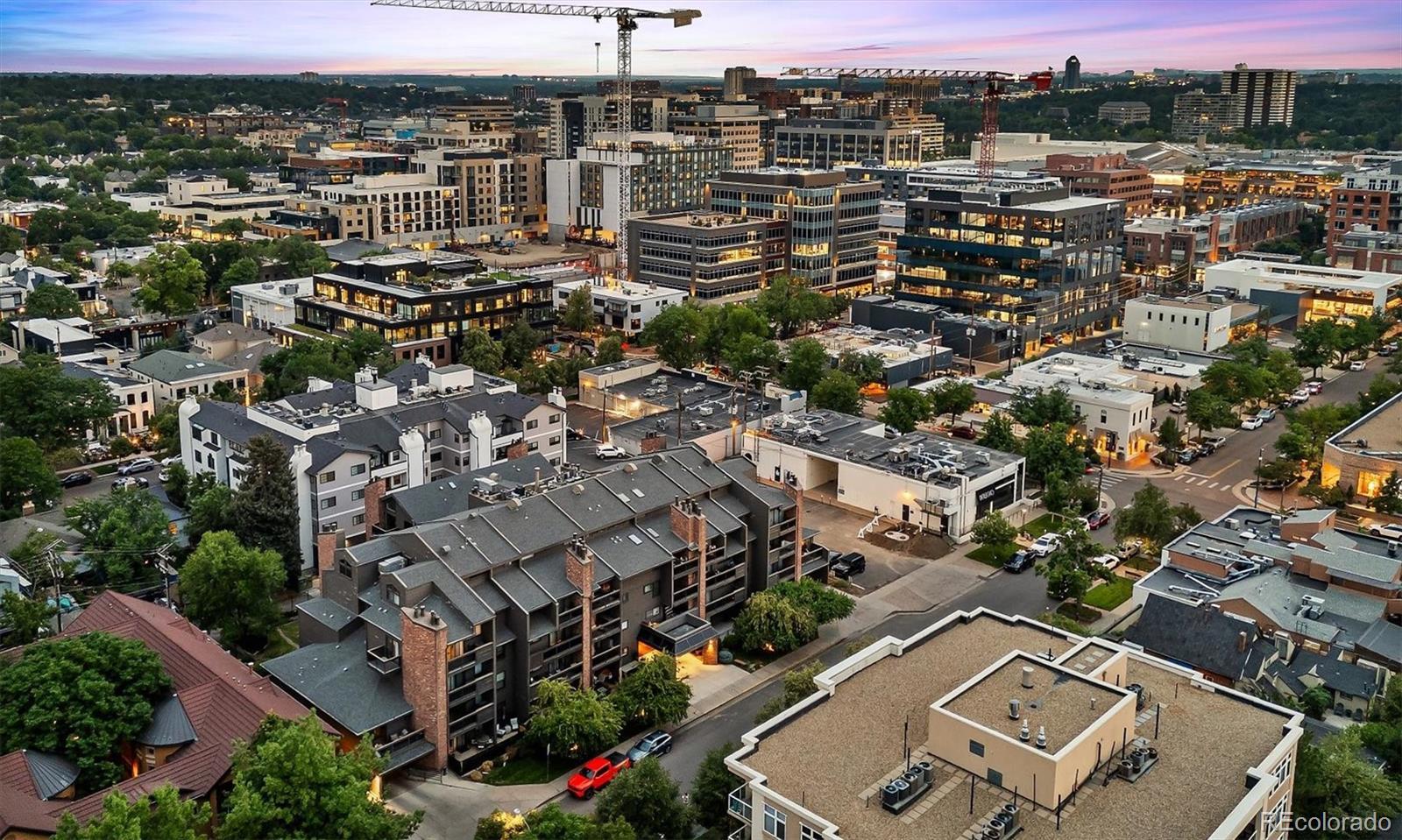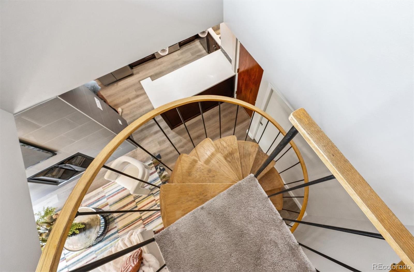 This is loft-style living at it's finest in one of Denver’s most sought-after neighborhoods, Cherry Creek North. As the largest unit in the building, 409 features thoughtful, modern upgrades throughout. LVP floors line the main level, anchored by a striking (easy-on) gas fireplace that brings warmth and elegance to the living area. The living room boasts large sliding glass doors that open to a private balcony and the dedicated dining area offers plenty of space for a formal dinner or an intimate meal. The main-floor bedroom features sliding glass doors for additional patio access and beautiful natural light. With elegant French doors, it functions perfectly as a bedroom, office, or both. The kitchen is updated with Silestone countertops, custom cabinetry, a tile backsplash, and sleek lighting. The main-floor bathroom is unusually spacious for a ¾ bath, providing both comfort and convenience for guests. Upstairs, the lofted primary suite is a serene, expansive retreat with ample closet space and a beautifully renovated en suite bathroom featuring a dual vanity and oversized walk-in shower enclosed in plate glass. This is a commuter-friendly location, both walkable and well-connected to public transit. It is situated on Detroit Street which is a quiet, charming corner of vibrant Cherry Creek North featuring; 300+ boutiques, 75+ cafés and restaurants, 50+ spas and salons, plus upscale hotels and everyday conveniences. From beloved summer farmers markets to festive holiday events, the neighborhood buzz is unmatched, making unit 409 is the perfect space to entertain OR rest and recharge. *BONUS* with two DEEDED parking spots in an attached underground garage, you will never have to compete to find a spot.