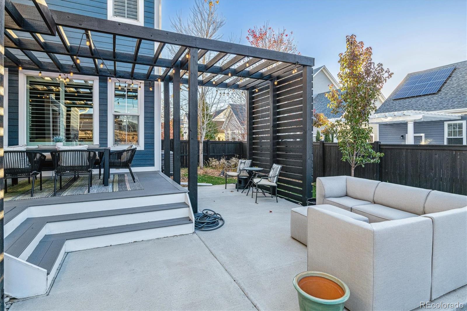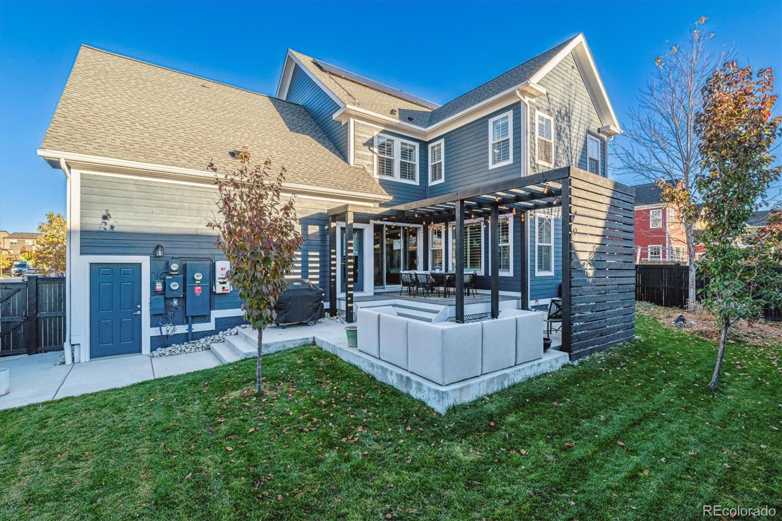 Welcome to this classic Parkwood Ashville with 6 bedrooms, 5 bathrooms, and sits on a premium 7,000 SqFt corner lot with a side-by-side 3 car garage in Willow Park East of Central Park for those with an appetite for a city soul and a prairie heart. The quiet setting and awesome location streamline daily life: boutique shops, local dining, and award-winning schools. Quick connections to the Anschutz Medical Campus, downtown, and DIA keep schedules efficient, while Dick’s Sporting Goods Park and the Rocky Mountain Arsenal Wildlife Refuge offer miles of paths for pre-work runs, evening resets, or weekend family time. The main level features an inviting foyer, an expansive main-level bedroom (currently used as a front office) and an open layout connecting the great room, dining area, and gourmet kitchen. The gourmet kitchen features an expansive quartz dine-in island, commercial-grade stainless appliances, double ovens, custom cabinetry, and a large walk-in pantry. Upstairs, the primary suite serves as a serene retreat with a spa-inspired primary bathroom, and spacious walk-in closet. Three additional bedrooms, a full bathroom, and a conveniently located laundry room complete the upper level. The fully finished basement is ideal for entertaining or multigenerational living, showcasing an expansive great room, a full wet bar with kitchenette, an additional bedroom, a full bath, a SECOND laundry room & generous storage. The beautifully private, fully fenced backyard is designed for effortless outdoor living. An expansive concrete patio is anchored by a contemporary pergola with a slatted privacy wall and café-style string lights—perfect for alfresco dining. A dedicated lounge area with sectional seating sits beside the grilling pad, while the lawn and young crimson maple tree adds greenery and low-maintenance appeal. Other features include brand new carpet, fully paid solar panels, a tankless water heater, newer paint, a whole-house attic fan, and so much more!