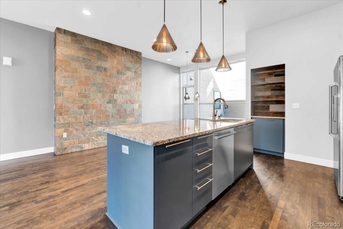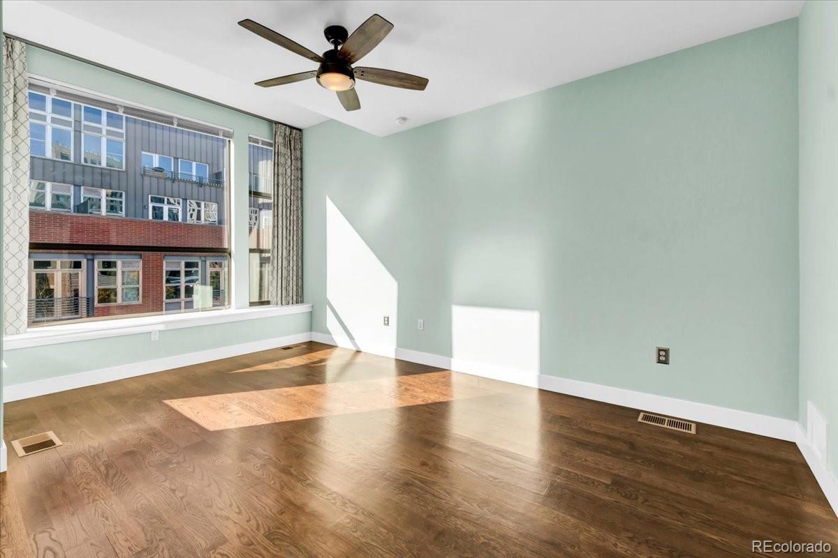 Discover elevated city living in this exceptional four story townhome, set in the heart of downtown just steps from Coors Field, McGregor Square, and a vibrant lineup of restaurants, shops, and entertainment. Enjoy sweeping skyline views from the rooftop deck and effortless urban convenience. This house has been freshly updated with new flooring, barn wood accents, custom closets designed by Rowland + Broughton, custom built-in features by Twenty1Five, new light fixtures, and ceiling fans throughout. As you step inside, you’ll find a comfortable bedroom which can be perfect as a home office, three quarter bath, and direct access to a spacious 2 car garage that is a true luxury downtown. Clever storage lives under the stairs with a custom built system that keeps everything tidy with a built-in wine fridge. The main living level opens into a bright, airy, great room with fresh paint and brand new hardwood floors. To your right, the chef’s kitchen shines with slab granite countertops, a generous island perfect for entertaining, top of the line Viking appliances, and a professional vent hood framed by sleek tile backsplash. The two sided gas fireplace anchors the space, creating a cozy connection between the living and dining areas while floor to ceiling windows pour in natural light. Enjoy the private balcony for morning coffee or easy grilling. It's an elegant flow that makes everyday living and entertaining feel effortless. On the third level, the primary bedroom offers a calm retreat with a five piece bath that includes a jetted tub and a walk-in closet outfitted with a custom organizing system. A second bedroom on this floor has its own en suite bath for added privacy. Laundry is conveniently located on this level and washer and dryer is included. Crowning the home is an expansive rooftop deck with sweeping skyline views. Enjoy your morning coffee, sunset gatherings, and summer BBQ nights. It is also a front row seat for the New Year fireworks from Coors Field.