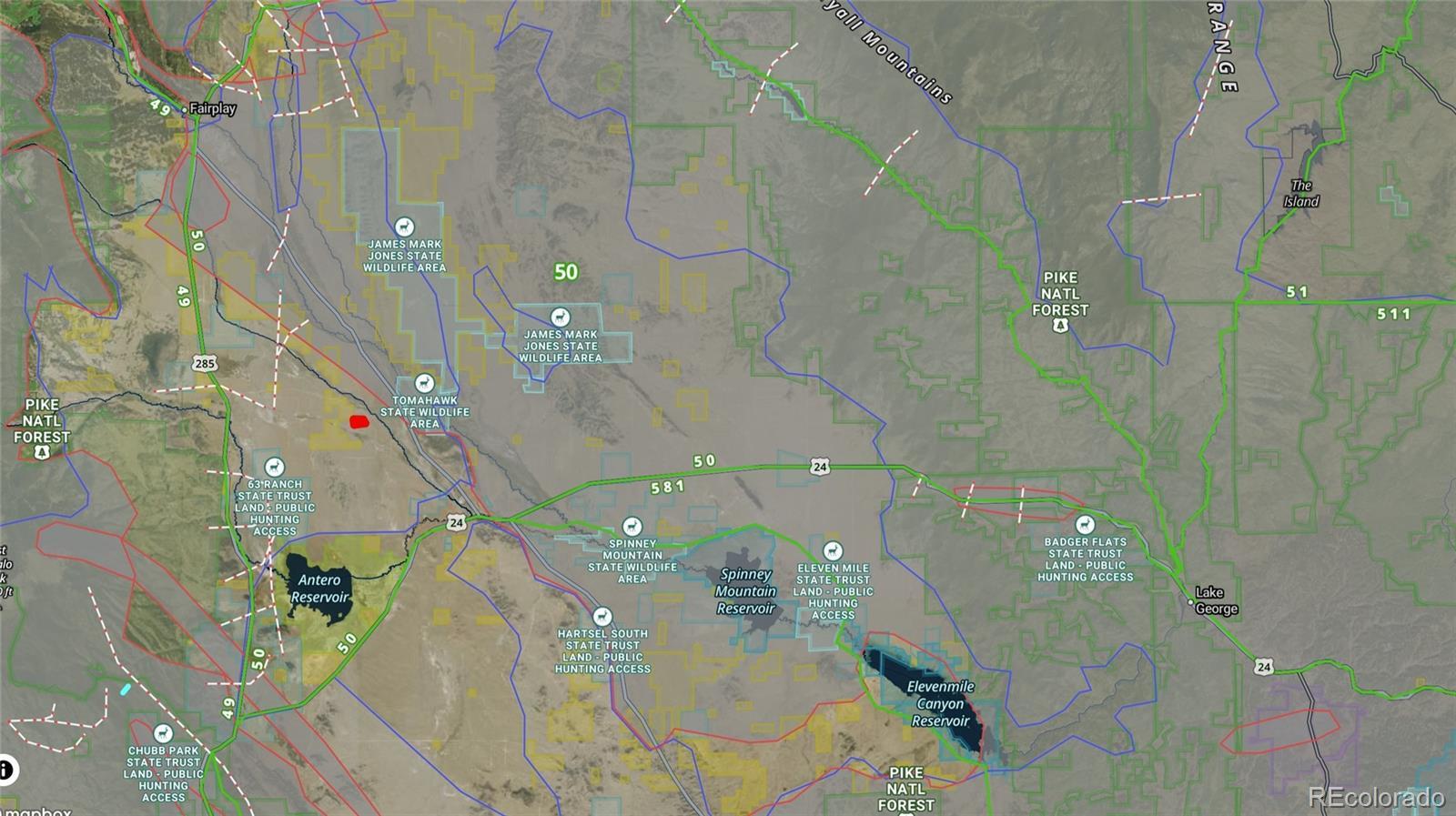 Welcome to the Rocky Mountain Lifestyle! Plan your dream home or your dream ranch on this large 40-acre parcel that touches over 350 acres of public land. Easy access all year, with maintained roads, off Hwy 9. Impressive views in all directions. This is the parcel you have been waiting for. Only about 10 minutes away from the Town of Harsel and about 20 minutes from the Town of Fairplay. For social, dining, or shopping opportunities, slide into any of our charming mountain towns: Hartsel, Fairplay, Guffy, or Buena Vista. There, you may find musical events, parades, firework shows, festivals, breweries, farmers markets, foot, bike, or burro races & much more. Drive an hour to Colorado Springs, 2 hours to Denver, or an hour to Breckenridge Ski Resort. FIVE large reservoirs in this county, with a new reservoir planned for the Hartsel area: https://wildhorsereservoir.org Spinney Mt State Park: https://cpw.state.co.us/state-parks/spinney-mountain-state-park, Eleven Mile State Park: https://cpw.state.co.us/state-parks/eleven-mile-state-park/eleven-mile-state-park-camping-lodging FOR GOLD MEDAL FISHING, check out the Dream Stream: https://maps.app.goo.gl/FuWXn5FhmeDX8urw9 Buyers to verify Park County Land Use Regulations for developing land and/or camping: https://www.parkcountyco.gov/189/Land-Use-Regulations