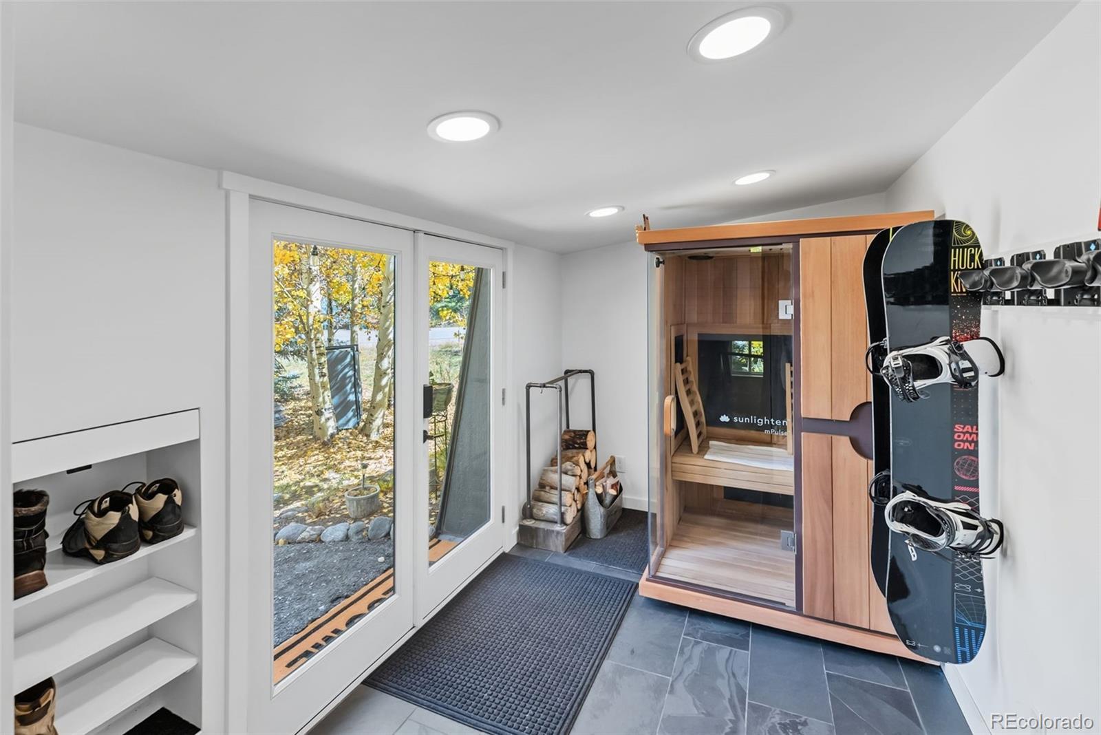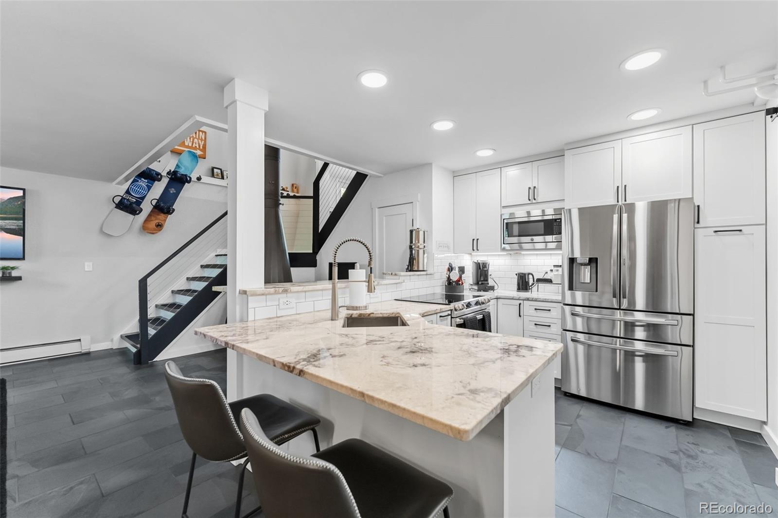 The private yard features a picnic-style dining area and a cozy fire pit for those chilly mountain nights, plus a dedicated firewood storage area. Each condo includes two parking spaces and offers long-term rental potential and short-term rentals with a license that is required in unincorporated Summit County. Inside, the home has been completely renovated, down to the studs. Updates include: New electrical system and panels, modern kitchen with new appliances, washer and dryer, entry mudroom with in-floor heating, new bathrooms with an oversized whirlpool tub, 9-foot ceiling in the upstairs bathroom, Custom closet organizers, new sliding doors, windows, and blinds. The original fireplace remains, offering both charm and excellent heat. The condo also boasts exceptional storage throughout. An additional perk includes 50% off golf games at the Breckenridge Golf Course. Offered turnkey and fully furnished. Sauna negotiable.