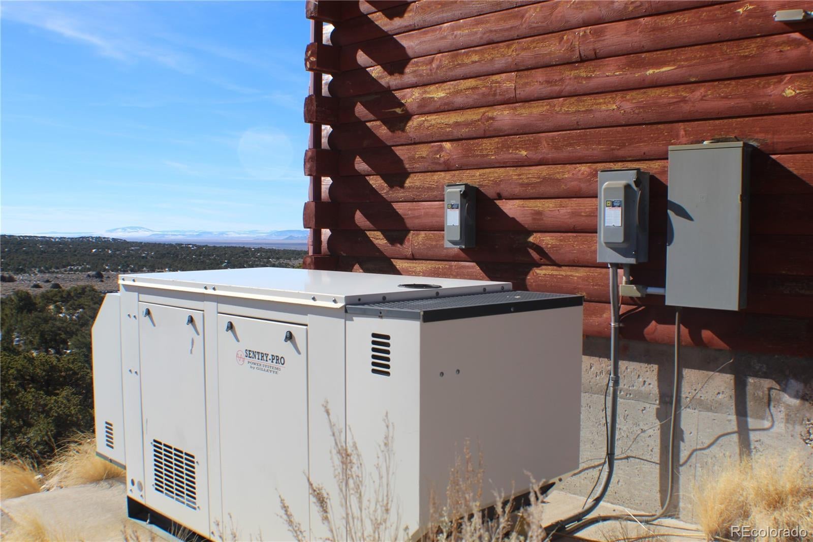 HOME BASE FOR YOUR HUNTING GROUP~FANTASTIC DEAL!! Custom 4,800 SF Off-Grid Mountain Retreat with RV Garage Apartment on 5 Acres. Located on a a quiet cul-de-sac, this stunning 3-level custom mountain home offers 4 bedrooms, 3 bathrooms, two offices, and a spacious walk-out basement—all set on 5 private acres in the foothills of the Sangre de Cristo Mountains. Enjoy panoramic views of two mountain ranges and the San Luis Valley through expansive picture windows. Relax on one of three scenic decks or take advantage of the oversized RV garage, which features a private apartment above—ideal as a guest suite or rental income opportunity. This property includes both a large workshop AND an attached garage, offering ample space for projects and storage. Located just 15 minutes from Fort Garland and 5 minutes from Mountain Home Reservoir, you're never far from town or adventure. Built for self-sufficiency, the home is entirely off-grid with no electric or water bills. Systems include: 16-panel tracking solar array, Wind turbine, 16 Rolls batteries with 3 inverters, 27kW Gillette Sentry propane generator (charges batteries in 2 hours) 160’ deep well providing 40 GPM of pure mountain water. Interior features include custom cabinetry, Brazilian granite countertops, and thoughtful design throughout. This property is being sold AS-IS and offers plenty of room for year-round living, multi-generational families, or a peaceful mountain escape with room for guests. Decks need some work, One of 4 power inverters is offline (needs repaired/replaced). System works fine with the remaining ones. All battery cables are new. Do minor cosmetic work, and one of the biggest Cabins in Colorado can be yours!! Rent the whole house AND the apartment over the garage for a fantastic income stream!!