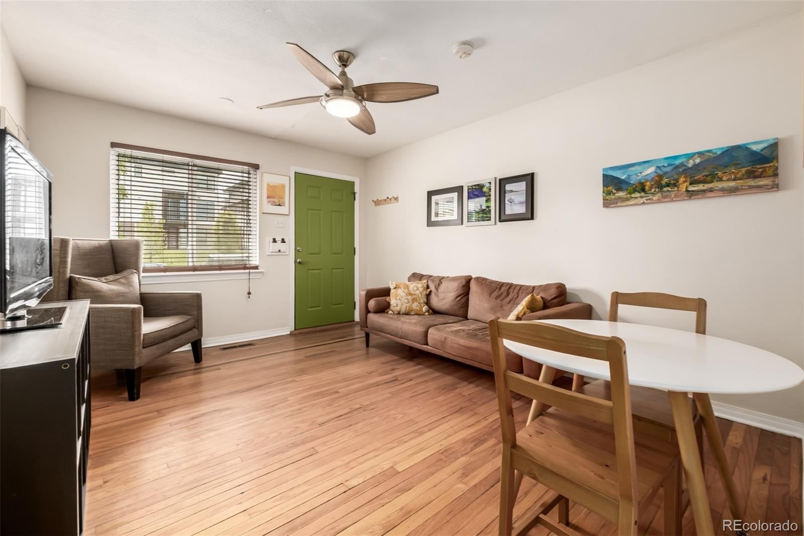 Take advantage of this fantastic opportunity! This lovely 2-bedroom townhome features a serene living room with a soothing palette, blinds, and warm wood flooring. Cook delicious meals in the kitchen, enjoy granite tile counters, white cabinetry with crown moulding, and sleek stainless steel appliances. Both bedrooms offer a cozy space for restful nights. Spend quiet afternoons on the open patio, perfect for enjoying a good book or a warm drink. For those seeking more privacy, you have the option to fence in the front yard for a more private space. Conveniently located close to public transportation, delicious restaurants, head over to The Highlands or Sloans Lake for entertainment, parks, and shopping options. Don't miss out on this gem!