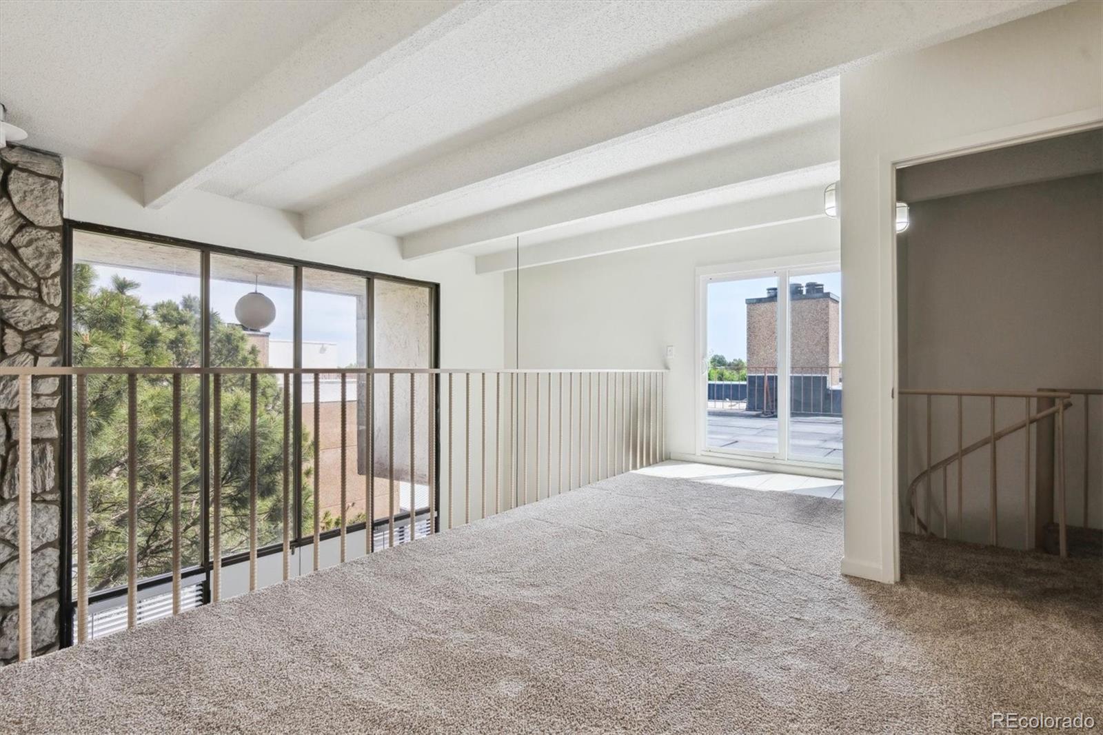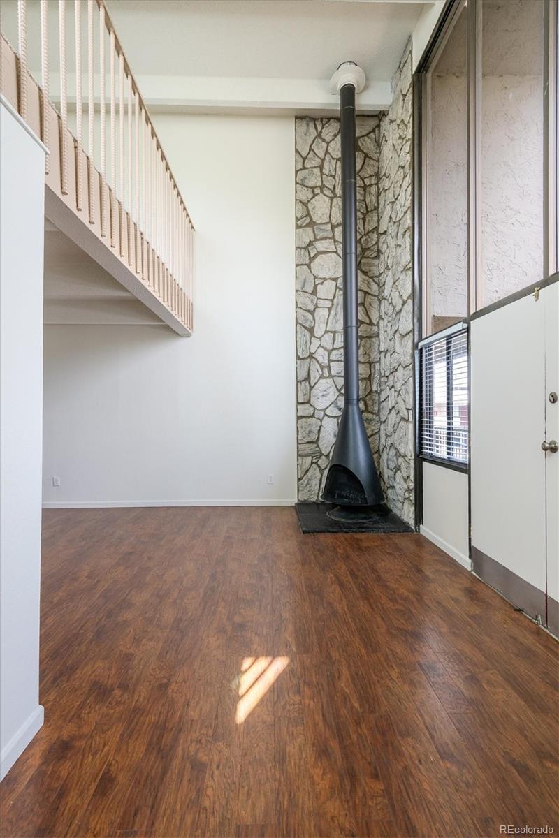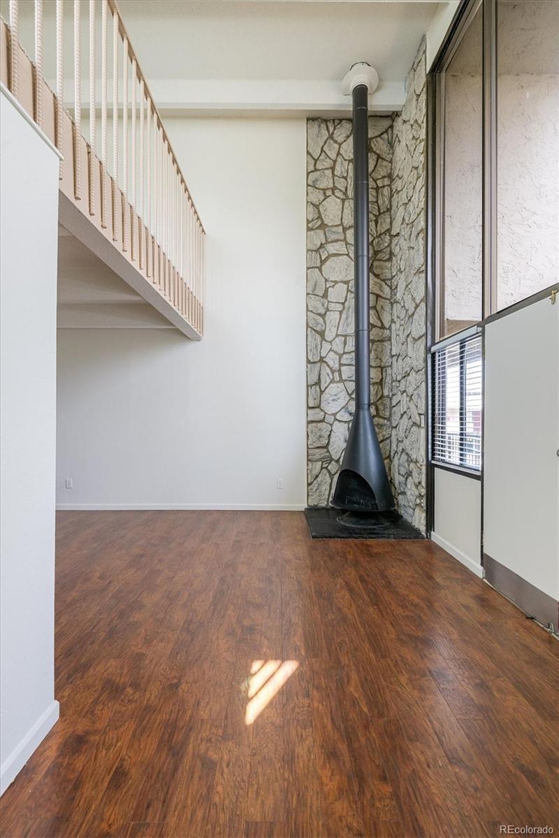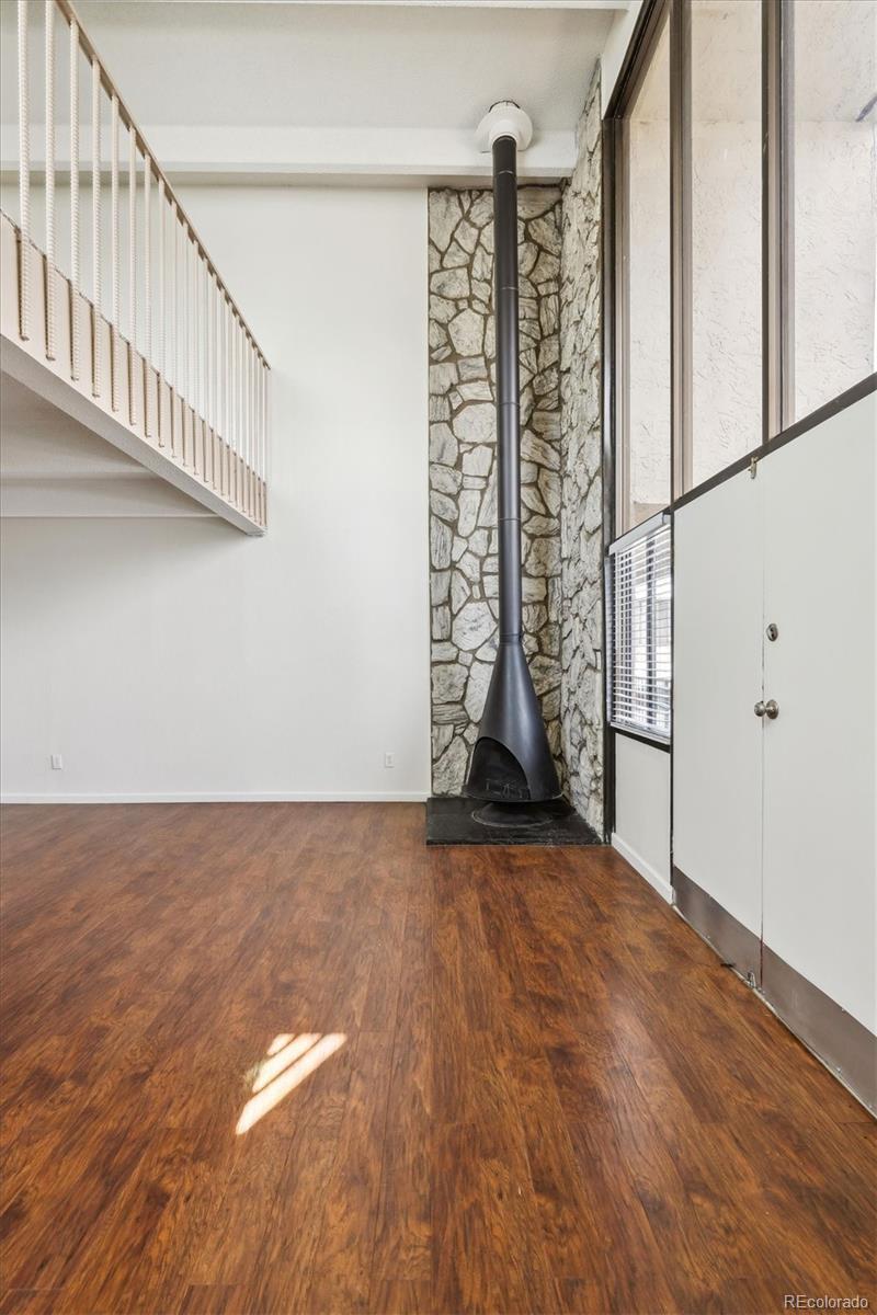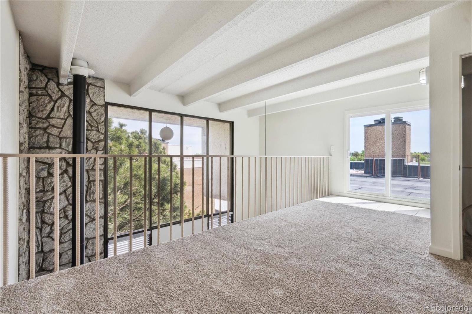 This is the coolest condo for sale in metro Denver right now! Two-story, penthouse style with two-story ceilings in the living and dining room and two-story windows overlooking the courtyard. Open living/dining area with mid century fireplace plus a private roof-top deck. Updated kitchen with stainless appliances, updated baths plus your own combo washer/dryer in the residence. One bedroom plus bath on the main level, second level includes the primary bedroom plus bath plus a third bedroom/loft with access to the roof-top deck. LVP floors on the main level, new interior paint, new carpet and ready to move into. Two covered carport spaces plus extra storage. Building has an elevator for easy access. HOA fee includes heat and A/C from the central building systems. Cherry Creek schools. Convenient neighborhood shopping is nearby and the Highline Canal and walking path is adjacent to the complex. Great for owner occupants or great as an investment property. You won't find this style anywhere else especially for this price! This property qualifies for the Community Reinvestment Act providing 1.75% of the loan amount toward the buyer's closing costs, pre-paids and discount points. Also available is Key Bank's "Key Community Mortgage" zero money down, no PMI and a $5,000 grant toward closing costs. Photos are of a similar property in the building with almost identical finishes owned by the same seller.