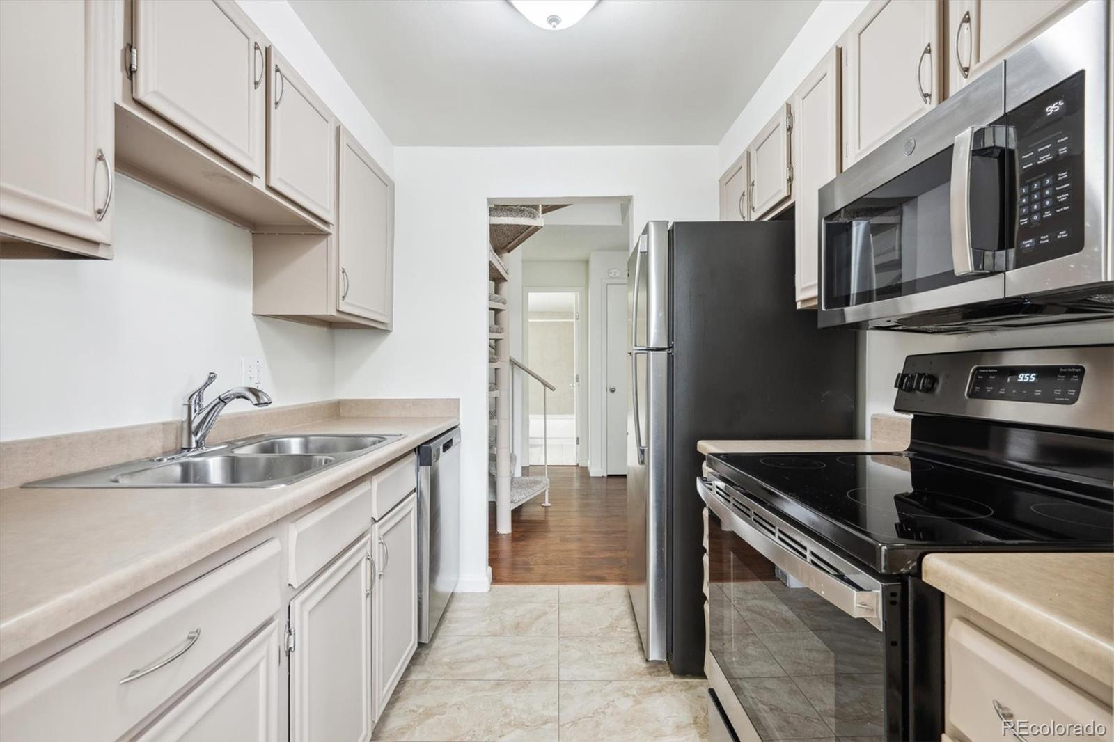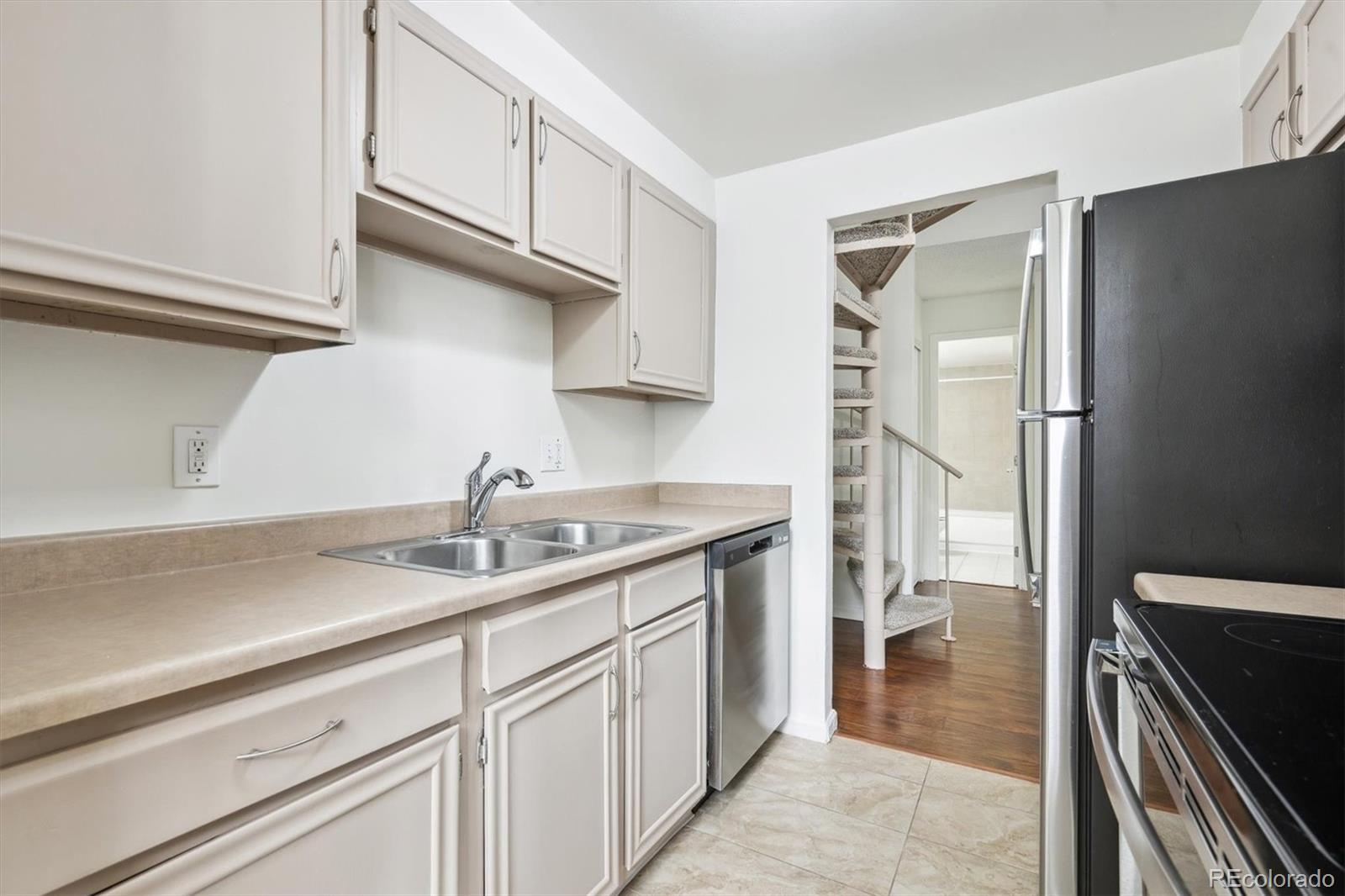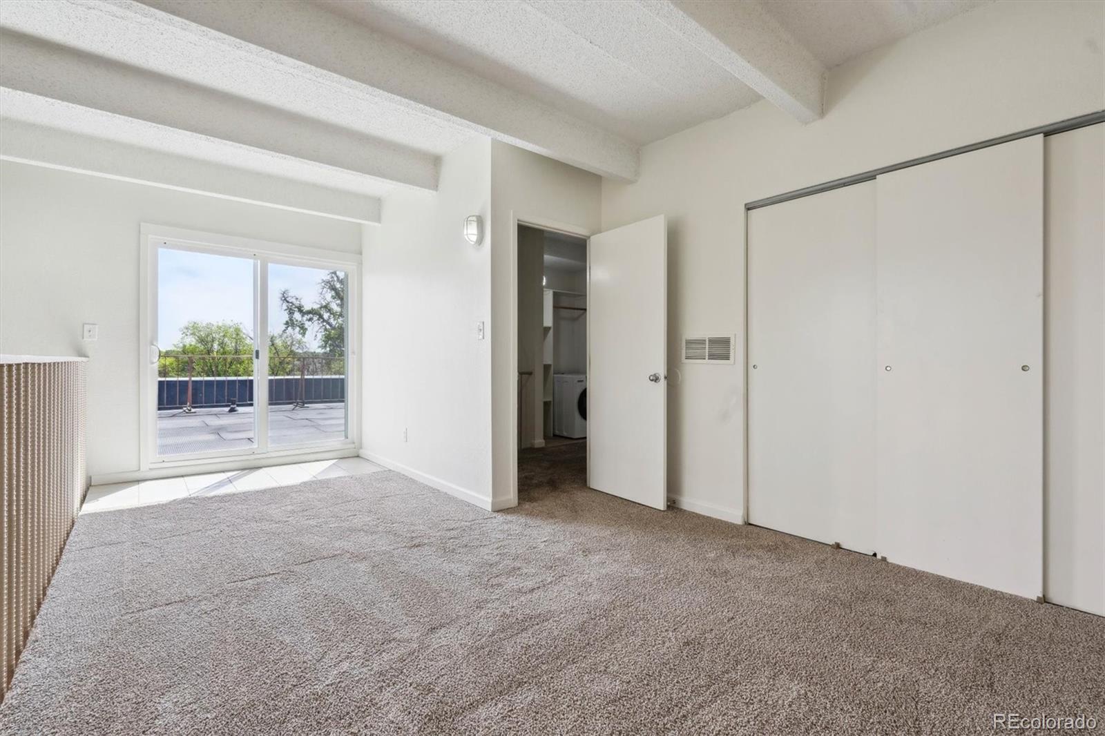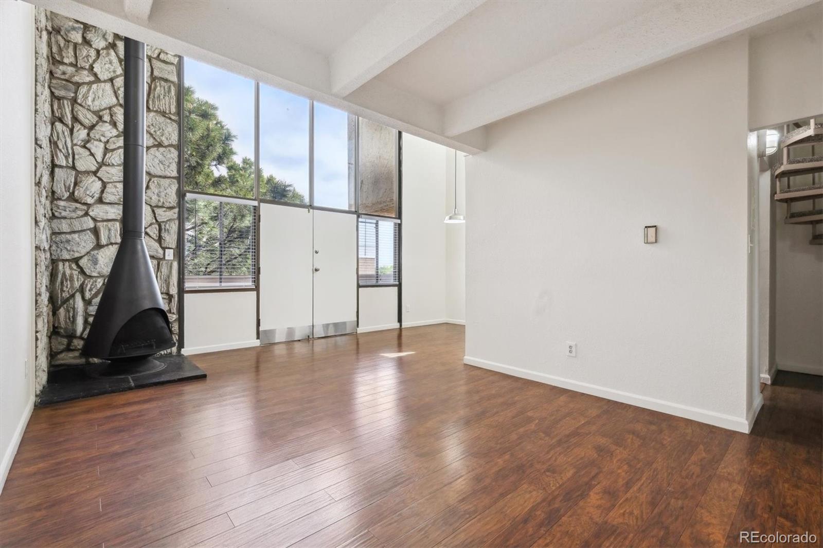 This is the coolest condo for sale in metro Denver right now! Two-story, penthouse style with two-story ceilings in the living and dining room and two-story windows overlooking the courtyard. Open living/dining area with mid century fireplace plus a private roof-top deck. Updated kitchen with stainless appliances, updated baths plus your own combo washer/dryer in the residence. One bedroom plus bath on the main level, second level includes the primary bedroom plus bath plus a third bedroom/loft with access to the roof-top deck. LVP floors on the main level, new interior paint, new carpet and ready to move into. Two covered carport spaces plus extra storage. Building has an elevator for easy access. HOA fee includes heat and A/C from the central building systems. Cherry Creek schools. Convenient neighborhood shopping is nearby and the Highline Canal and walking path is adjacent to the complex. Great for owner occupants or great as an investment property. You won't find this style anywhere else especially for this price! This property qualifies for the Community Reinvestment Act providing 1.75% of the loan amount toward the buyer's closing costs, pre-paids and discount points. Also available is Key Bank's "Key Community Mortgage" zero money down, no PMI and a $5,000 grant toward closing costs. Photos are of a similar property in the building with almost identical finishes owned by the same seller.