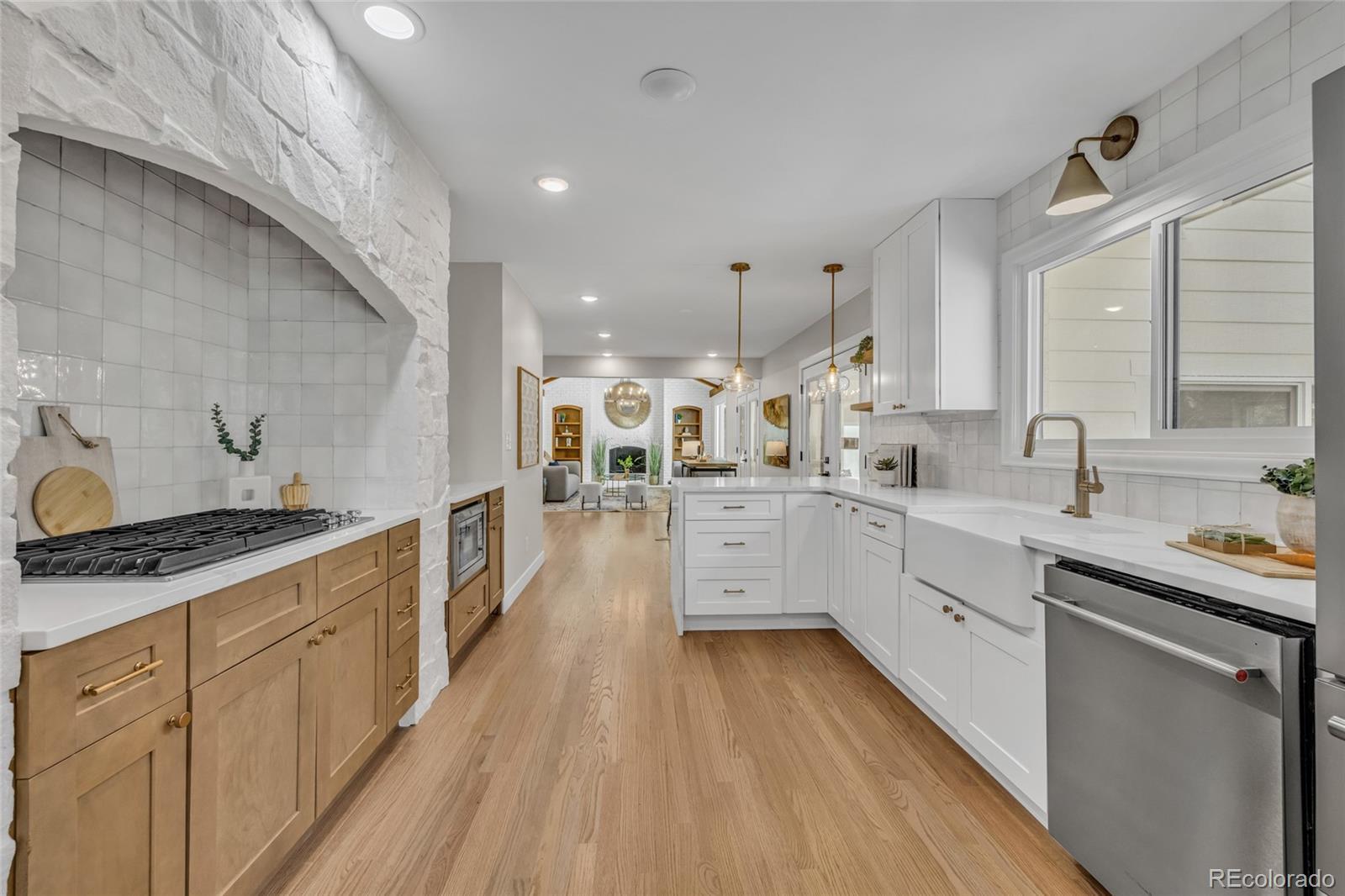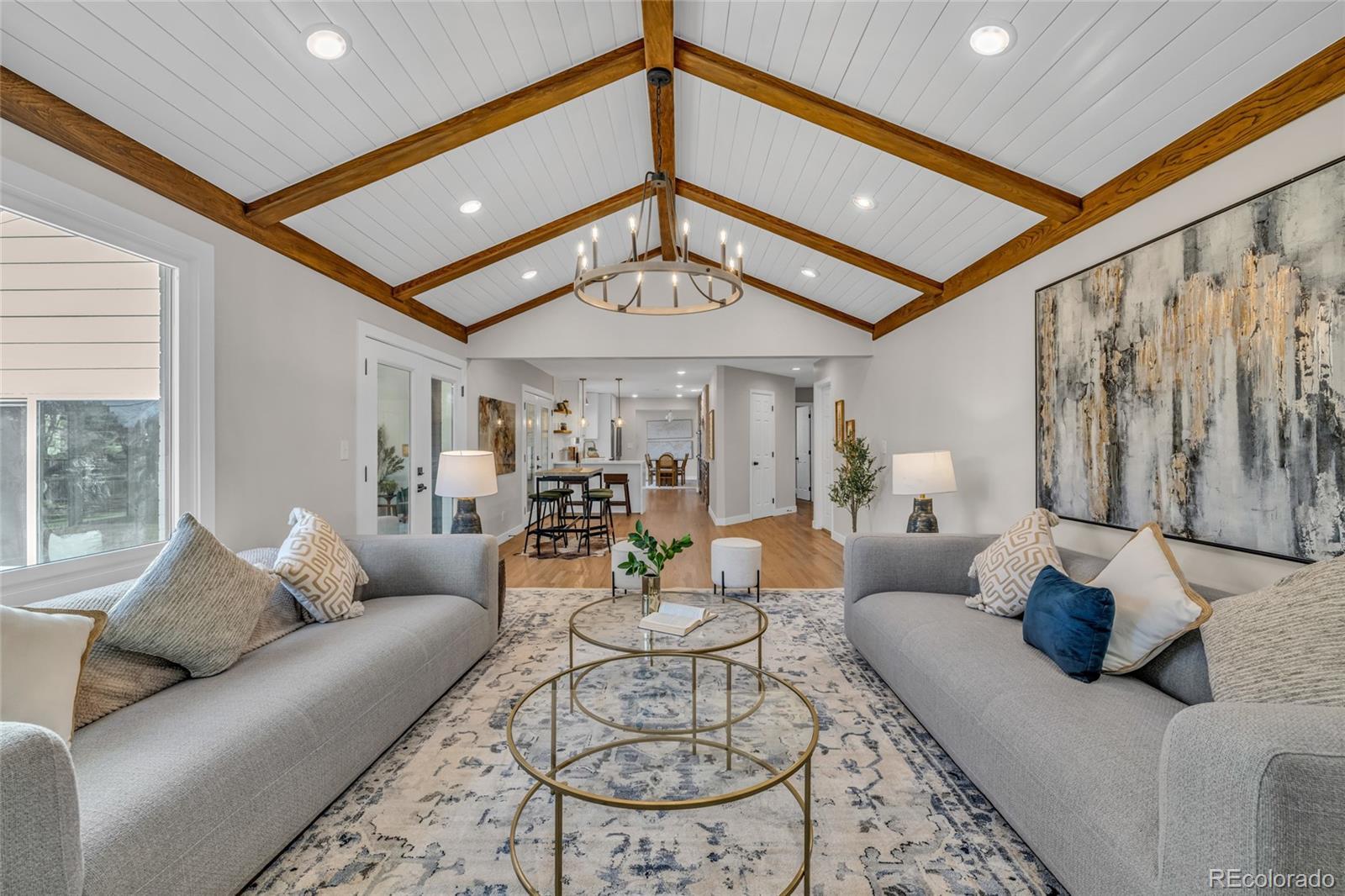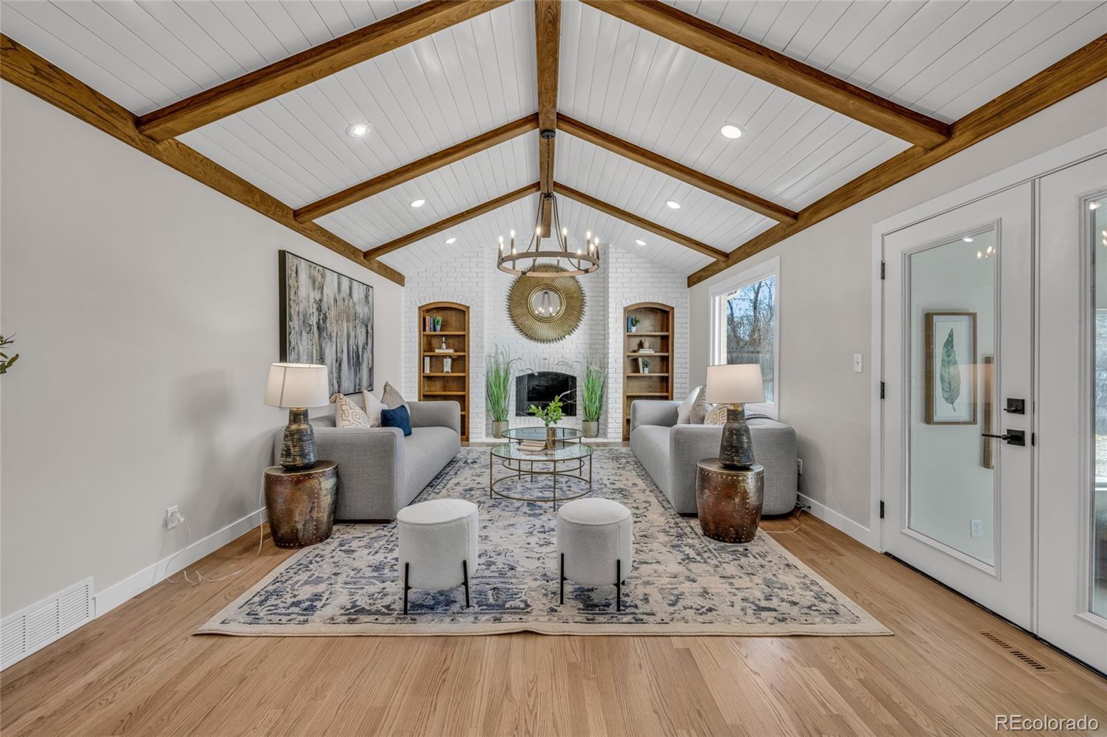 A truly rare opportunity in Southmoor Park. This exceptional residence is the gem you’ve been waiting for. Just two homes from Eastmoor Park, this thoughtfully renovated home blends timeless elegance with modern luxury. From the moment you arrive, new custom landscaping and a striking two-story entryway set the tone. Off the entryway, a welcoming sitting room with a fireplace flows seamlessly into the formal dining room. A beautiful home office off the entry features a stunning wood ceiling accent. Hardwood floors extend throughout the main level, leading to an incredible chef’s kitchen complete with all-new appliances, custom cabinetry, quartz countertops with a dramatic waterfall peninsula, arched stone detailing around the cooktop, and double ovens. The kitchen opens effortlessly to a breakfast nook and a vaulted living room with a fireplace and built-in bookshelves, creating the perfect space for both everyday living and entertaining. A light-filled sunroom with an electric fireplace overlooks the expansive backyard, offering a cozy retreat year-round. Upstairs, the spacious primary suite with 5-piece bathroom impresses with a custom vanity and quartz countertop, stand alone soaking tub, and walk-in closet. Two additional bedrooms upstairs share another large 5-piece bathroom. A massive laundry room adds convenience rarely found in homes of this era. The finished basement features a large family room, bonus room, and an additional bedroom with an en suite bathroom — ideal for guests or multigenerational living. Outside, the expansive backyard is an entertainer’s dream with brand-new sod, a charming pathway, and a large covered pergola. Backing to the Eastmoor Swim and Tennis Club and offering easy access to I-25, the DTC, Greenwood Village, restaurants, parks, shopping, and more, this home delivers an unbeatable combination of space, style, and location. This is truly a must-see — an extraordinary home in an extraordinary setting.