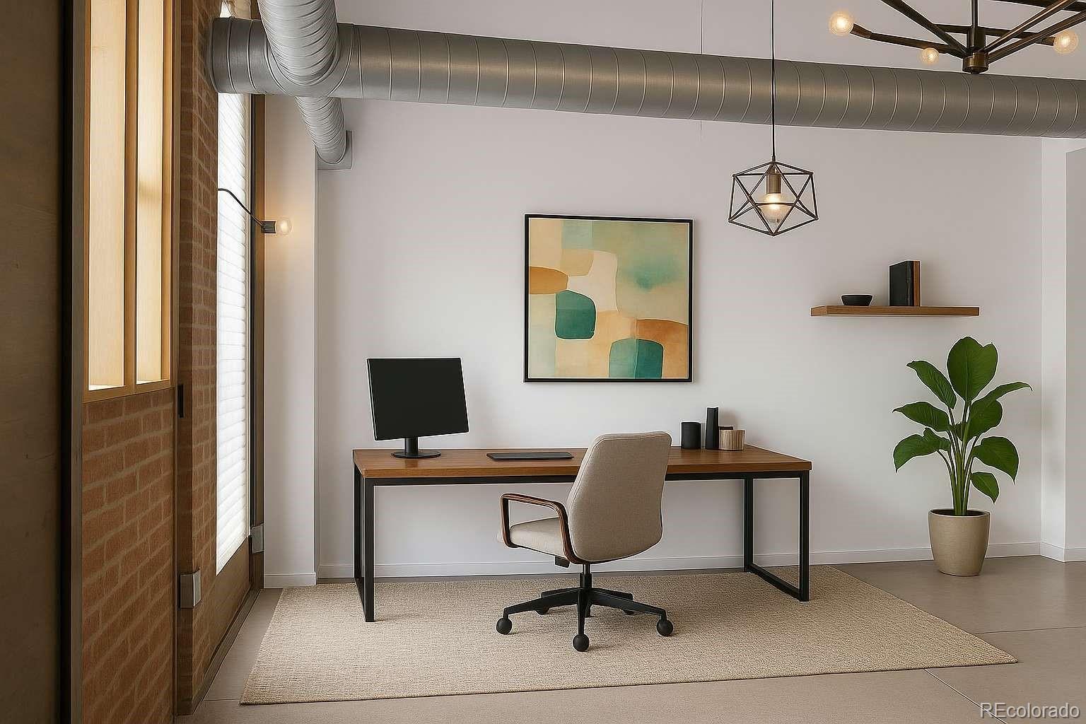 Introducing a rare opportunity to own a stunning two-level brick Live/Work Loft in the highly sought-after Rail Yard Lofts in Denver’s vibrant RiNo Arts District. This unique space features direct street access-great for live/work with exposed brick walls, soaring vaulted timber ceilings, polished concrete floors, and new paint throughout that blend industrial charm with modern living. The flexible open-concept layout allows you to create the rooms that best suit your lifestyle, whether for living, working, or both. The efficient kitchen is equipped with stainless steel appliances that an include a French door refrigerator, dishwasher, range and microwave, and the upper-level loft serves as a spacious bedroom retreat with new carpet. Enjoy your own private patio for outdoor relaxation and take advantage of two covered & gated parking spaces. With a front door that opens directly to street this makes this an ideal Live/Workspace. Outside explore the vibrant neighborhood of RiNo—walk to local restaurants, art galleries, and breweries, and soak in the neighborhood's eclectic culture. With convenient access to the light rail and close by access to the A-Line train to Denver International Airport (DIA). If you're searching for an urban Loft that offers both energy and serenity, your perfect balance awaits right here. Some photos are virtually staged.