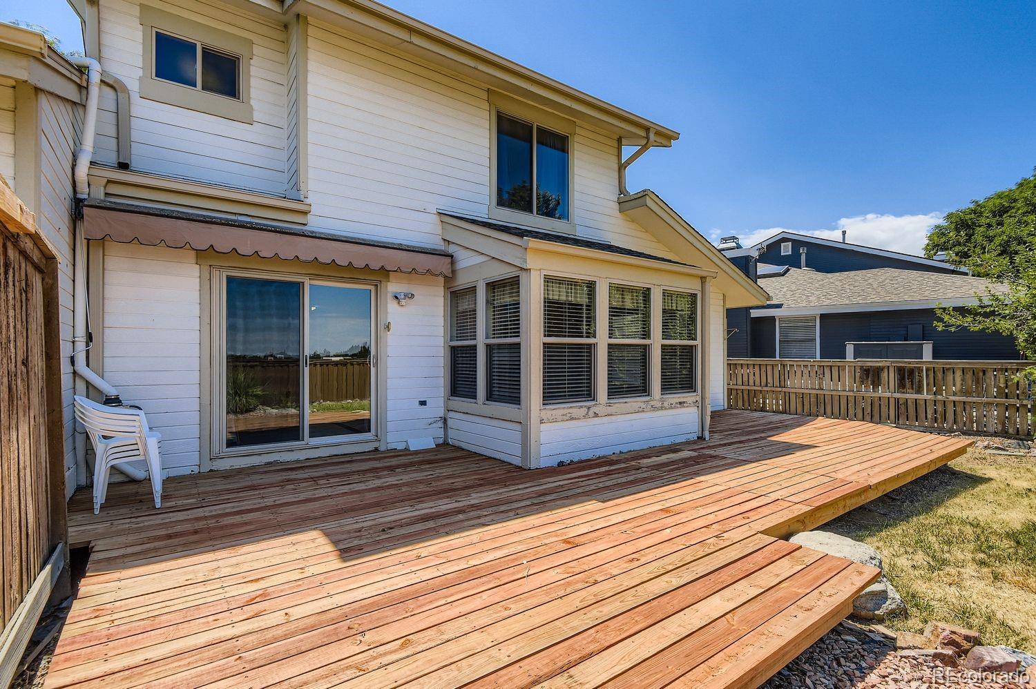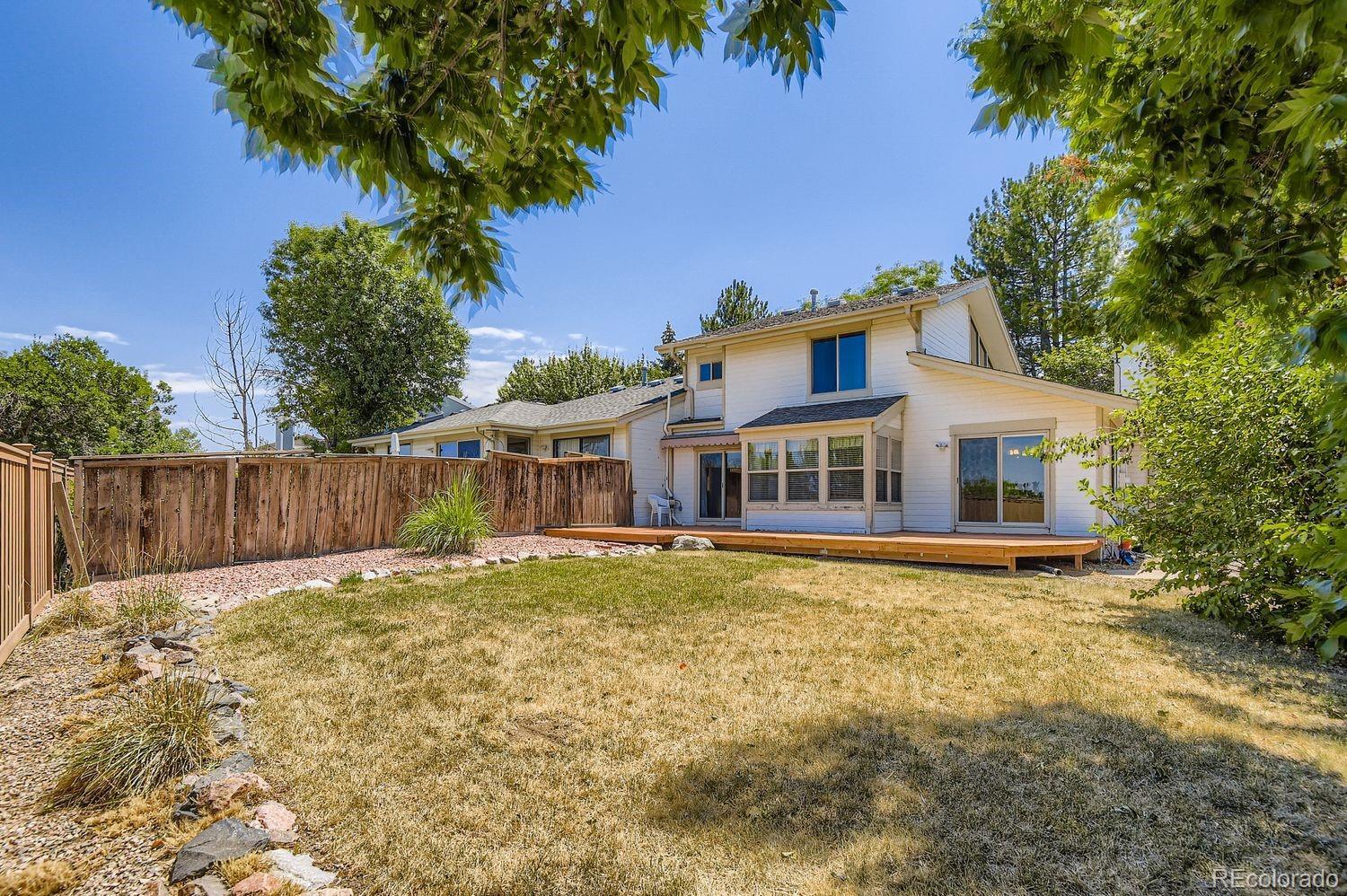 Views of Downtown – Highlands Ranch Retreat! Discover a rare opportunity to own this duplex-style townhome in one of Highlands Ranch’s most desirable neighborhoods. Perfect as a personal sanctuary, this light-filled 3-bedroom, 3-bath home boasts vaulted ceilings, expansive windows, and an open, airy feel throughout. The main floor features a versatile office or 3rd bedroom, a cozy living room with fireplace, a dedicated dining area, and a gourmet kitchen that flows seamlessly into the family room—ideal for both entertaining and everyday living. Step outside to a brand-new deck overlooking the large, fenced backyard, a perfect space for gatherings or quiet relaxation. Additional highlights include a semi-finished basement with ample storage, a 2-car attached garage, and a location that offers unmatched convenience—close to shopping, dining, miles of trails, and four Highlands Ranch recreation centers. Home is being sold in as-is condition. Taxes reflect a senior exemption.