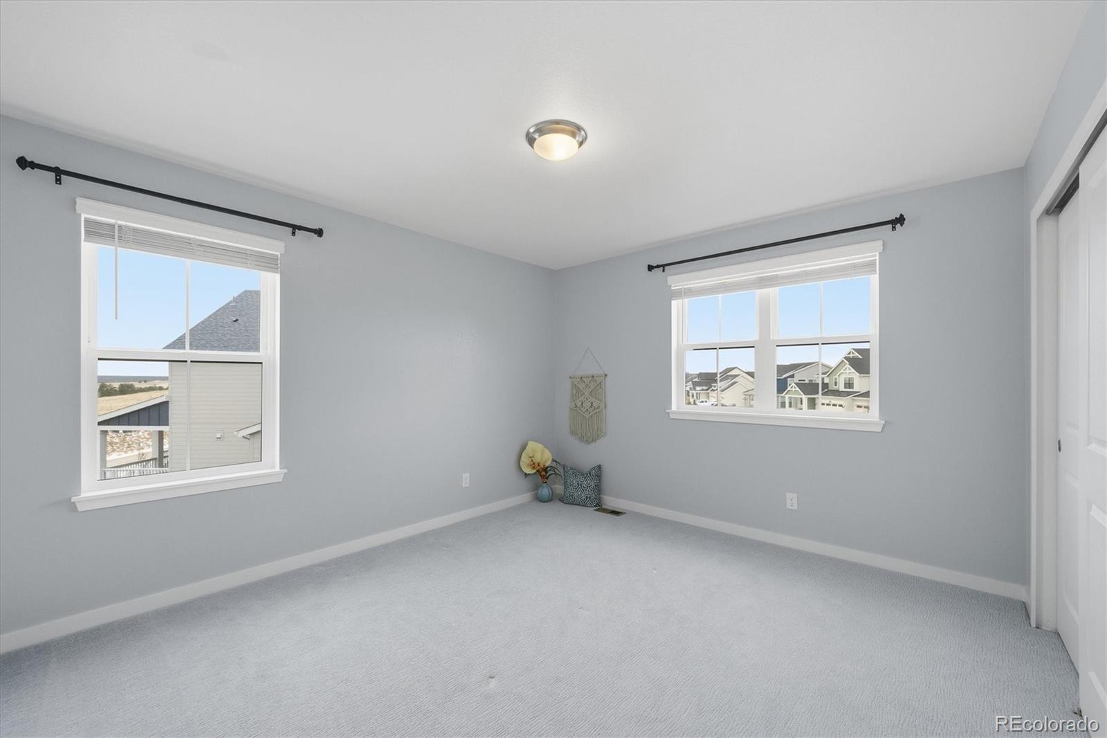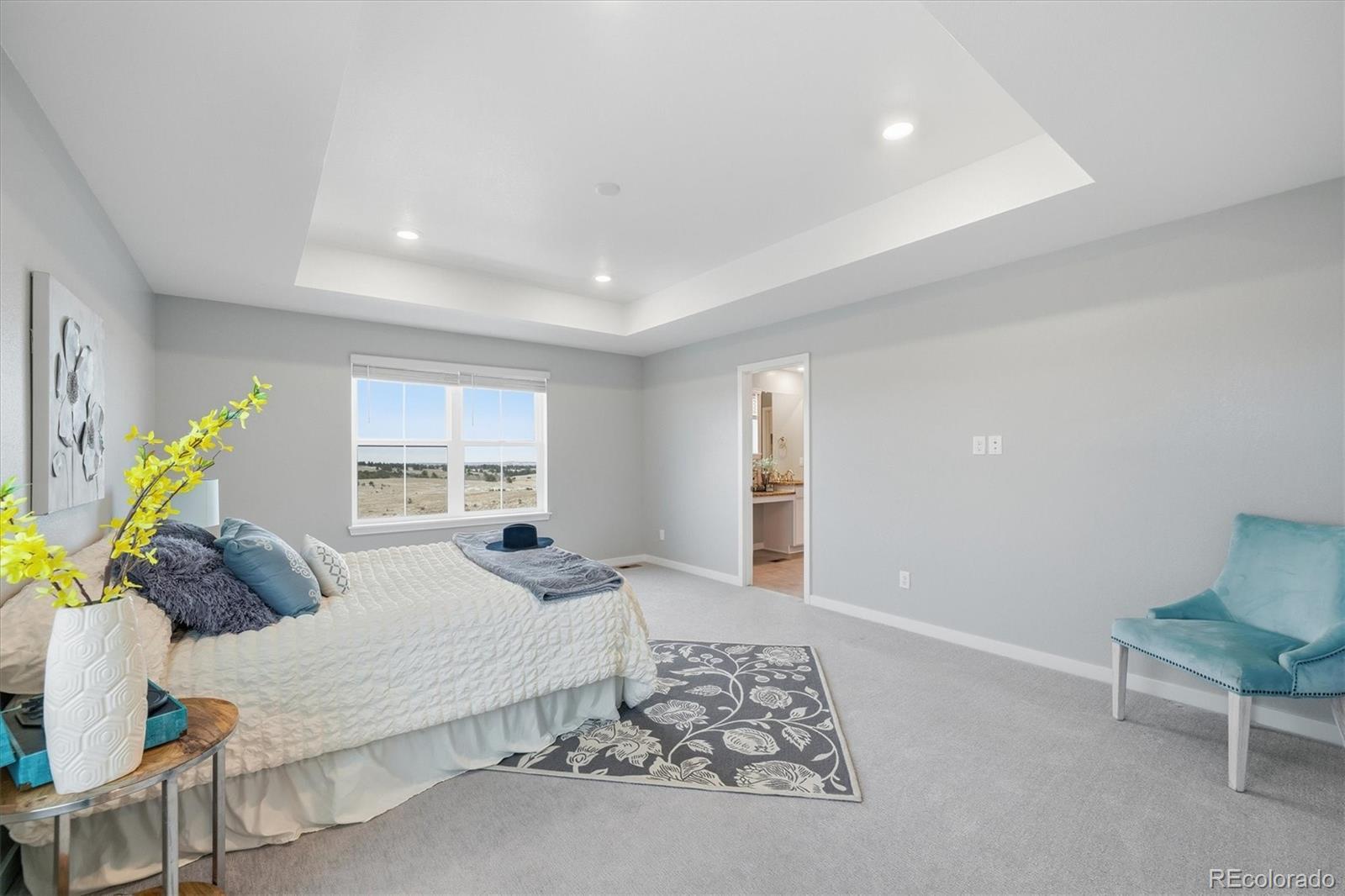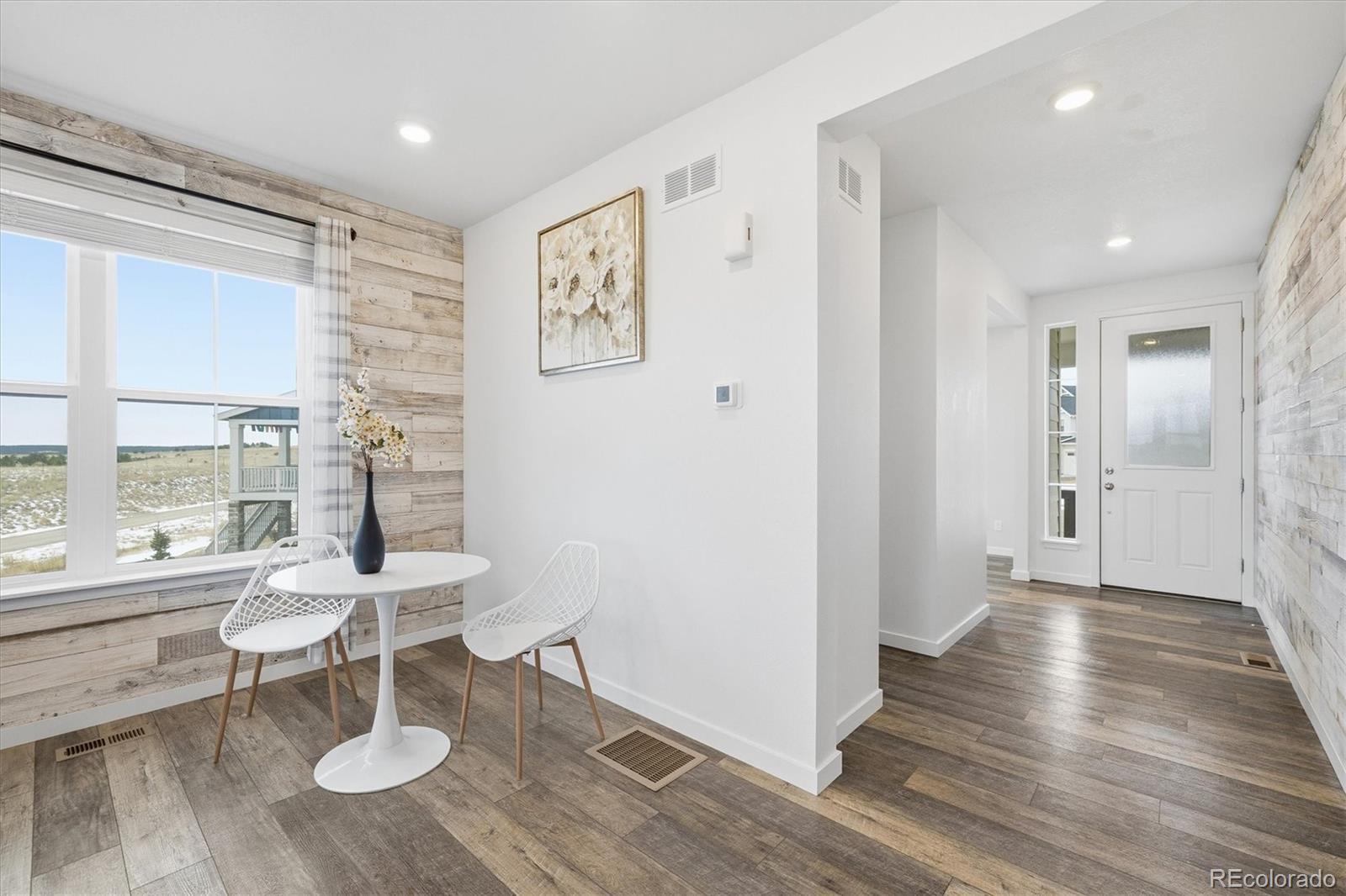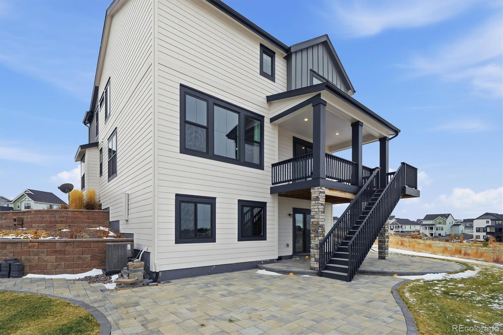 Tucked at the end of a quiet cul-de-sac, this home sits on the best lot in all of Independence. With open space behind plus extra space on each side of the home, it feels private, peaceful, and expansive—like the cul-de-sac is yours alone—with sweeping plains views from nearly every angle. Inside, the home is light, open, and thoughtfully upgraded, blending clean, modern finishes with warm farmhouse-style lighting and design touches. The main level flows beautifully, with a formal office and dining room leading into a huge living room open to the kitchen, ideal for everyday living and entertaining. The kitchen features bright white cabinetry, slab granite countertops, stainless steel appliances, a massive island with seating, and farmhouse-inspired lighting that adds character and charm. Enjoy morning coffee on the covered deck or evenings on the custom brick paver patio surrounded by lush, illuminated landscaping. The walkout basement offers high ceilings and room to grow for future living or recreation space. Upstairs are four spacious bedrooms, including two with walk-in closets, plus convenient upstairs laundry. The primary suite is a true retreat with open-space views, an upgraded walk-in shower, slab granite counters, and a huge walk-in closet with real wood built-ins. Additional highlights include upgraded luxury carpet and pad, LVP flooring, stylish shiplap accents, cordless blinds, Milgard single-hung windows, a whole-home humidifier, and farmhouse-style fixtures. New windows, exterior paint, and a Class 4 roof were completed March 2025. Central A/C, a radon system, upgraded 8-foot garage doors, and a fully insulated and drywalled 3-car garage complete the home. NO HOA fee, plus a community outdoor pool, playgrounds, fitness center, community garden & clubhouse all with quick & easy access to Parker or Elizabeth just 13 minutes away. This is more than a home—it’s space, views, thoughtful design, and a lifestyle that’s hard to find.