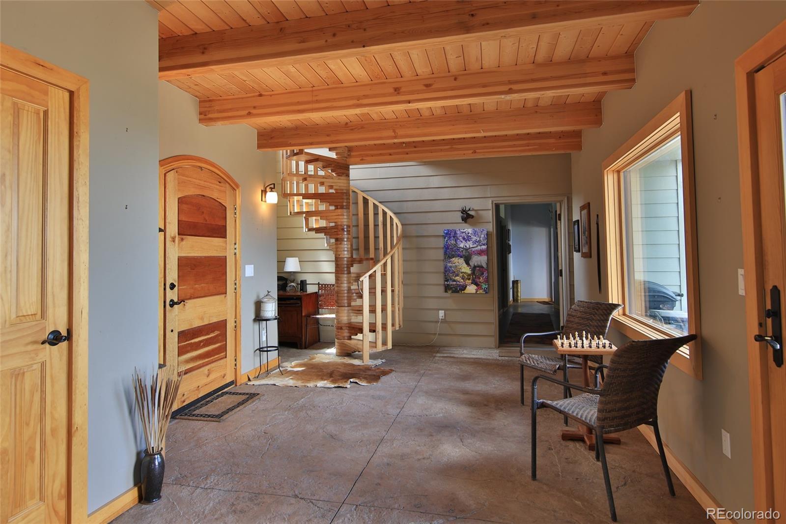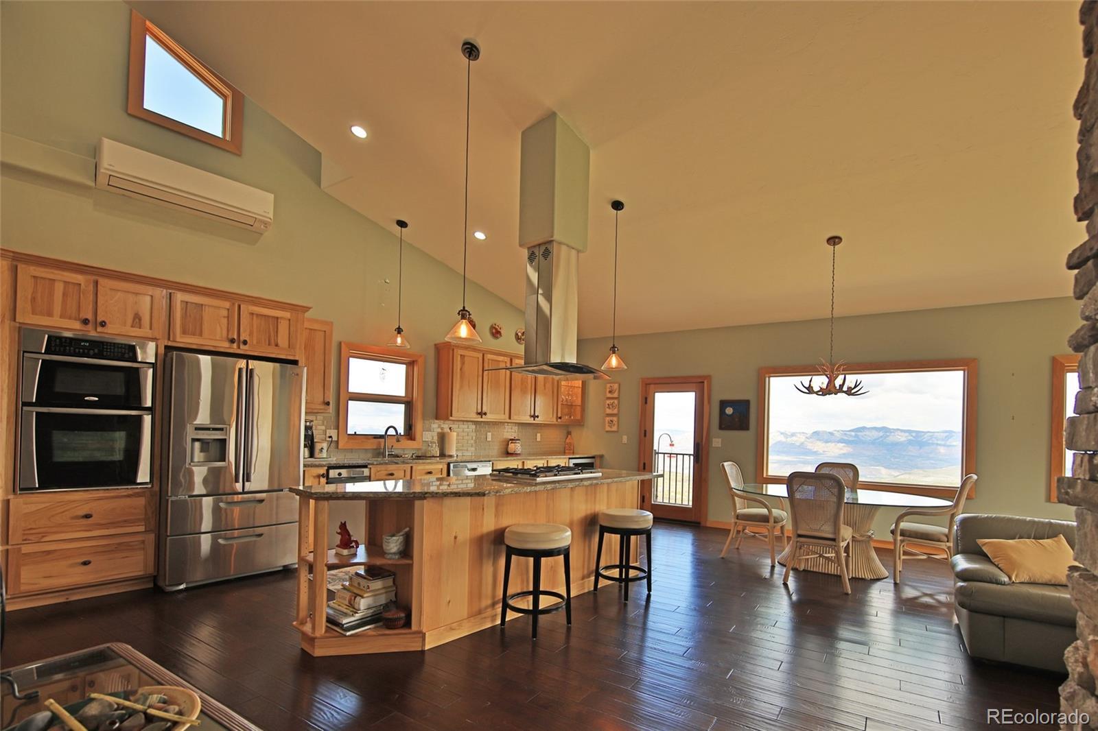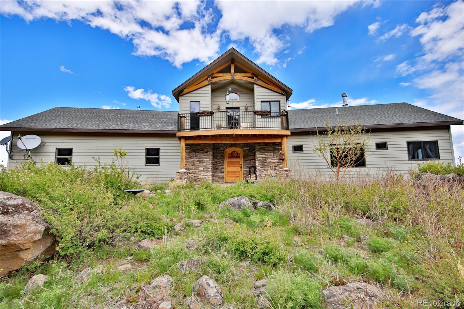 Colorado acreage with a luxury, fully furnished home offering breathtaking, on-top-of-the-world views. This stunning 1.5-story residence features 3 bedrooms, 4 bathrooms, an oversized 1 car garage, and sits on 35.33 acres. Enter the home from the covered porch, through the arched door and into the foyer with large windows to extend the mountain and valley views. A glass door leads to a flagstone patio, hot tub and fire pit. Under vaulted ceilings, enjoy a chef’s kitchen with upgraded stainless-steel appliances and wine refrigerator, dining/living area and a wood burning fireplace. Spacious primary suite features a walk-in closet and a luxurious full bath with a walk-in shower, jetted tub, enclosed commode, and heated floors for ultimate comfort. This home offers an ADU/guest suite with full kitchen, living area, pellet fireplace, ¾ bath, bedroom with walk in closet and deck. Climb the handmade cherry and oak spiral staircase to the upper level that includes another primary suite with balcony, walk in shower, private commode/bidet, walk in closet with an entrance into a finished bonus room with spacious closets. Convenient one-car garage with direct access through the laundry area, complete with washer and dryer and ample storage. The stamped concrete, engineered hardwood, tiled flooring, exquisite light fixtures, custom cabinets and other hardwood accents add beauty and comfort for mountain living. The home is on a well, has a landline, internet, mini split heat and A/C, and in floor radiant heat in bathroom. Enjoy the private, graveled driveway with room for an RV. This property is in GMU 421 and offers outdoor Colorado recreation in every direction. Don't miss out on this luxury Colorado Mountain property.