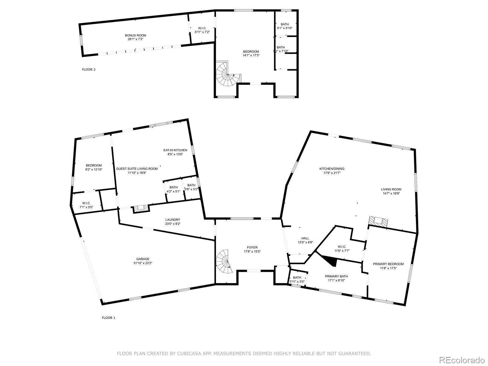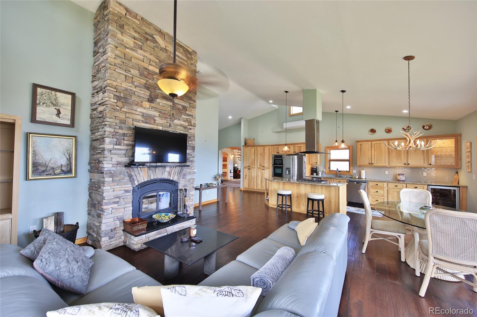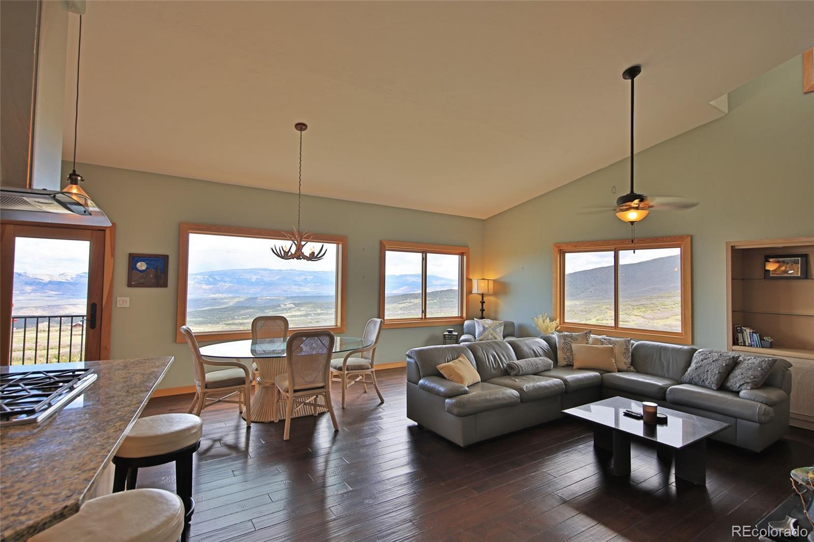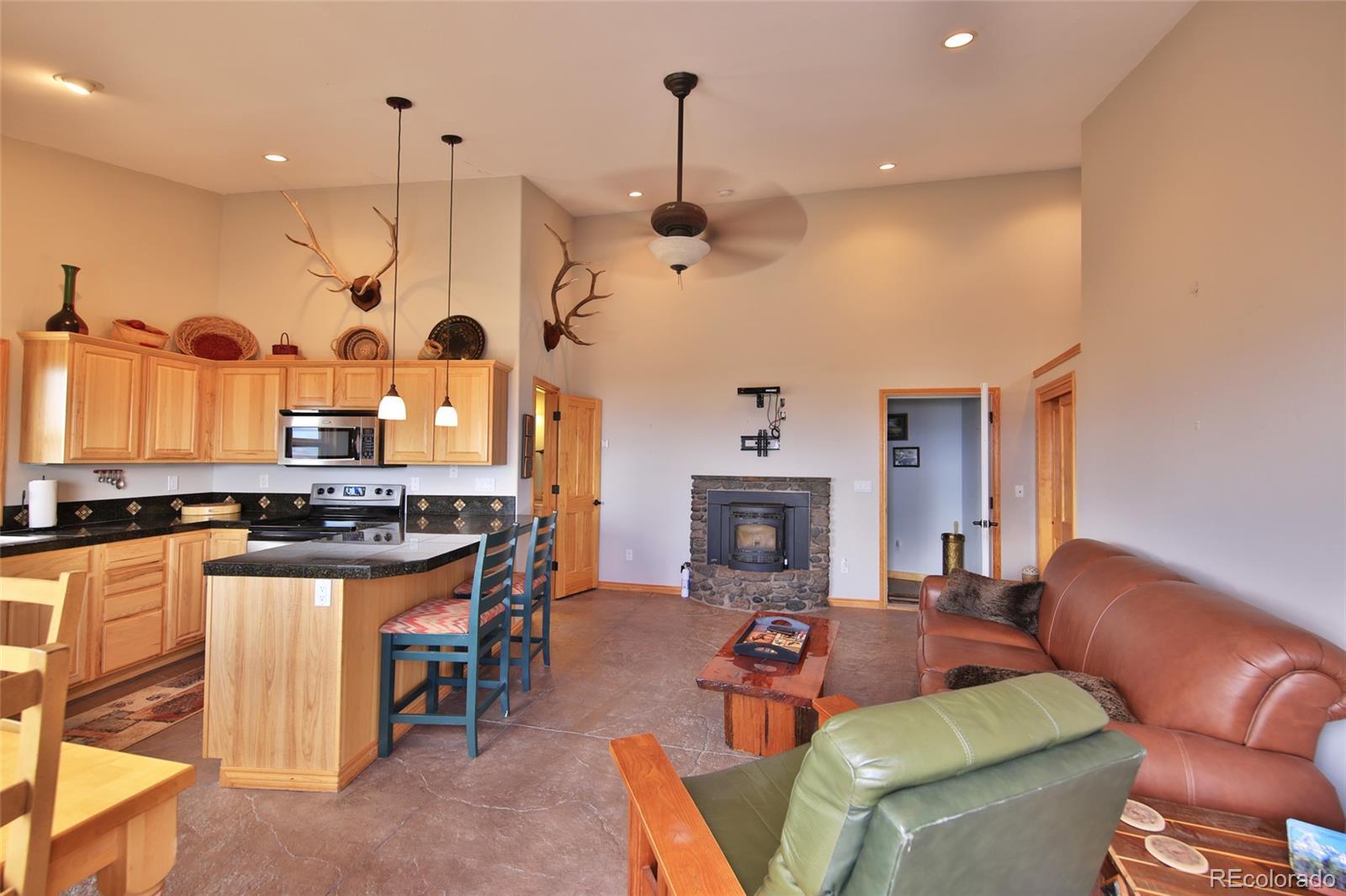 Colorado acreage with a luxury, fully furnished home offering breathtaking, on-top-of-the-world views. This stunning 1.5-story residence features 3 bedrooms, 4 bathrooms, an oversized 1 car garage, and sits on 35.33 acres. Enter the home from the covered porch, through the arched door and into the foyer with large windows to extend the mountain and valley views. A glass door leads to a flagstone patio, hot tub and fire pit. Under vaulted ceilings, enjoy a chef’s kitchen with upgraded stainless-steel appliances and wine refrigerator, dining/living area and a wood burning fireplace. Spacious primary suite features a walk-in closet and a luxurious full bath with a walk-in shower, jetted tub, enclosed commode, and heated floors for ultimate comfort. This home offers an ADU/guest suite with full kitchen, living area, pellet fireplace, ¾ bath, bedroom with walk in closet and deck. Climb the handmade cherry and oak spiral staircase to the upper level that includes another primary suite with balcony, walk in shower, private commode/bidet, walk in closet with an entrance into a finished bonus room with spacious closets. Convenient one-car garage with direct access through the laundry area, complete with washer and dryer and ample storage. The stamped concrete, engineered hardwood, tiled flooring, exquisite light fixtures, custom cabinets and other hardwood accents add beauty and comfort for mountain living. The home is on a well, has a landline, internet, mini split heat and A/C, and in floor radiant heat in bathroom. Enjoy the private, graveled driveway with room for an RV. This property is in GMU 421 and offers outdoor Colorado recreation in every direction. Don't miss out on this luxury Colorado Mountain property.