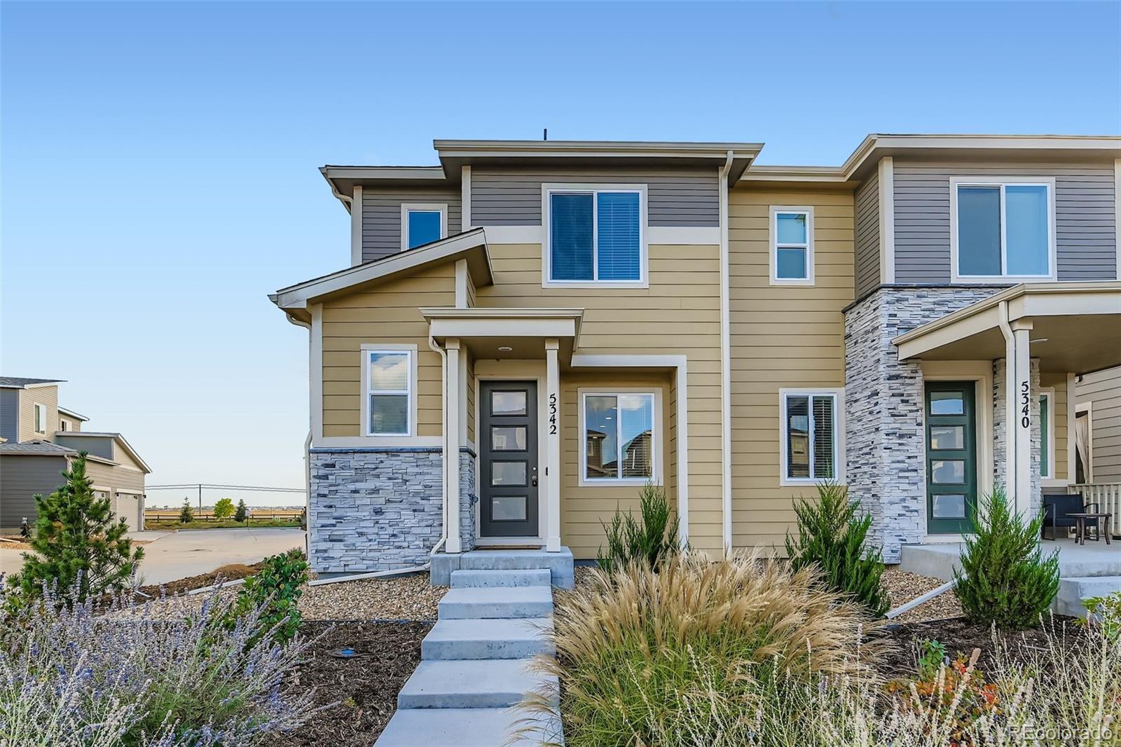 Meticulously maintained 3 bedroom, 3 bathroom duplex on a quiet corner lot built in 2022. Main floor features open kitchen with island and gas range. Cozy living room, powder bathroom and dining space with access to the side patio. Upstairs features 3 bedrooms and 2 bathrooms including primary bedroom with private ensuite bathroom and walk-in closet. 2 car attached garage and rare, full driveway for additional off-street parking. Upgraded engineered wood floors throughout the main level. All appliances stay. Come enjoy low maintenance living with low HOA dues of $145/month. Excellent location with easy access to I-25, rec center, the new King Soopers and Old Town Frederick for shopping and dining. Hurry, this one won't last!