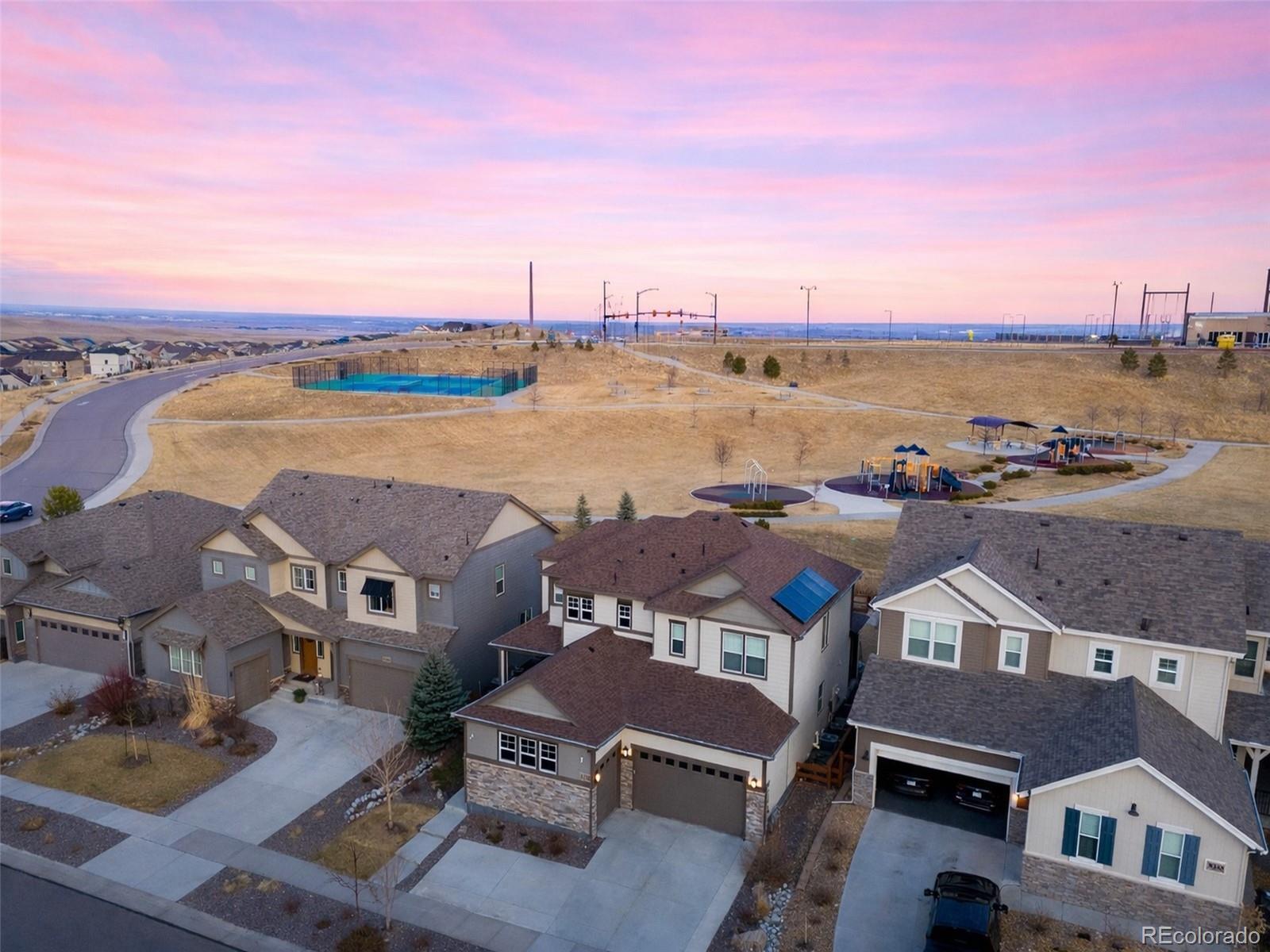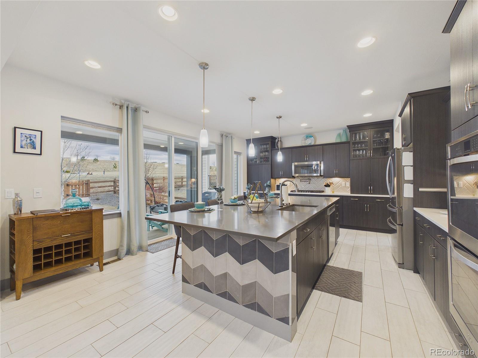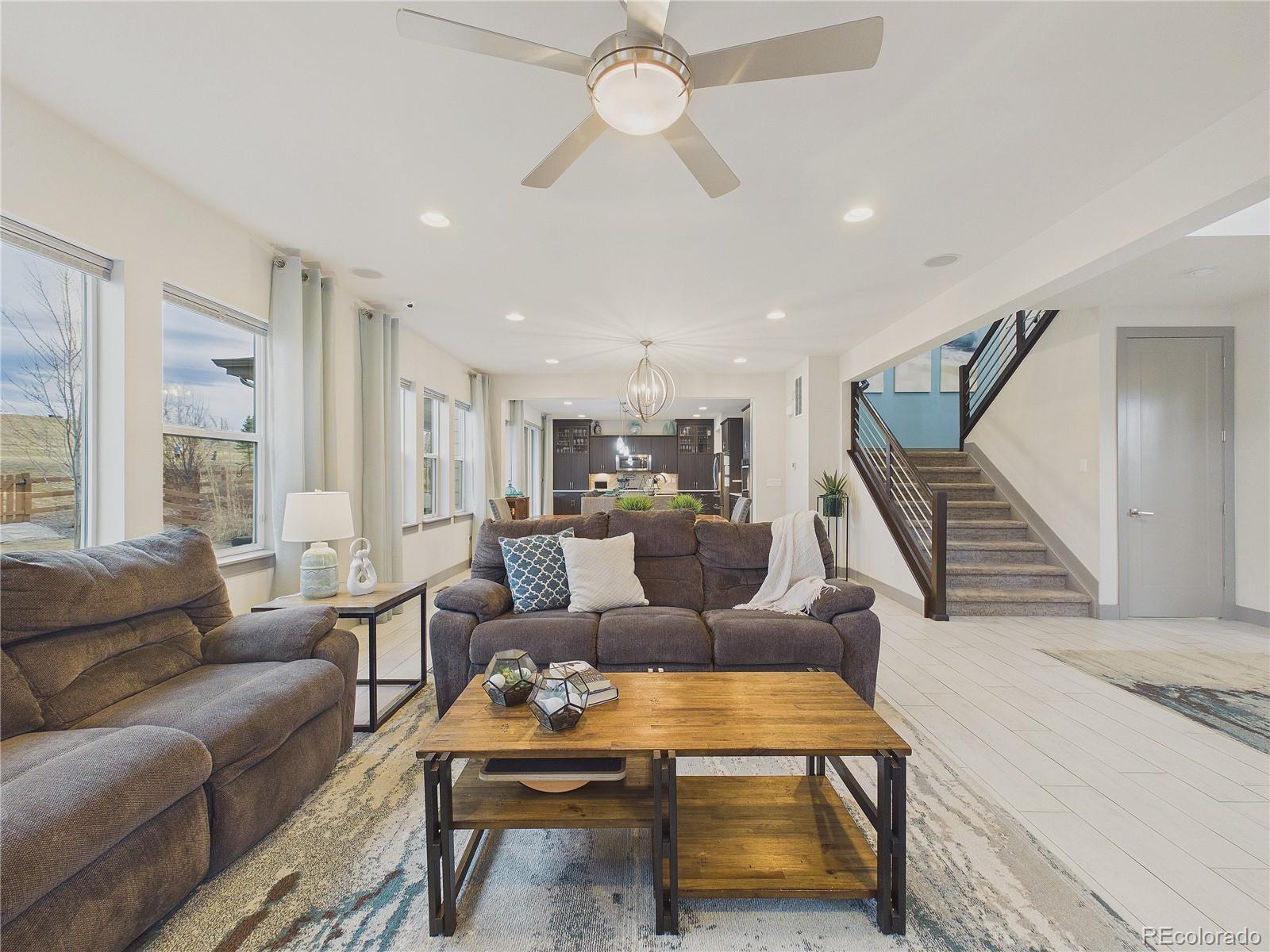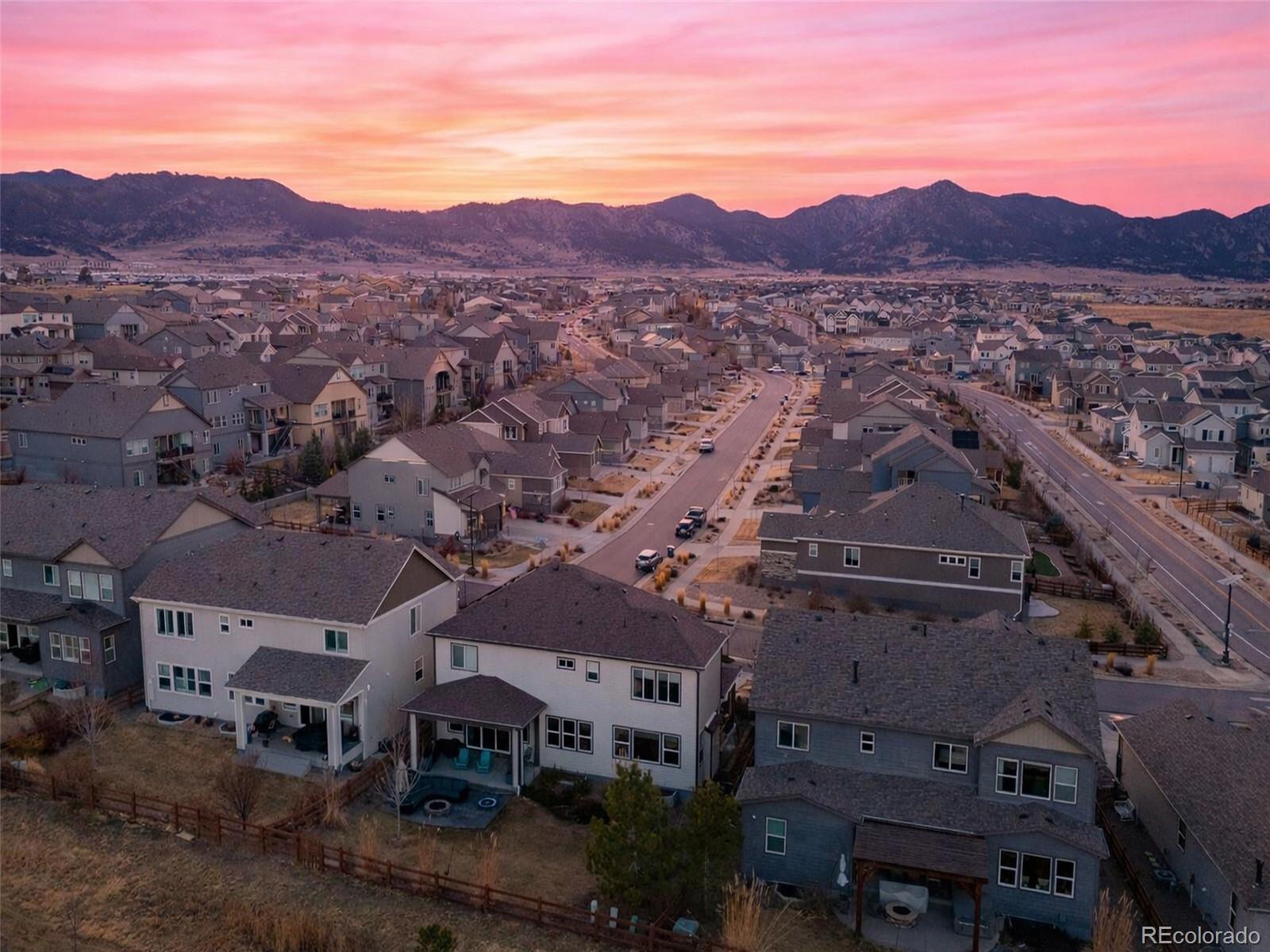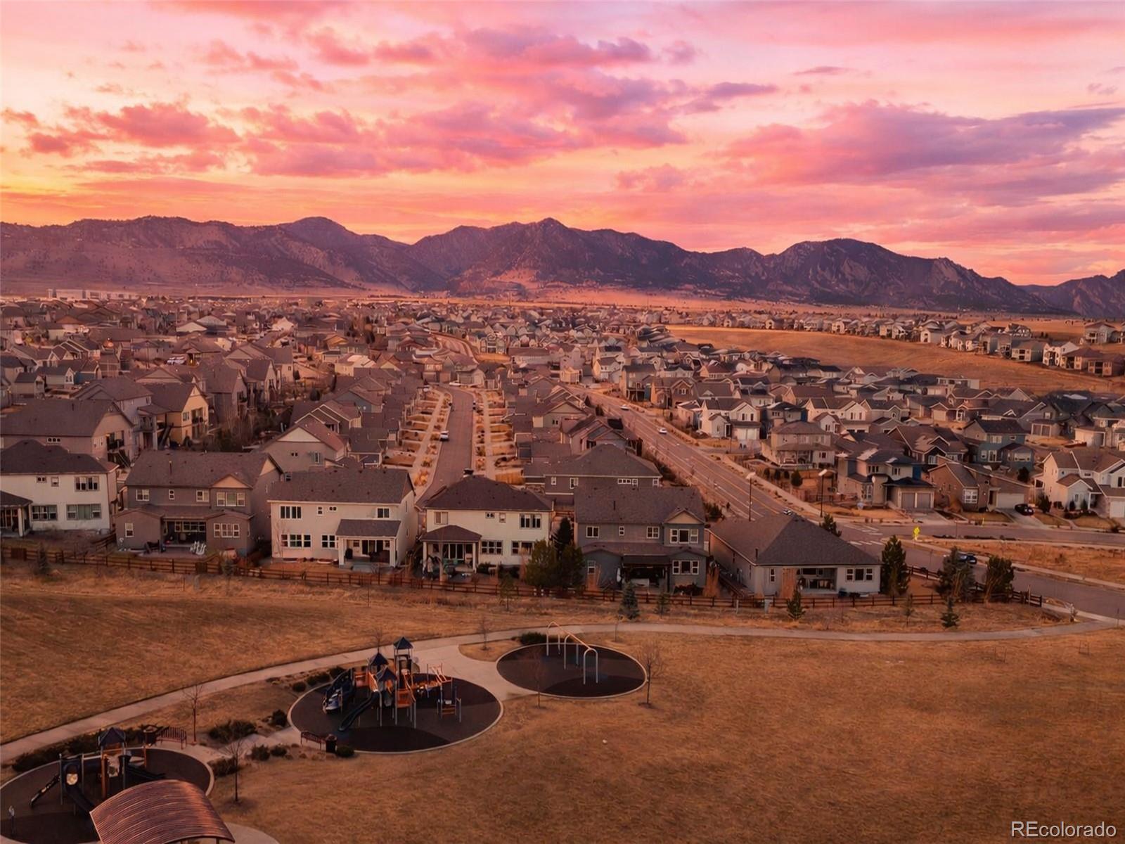 *** OPEN HOUSE SATURDAY, FEBRUARY 21ST FROM 11AM-1PM *** Experience Colorado living in this thoughtfully upgraded former model home, where designer finishes and high-end details elevate every space. The main level showcases an expansive open floor plan, seamlessly connecting the living room and kitchen for effortless everyday living and entertaining. A dramatic floor-to-ceiling tiled fireplace anchors the living area, while the oversized kitchen island, gas range cooktop, double ovens, walk-in pantry, and abundant cabinetry create a true chef’s workspace. A main-level bedroom with an en-suite bath offers flexibility for guests or multigenerational living, complemented by a powder bath and a spacious mudroom designed for daily convenience. Upstairs, the wide stairway leads to a bright loft area, two additional bedrooms, and a well-appointed bathroom. The primary suite provides a private retreat with a luxurious bath and upgraded finishes throughout. Top-of-the-line carpet and luxury lighting continue the home’s polished aesthetic. The finished basement expands the living space with its own kitchen, living room, and integrated Sonos surround sound system. Perfect for movie nights or hosting gatherings. An additional bedroom and bathroom add further versatility. The outdoor living space is just as impressive, with a covered back porch, extended patio, built-in gas line, and an outdoor gas fireplace. This property also backs directly to the park and open space with a private gate leading to the park. Enjoy sweeping views of the Flatirons and miles of nearby trails. The fully finished garage includes custom storage, while owned solar panels provide energy efficiency without additional financing. Located within a vibrant community offering a clubhouse, fitness center, pool, tennis courts, playgrounds, and easy access to local shops and restaurants, this home combines comfort, style, and convenience in one exceptional package!