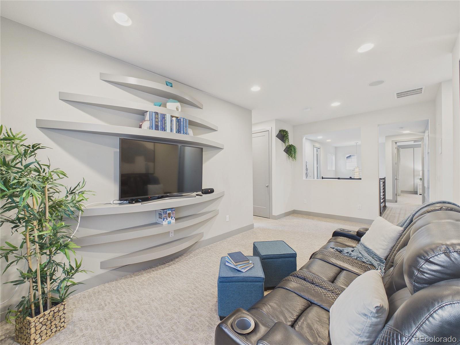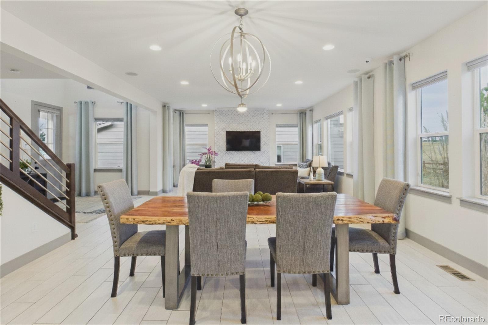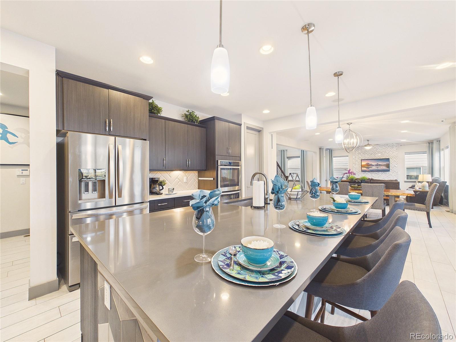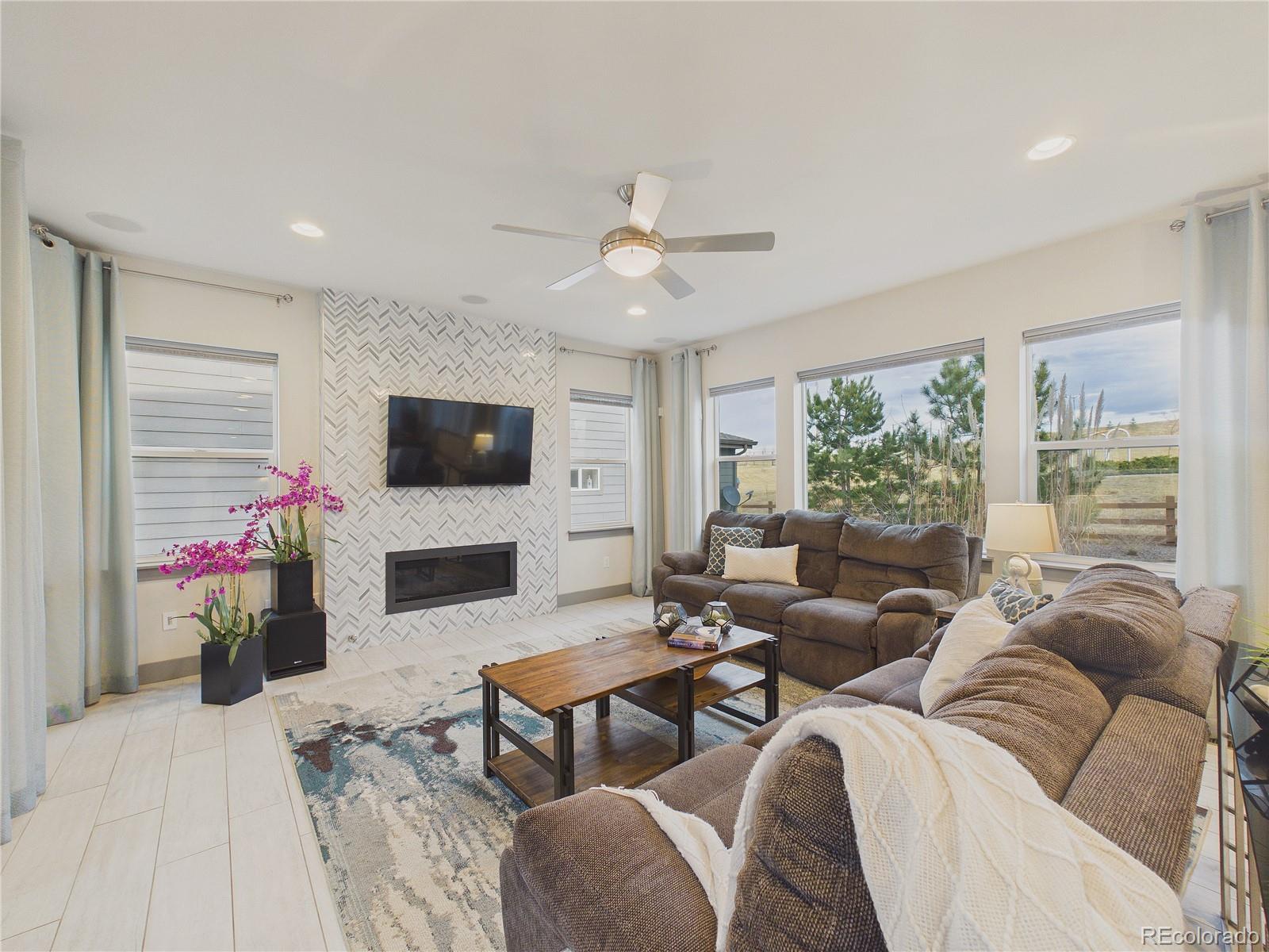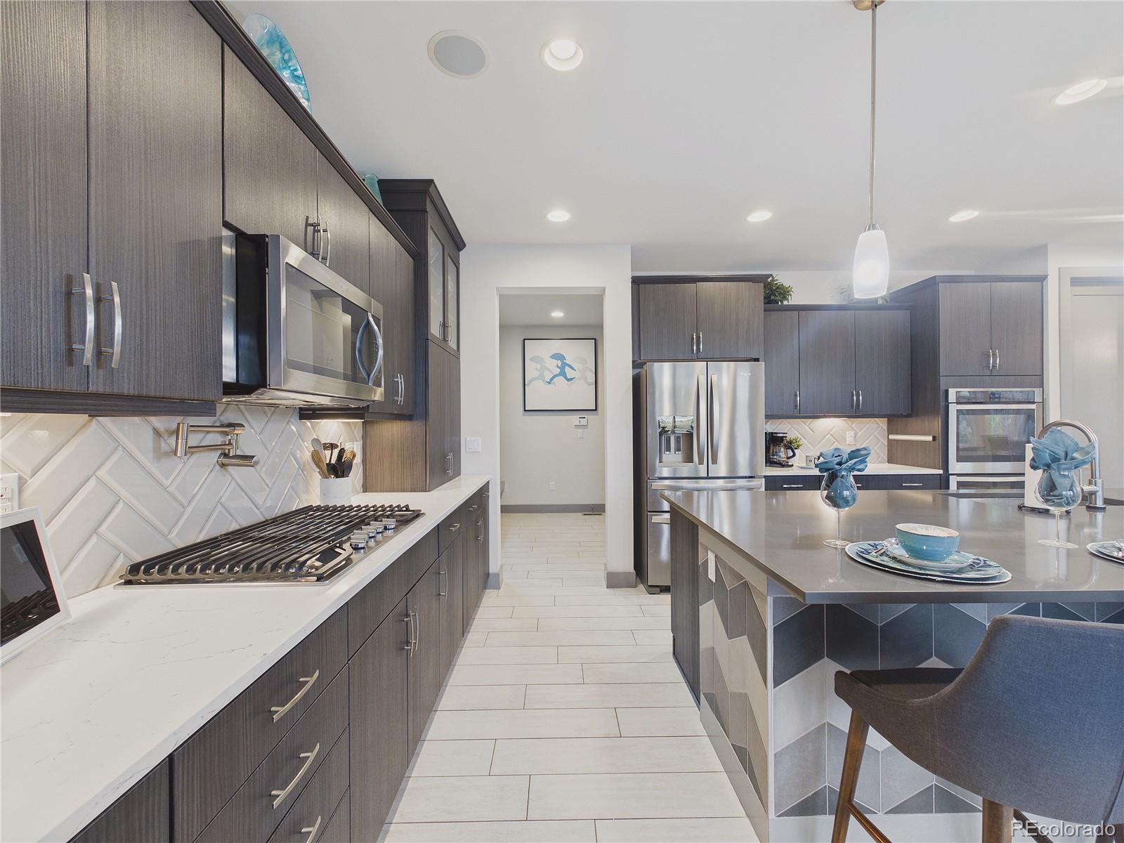 *** OPEN HOUSE SATURDAY, FEBRUARY 21ST FROM 11AM-1PM *** Experience Colorado living in this thoughtfully upgraded former model home, where designer finishes and high-end details elevate every space. The main level showcases an expansive open floor plan, seamlessly connecting the living room and kitchen for effortless everyday living and entertaining. A dramatic floor-to-ceiling tiled fireplace anchors the living area, while the oversized kitchen island, gas range cooktop, double ovens, walk-in pantry, and abundant cabinetry create a true chef’s workspace. A main-level bedroom with an en-suite bath offers flexibility for guests or multigenerational living, complemented by a powder bath and a spacious mudroom designed for daily convenience. Upstairs, the wide stairway leads to a bright loft area, two additional bedrooms, and a well-appointed bathroom. The primary suite provides a private retreat with a luxurious bath and upgraded finishes throughout. Top-of-the-line carpet and luxury lighting continue the home’s polished aesthetic. The finished basement expands the living space with its own kitchen, living room, and integrated Sonos surround sound system. Perfect for movie nights or hosting gatherings. An additional bedroom and bathroom add further versatility. The outdoor living space is just as impressive, with a covered back porch, extended patio, built-in gas line, and an outdoor gas fireplace. This property also backs directly to the park and open space with a private gate leading to the park. Enjoy sweeping views of the Flatirons and miles of nearby trails. The fully finished garage includes custom storage, while owned solar panels provide energy efficiency without additional financing. Located within a vibrant community offering a clubhouse, fitness center, pool, tennis courts, playgrounds, and easy access to local shops and restaurants, this home combines comfort, style, and convenience in one exceptional package!