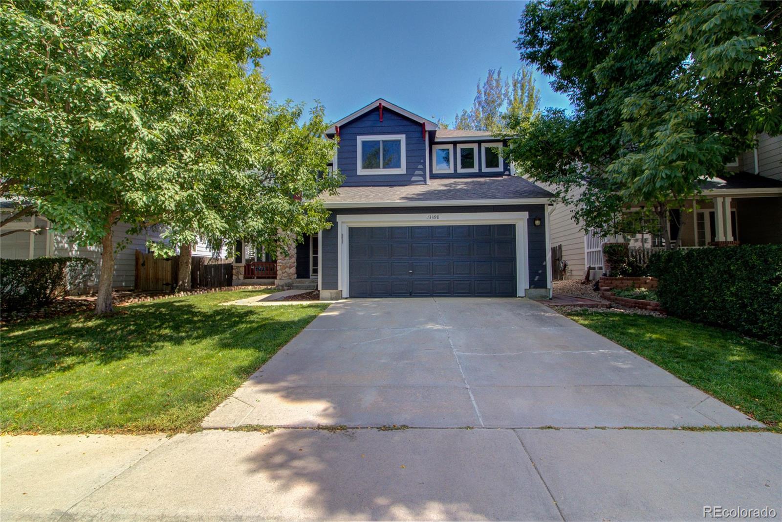 This lovely home is located on a quiet street in the sought-after Hunters Glen neighborhood. Some great updates have been done already, including new windows, new interior paint, new exterior paint, new concrete patio, and new roof. The bold exterior paint and front porch are so inviting. The foyer/entry will wow you with it’s the vaulted ceiling, curved staircase, and lots of windows. The front rooms can be a formal living room and dining or how you want to use it. On the other side of the staircase is an open floor plan featuring the family room, kitchen, and nook. The family room leads right out to the private backyard. There is a gas-line rough-in for a fireplace in the family room. The kitchen is filled with newer high-end appliances including an induction cook- top, low-profile built-in microwave, Bosch dishwasher, French door refrigerator, and a large single bowl sink. Clothes washer and dryer are in the mud room on the main level. Nice that all appliances are included. The primary bedroom is upstairs with vaulted ceiling, a new ceiling fan, a full wall of closets, and a 3/4 private bath with new tub. Upstairs has three additional bedrooms, and full bath. The 4th bedroom just needs a closet or armoire or use it as an office. The basement is fully finished providing another bedroom with new egress window, recreation room with new egress window and 3/4 bath. The backyard is private, level, fully fenced, and low maintenance with a large newer concrete patio partially covered with a pergola, small brick paver patio, and a small patch of artificial turf. Slightly oversize 2-car garage with a utility sink, gas-line, and rear exit door. Living here in Hunters Glen's means you get to enjoy their amazing amenities including an outdoor pool, tennis courts, clubhouse, playground, trails, and the lake. An important neighborhood point is its proximity to I-25,and light rail station. Check it out! 13398 Race St is the lowest priced home in Hunters Glen.