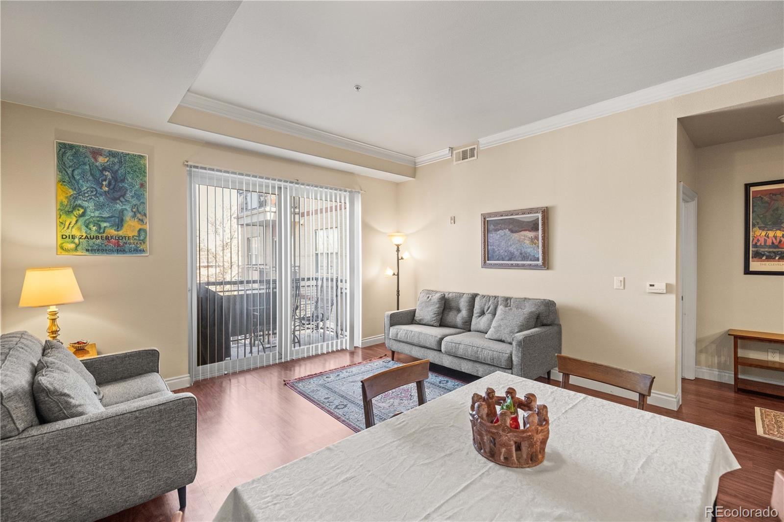 Welcome to 1700 Emerson Uptown Lofts! This 1,714 sq ft unit has three bedrooms and 3 bathrooms and is the largest unit in the building. These units don’t come on the market often, so make sure to see this one! The kitchen is open, with a kitchen island, gas range, granite countertops and drop lights. This is a great space for entertaining with the kitchen, living and dining area open with great light from the outside patio. The main floor also has one-bedroom, full bath and a sizable closet. The stairs lead up to the primary bedroom with an ensuite, and nice size closet. There is an additional bedroom and a huge full bathroom. This level also has closet space to envy. There is one parking space in the secured underground garage, and an additional outside covered space attached to the building. The building is secure and can only be accessed with a fob or key. The patio/balcony overlooks the common area that has a fireplace, and seating for entertaining on our beautiful Colorado days! Located in the Uptown neighborhood. This is a vibrant, walkable neighborhood, it has an urban feel with a diverse mix of historic and modern housing. With lively bars, restaurants and entertainment venues like the Ogden Theatre and Fillmore Auditorium there is always something to do with a vibe that is energetic and creative!