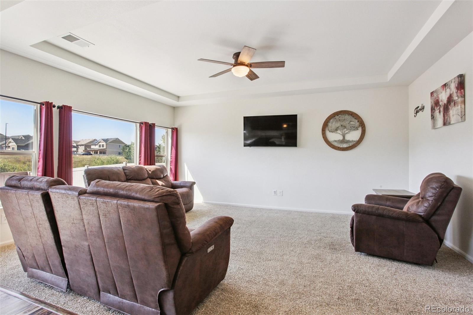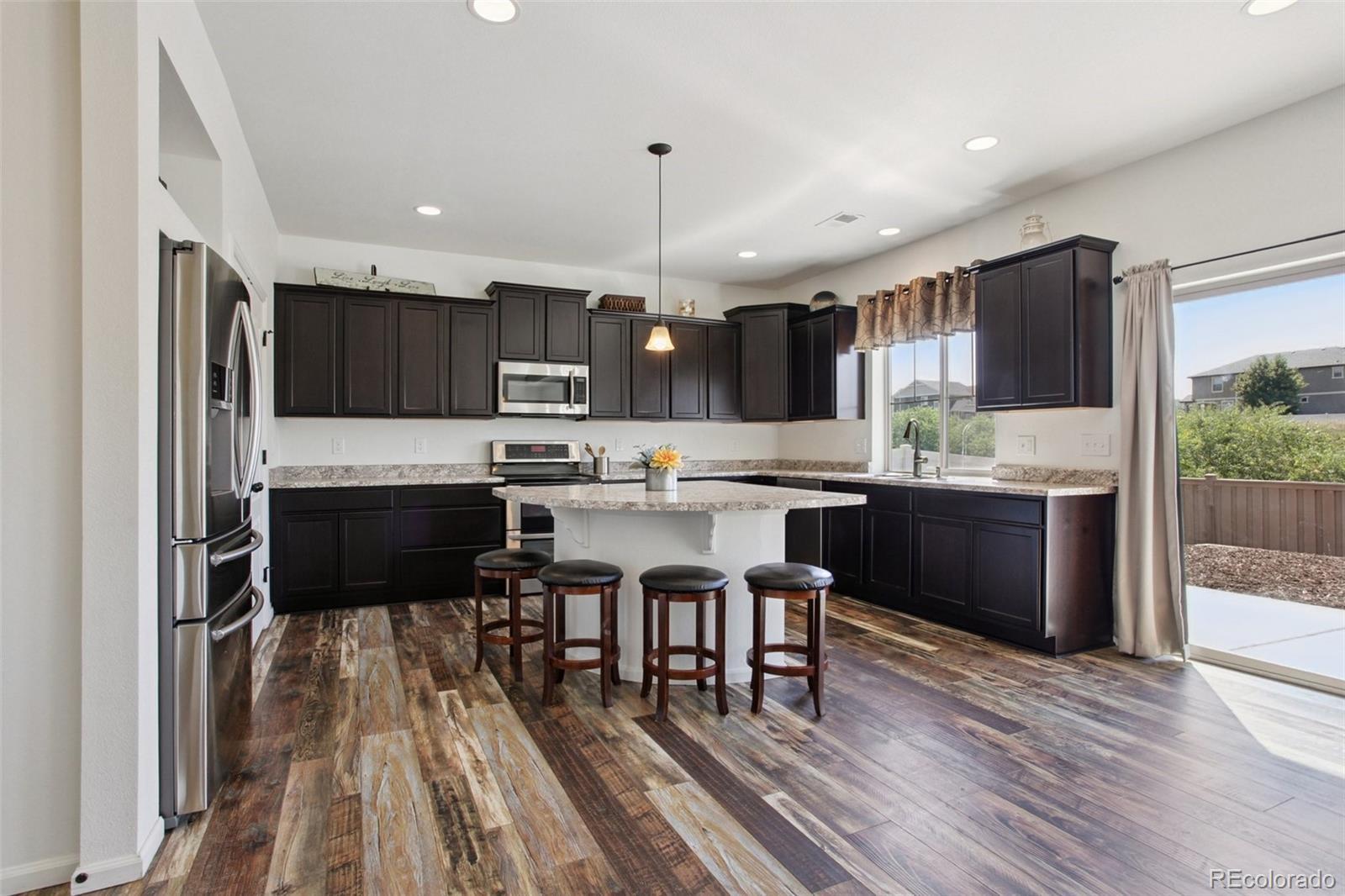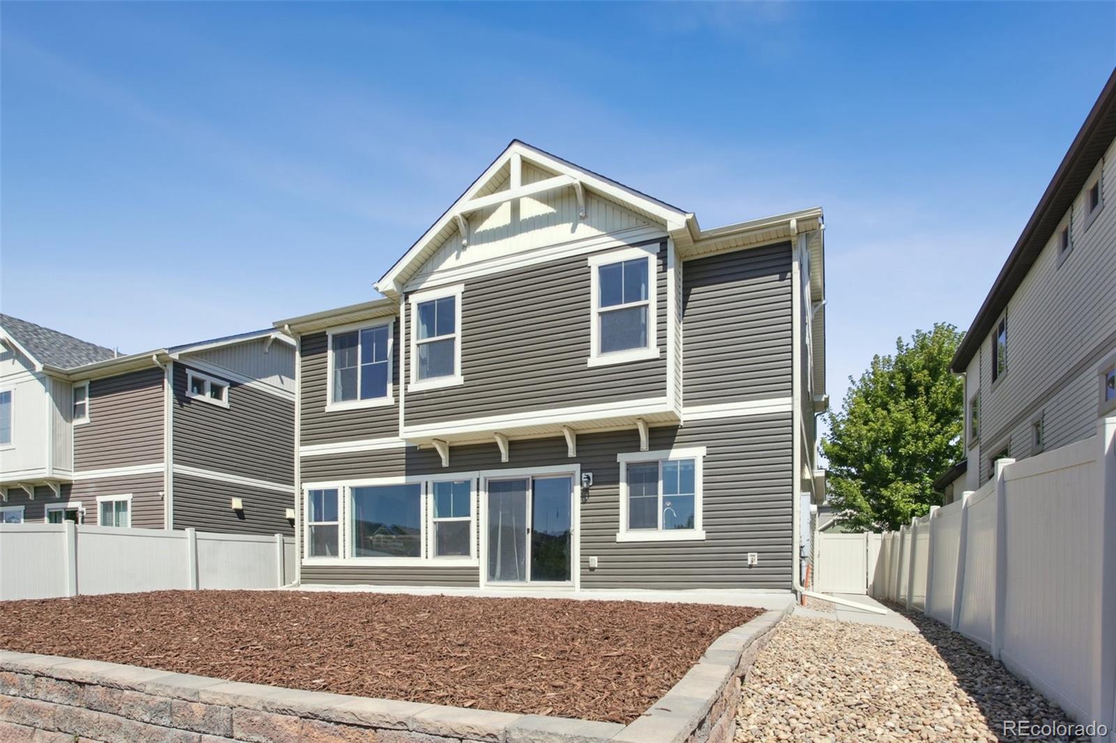 Welcome to this beautifully maintained 4-bedroom, 2.5-bathroom home offering the perfect blend of comfort, style, and functionality. From the moment you arrive, you’ll notice the attention to detail with upgraded concrete work on the driveway and expansive back patio. A two-car garage provides convenience, while the inviting curb appeal sets the tone for the rest of the property. Inside, the open-concept floor plan is filled with natural light and designed for modern living. The chef’s kitchen is a true highlight, featuring upgraded cabinetry, a spacious walk-in pantry, a large island, stainless steel appliances, and abundant storage - perfect for both everyday meals and entertaining. Upstairs, you’ll find four generously sized bedrooms, including a spacious primary suite complete with a walk-in closet and private en-suite bath. An additional full bathroom and a conveniently located laundry room add to the home’s thoughtful design. Step outside to your freshly landscaped backyard, fully fenced for privacy and ready for summer gatherings. The concrete patio spans the entire width of the home, offering ample space for outdoor dining, relaxation, and entertaining - all while backing to open green space with no future backyard neighbors. Perfectly situated in a highly desirable location, this home is within walking distance to schools, dining, coffee shops, grocery stores, and public transportation. Commuters will love the quick access to E-470, I-70, Denver International Airport, and downtown Denver. There are no additional monthly HOA fees. This home truly stands out as an excellent value, combining modern upgrades, a functional layout, and an unbeatable location. Don’t miss the opportunity to make it yours!