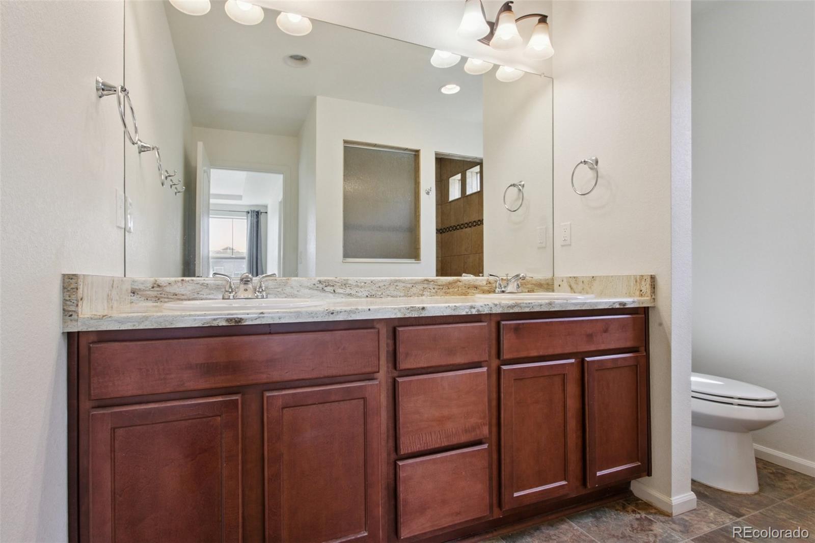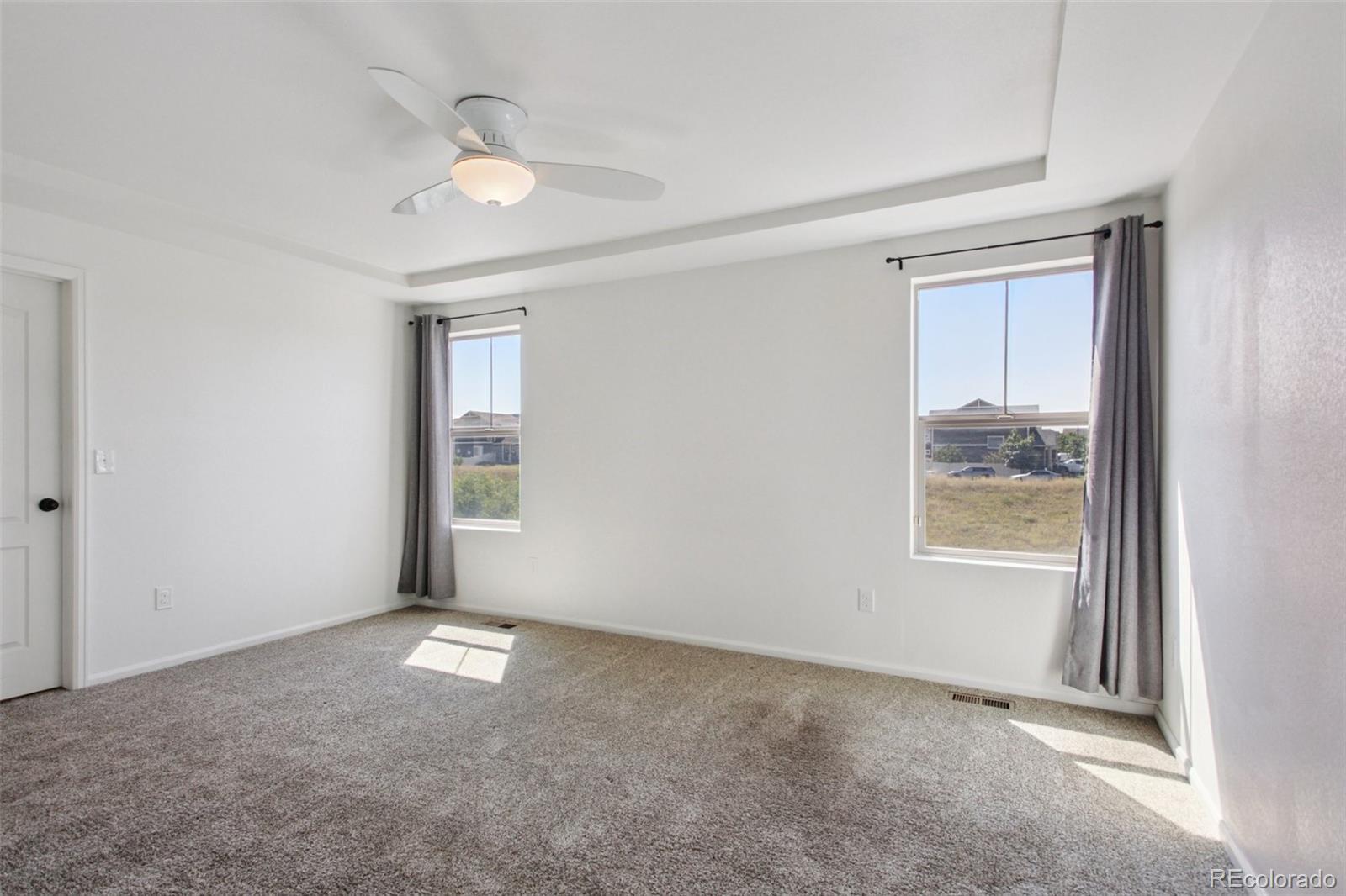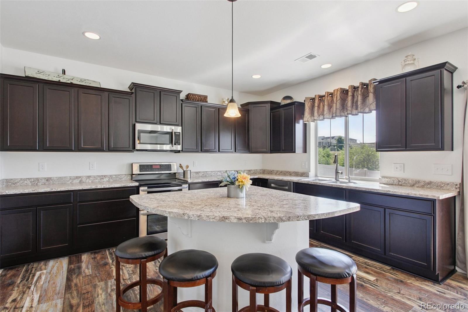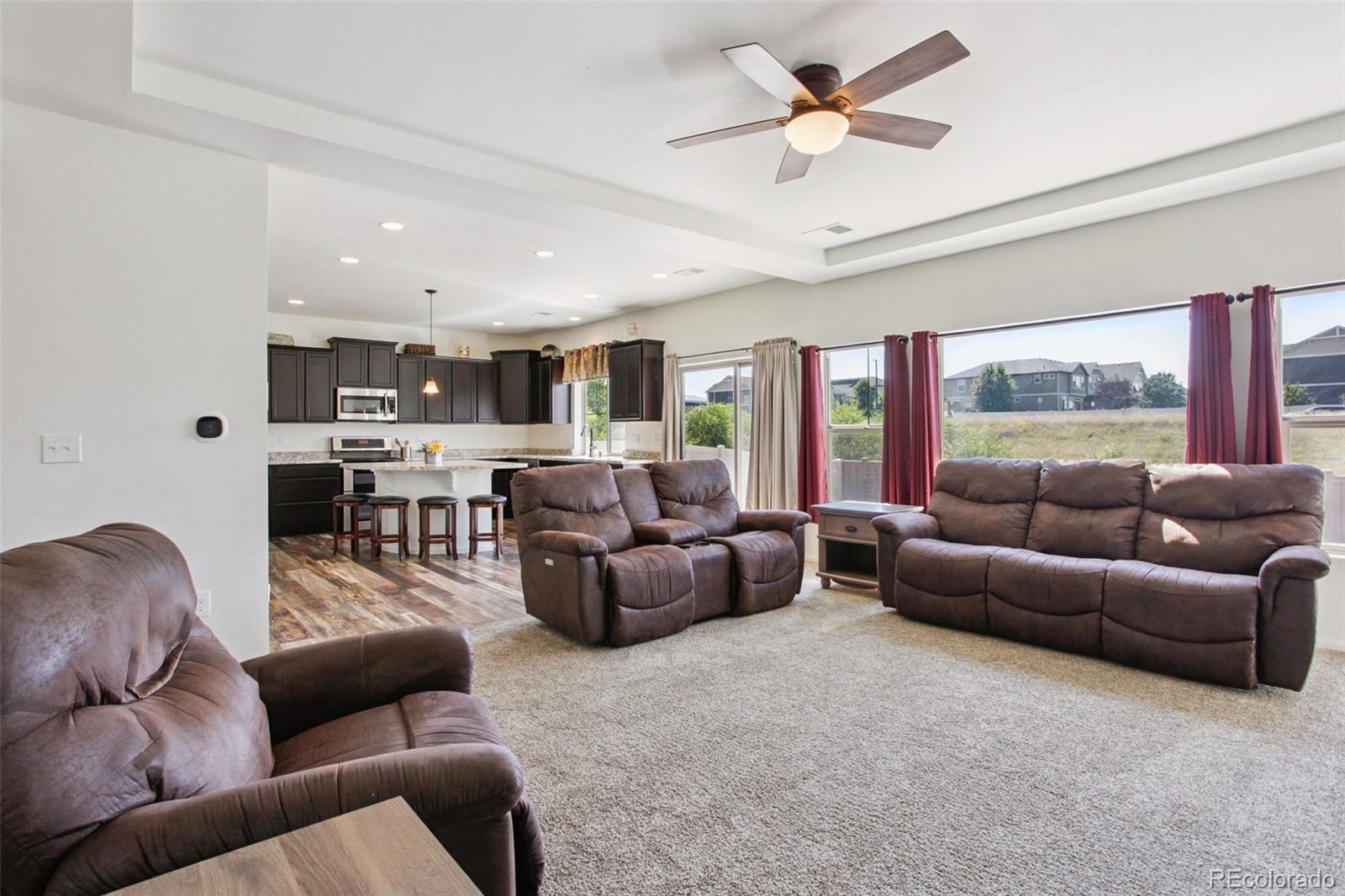 Welcome to this beautifully maintained 4-bedroom, 2.5-bathroom home offering the perfect blend of comfort, style, and functionality. From the moment you arrive, you’ll notice the attention to detail with upgraded concrete work on the driveway and expansive back patio. A two-car garage provides convenience, while the inviting curb appeal sets the tone for the rest of the property. Inside, the open-concept floor plan is filled with natural light and designed for modern living. The chef’s kitchen is a true highlight, featuring upgraded cabinetry, a spacious walk-in pantry, a large island, stainless steel appliances, and abundant storage - perfect for both everyday meals and entertaining. Upstairs, you’ll find four generously sized bedrooms, including a spacious primary suite complete with a walk-in closet and private en-suite bath. An additional full bathroom and a conveniently located laundry room add to the home’s thoughtful design. Step outside to your freshly landscaped backyard, fully fenced for privacy and ready for summer gatherings. The concrete patio spans the entire width of the home, offering ample space for outdoor dining, relaxation, and entertaining - all while backing to open green space with no future backyard neighbors. Perfectly situated in a highly desirable location, this home is within walking distance to schools, dining, coffee shops, grocery stores, and public transportation. Commuters will love the quick access to E-470, I-70, Denver International Airport, and downtown Denver. There are no additional monthly HOA fees. This home truly stands out as an excellent value, combining modern upgrades, a functional layout, and an unbeatable location. Don’t miss the opportunity to make it yours!