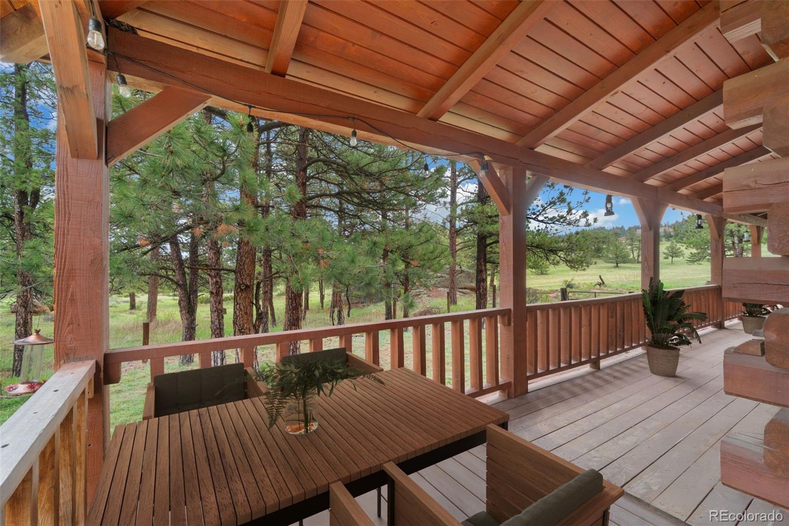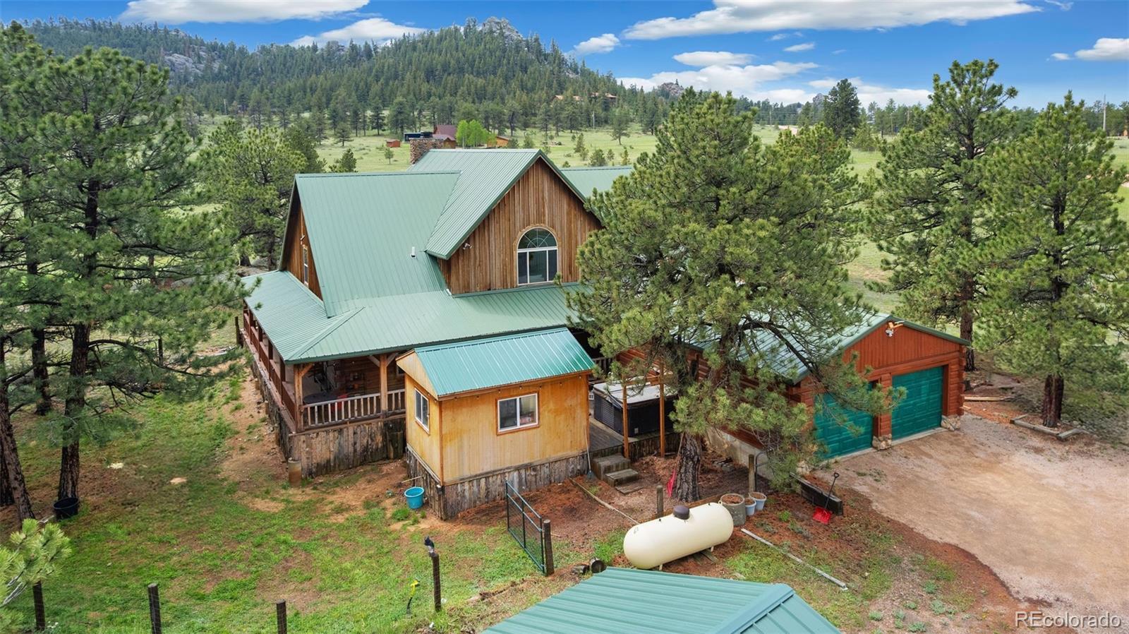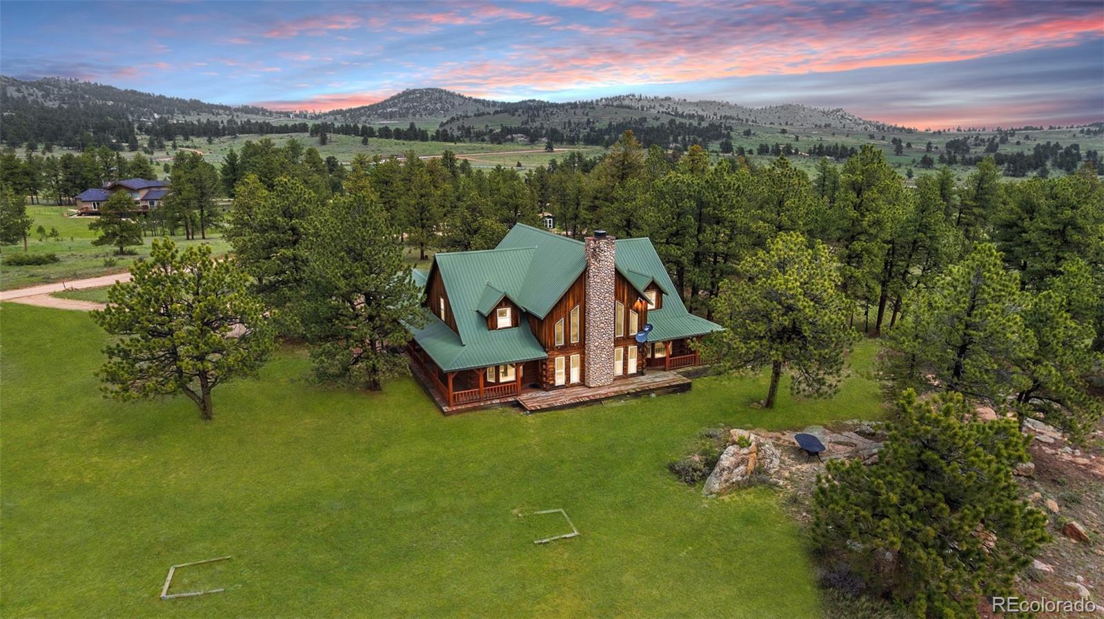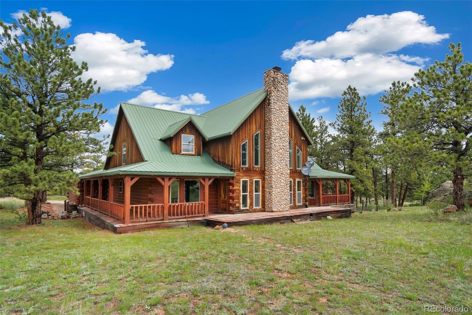 Experience the perfect blend of craftsmanship and natural beauty in this exceptional 4-bedroom, 3-bath custom log home nestled on 3.52 acres in the heart of Glacier View Meadows. Constructed with rare sinker cypress logs sourced from Mississippi trees, this 3,037 sq ft residence offers a unique and timeless appeal. Step inside to discover soaring cathedral ceilings and tongue-and-groove beamed ceilings that enhance the spacious living areas. The impressive great room features a handcrafted mantel and carved staircase timbers, adding to the home's rustic charm. The spacious kitchen and dining area, adorned with timber ceilings, provide the perfect setting for gatherings. The master suite boasts a luxurious 5-piece bath and dual walk-in closets, offering a private retreat. A loft-style recreation room provides ample space to entertain. Enjoy the outdoors on the expansive wraparound deck, or relax in the hot tub under star-filled skies. The property also includes a heated 2-car garage, a shop/workout room, and a 20x24 pole barn, providing ample space for hobbies and storage. Located just 50 minutes from Fort Collins, this home offers easy access to hiking trails, fishing spots, and the amenities of Red Feather Lakes. The Glacier View Meadows HOA maintains roads, private community ponds, open spaces, and hiking trails, ensuring a well-kept and vibrant community. Don't miss the opportunity to own this one-of-a-kind mountain retreat that seamlessly combines rustic elegance with modern comforts.
