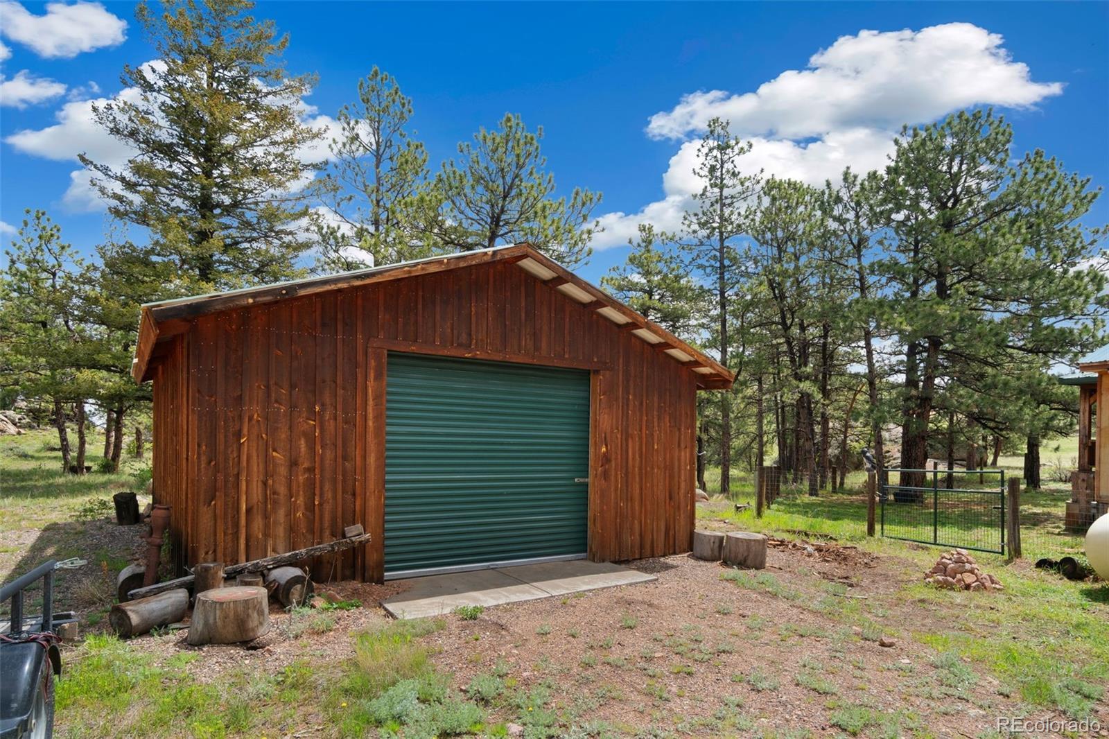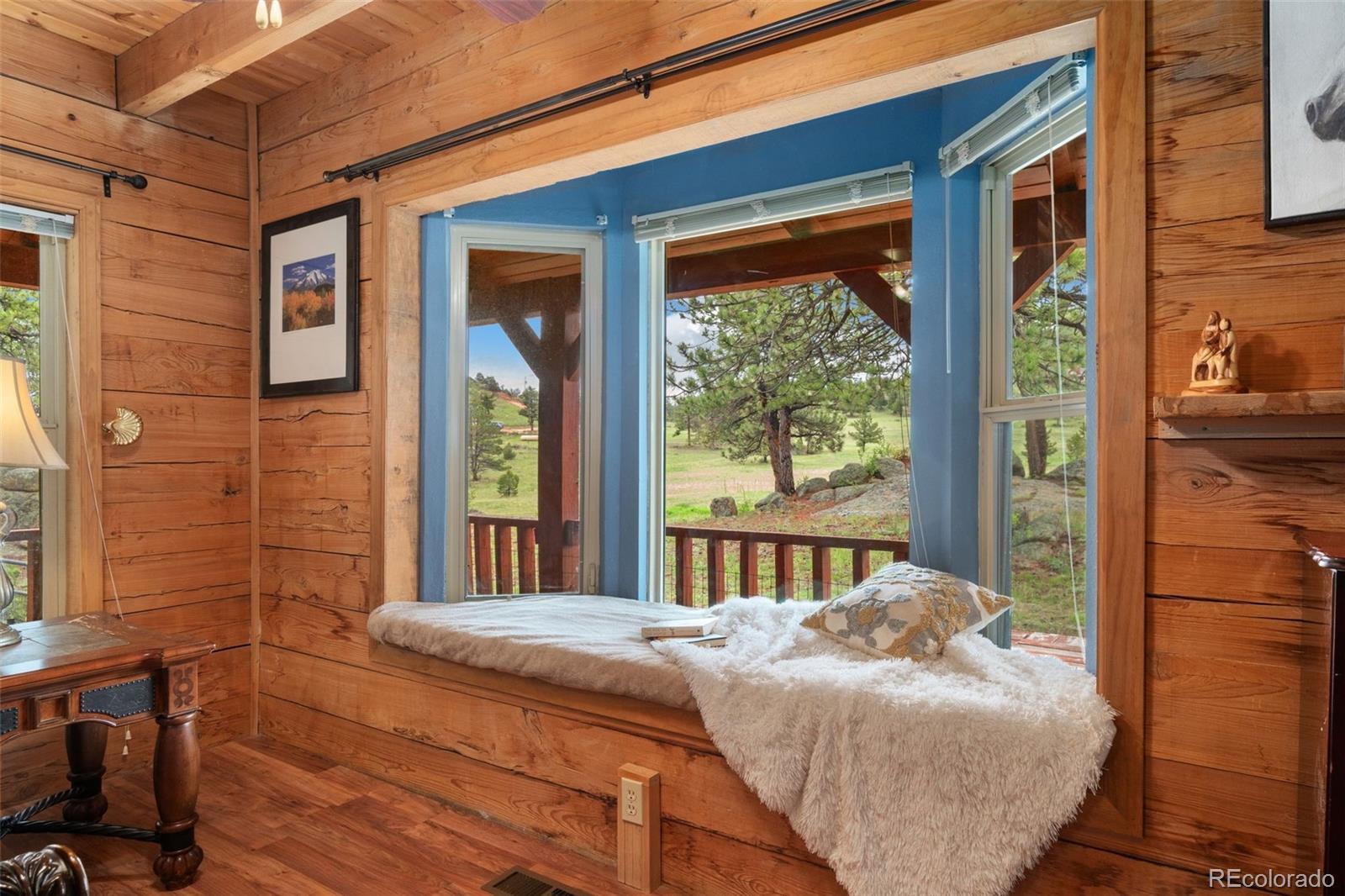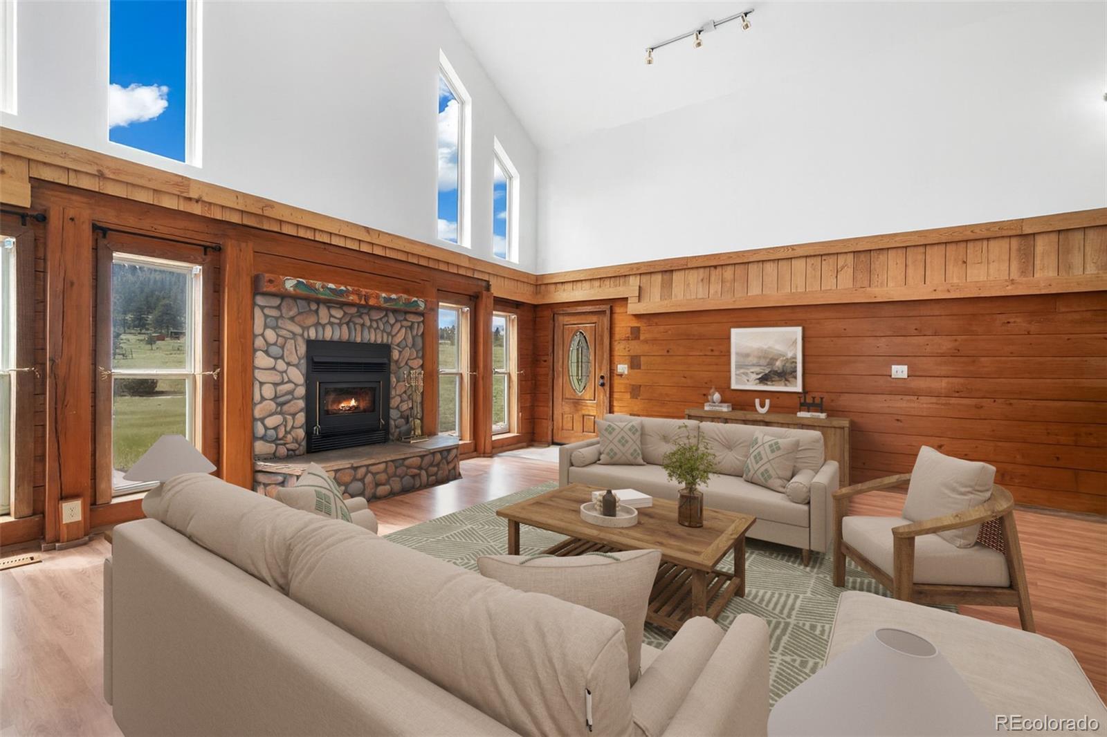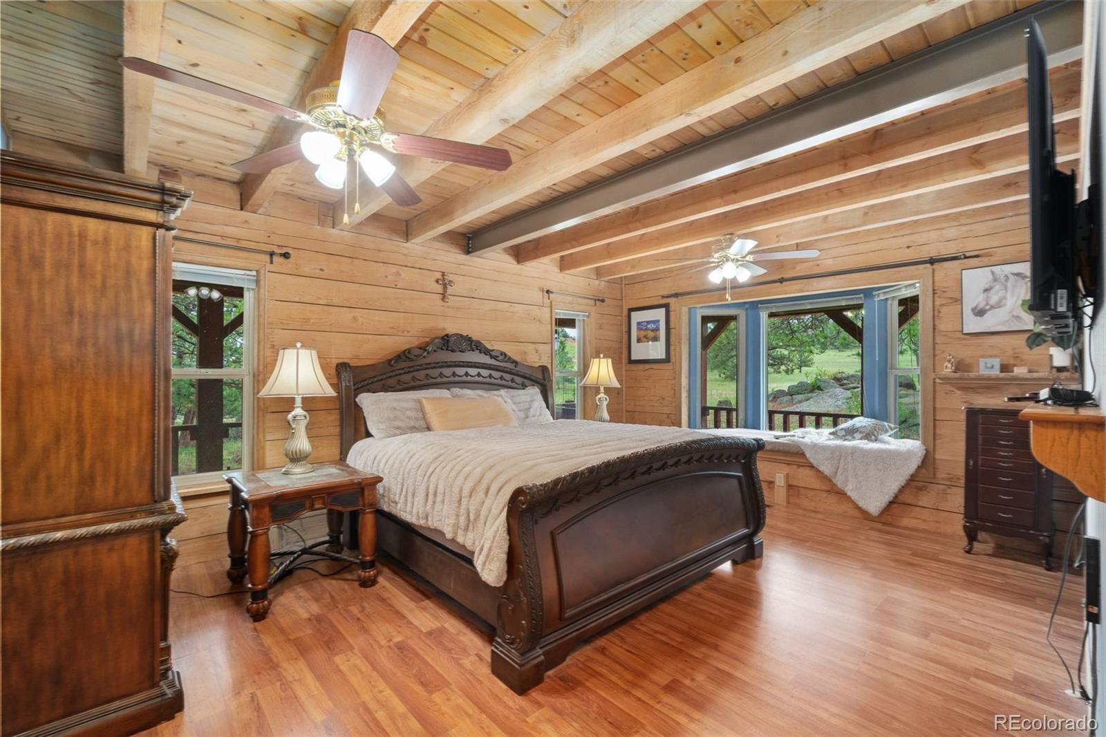 Experience the perfect blend of craftsmanship and natural beauty in this exceptional 4-bedroom, 3-bath custom log home nestled on 3.52 acres in the heart of Glacier View Meadows. Constructed with rare sinker cypress logs sourced from Mississippi trees, this 3,037 sq ft residence offers a unique and timeless appeal. Step inside to discover soaring cathedral ceilings and tongue-and-groove beamed ceilings that enhance the spacious living areas. The impressive great room features a handcrafted mantel and carved staircase timbers, adding to the home's rustic charm. The spacious kitchen and dining area, adorned with timber ceilings, provide the perfect setting for gatherings. The master suite boasts a luxurious 5-piece bath and dual walk-in closets, offering a private retreat. A loft-style recreation room provides ample space to entertain. Enjoy the outdoors on the expansive wraparound deck, or relax in the hot tub under star-filled skies. The property also includes a heated 2-car garage, a shop/workout room, and a 20x24 pole barn, providing ample space for hobbies and storage. Located just 50 minutes from Fort Collins, this home offers easy access to hiking trails, fishing spots, and the amenities of Red Feather Lakes. The Glacier View Meadows HOA maintains roads, private community ponds, open spaces, and hiking trails, ensuring a well-kept and vibrant community. Don't miss the opportunity to own this one-of-a-kind mountain retreat that seamlessly combines rustic elegance with modern comforts.