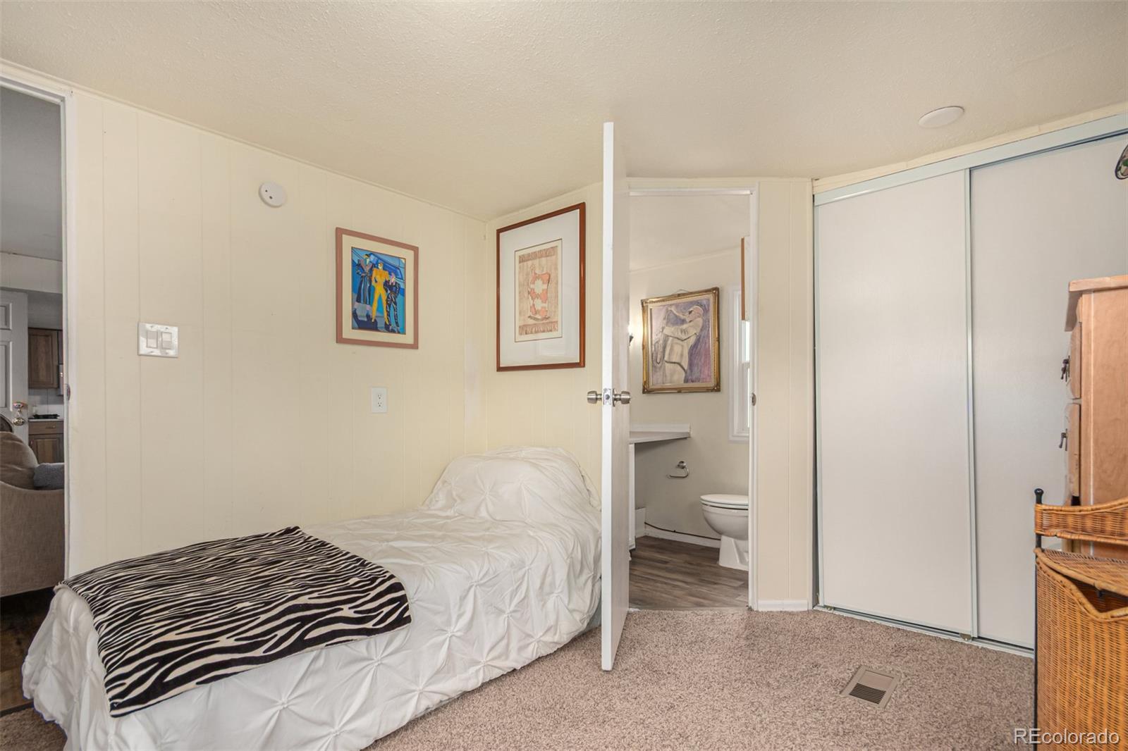 Welcome home to this charming 3-bedroom, 2-bath retreat in the Mountainside Estates community, nestled in the gorgeous foothills of Golden. Enjoy an open-concept living area filled with natural light, complete with decorative touches and cozy finishes. The kitchen has been updated and offers classic cabinetry and plenty of storage and vinyl flooring throughout the kitchen, living area, hall and laundry area. Plus there is room for a dining room table in the kitchen. The bedrooms provide generous space and comfort. There is updating lighting fixtures. Stay cool this summer with swamp cooler. Love your outdoor living area with beautiful landscaping perennial blooming flowers, shade trees, and room to relax or entertain. Plus there is off street parking. Community amenities to enjoy are the Clubhouse, swimming pool, playground. This community is divinely located in the foothills with quick access to the front range for hiking or visit the nearby Colorado Mills Mall area, dining and with mountain views. Approximately five minutes drive to Golden Light Rail station.