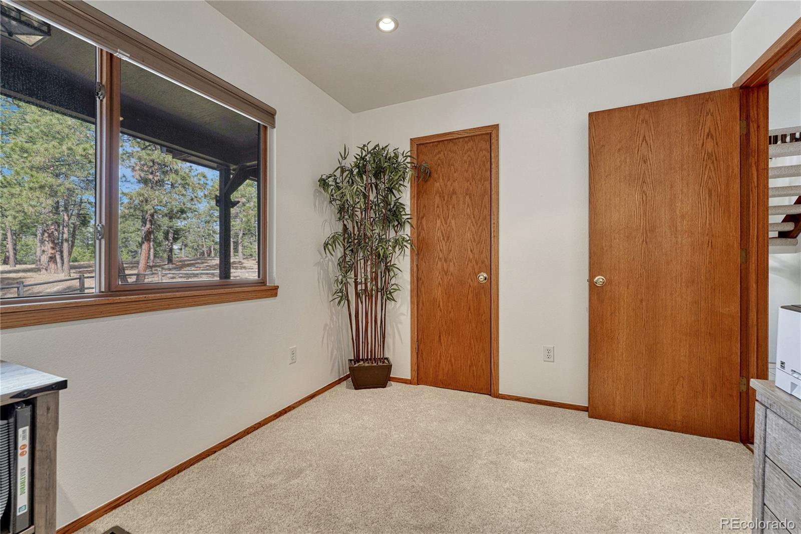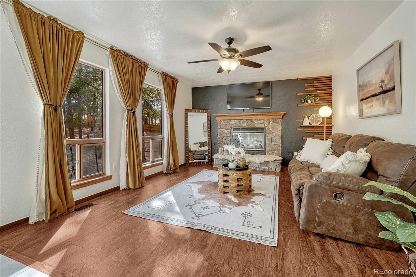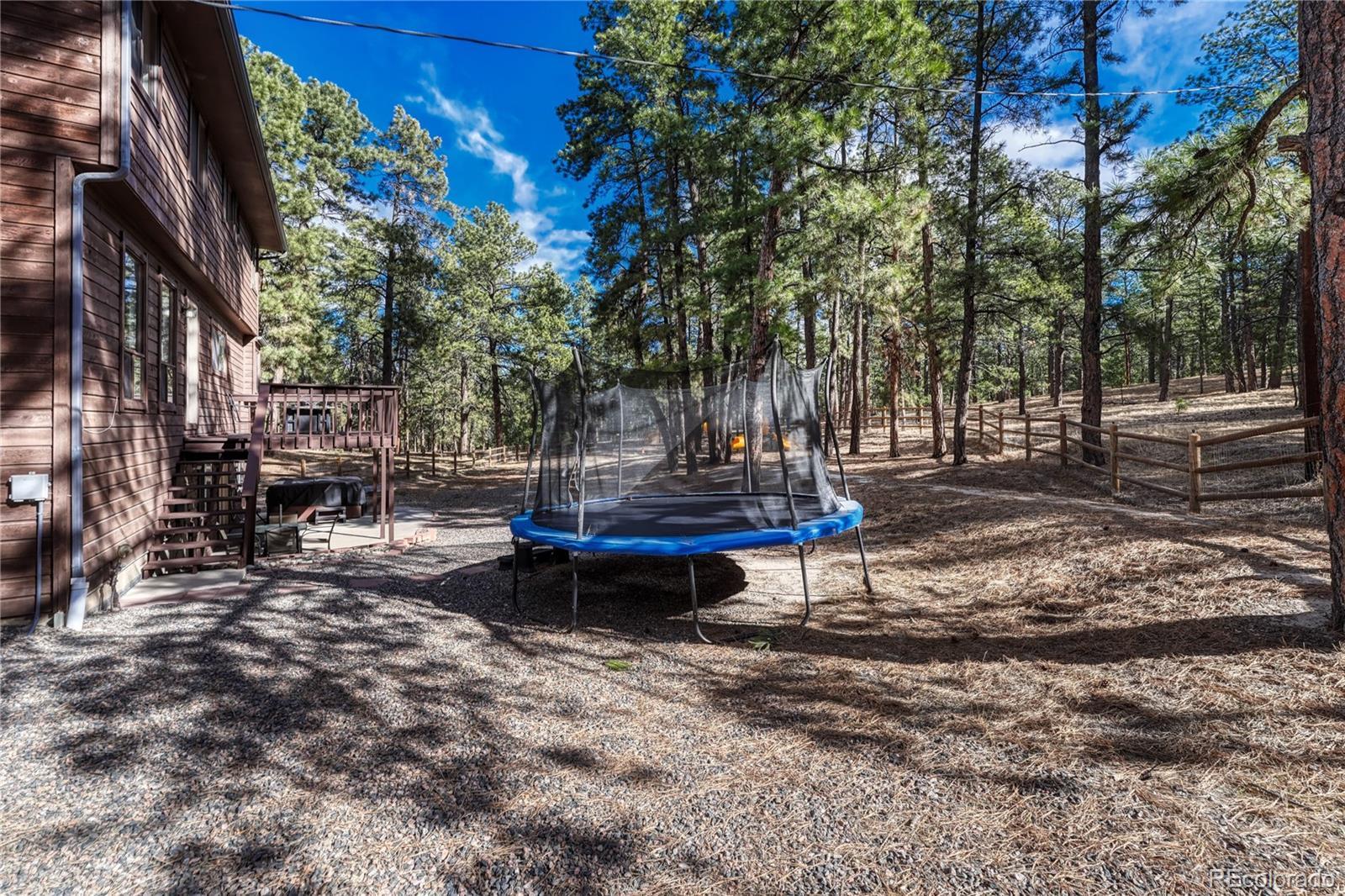 Nestled on a secluded 5-acre lot surrounded by beautiful mature pines, this stunning 2-story Contemporary Mountain Style home offers the perfect blend of privacy, space, and Colorado charm. Featuring 6 spacious bedrooms and 4 bathrooms, a Full Walk-Out Basement this home provides room for everyone — whether you're hosting guests, working from home, or simply enjoying peaceful living. The oversized 3-car garage offers ample storage for vehicles, toys, and equipment. Recent updates add both comfort and value, including a newer furnace & a/c. The Deck off the Back of the home is perfect for relaxing and taking in the serene, wooded setting. For those seeking a little extra space and lifestyle flexibility, the horse corral makes this property ideal for equestrian enthusiasts or anyone wanting room to roam. Plus 2- additional sheds and a New Fence installed and Bonus a Zip Line in Backyard. Located in the highly sought-after neighborhood of The Pines, this property offers the rare combination of acreage living with community appeal. If you’ve been looking for privacy, trees, and space — without sacrificing convenience — this is the one.