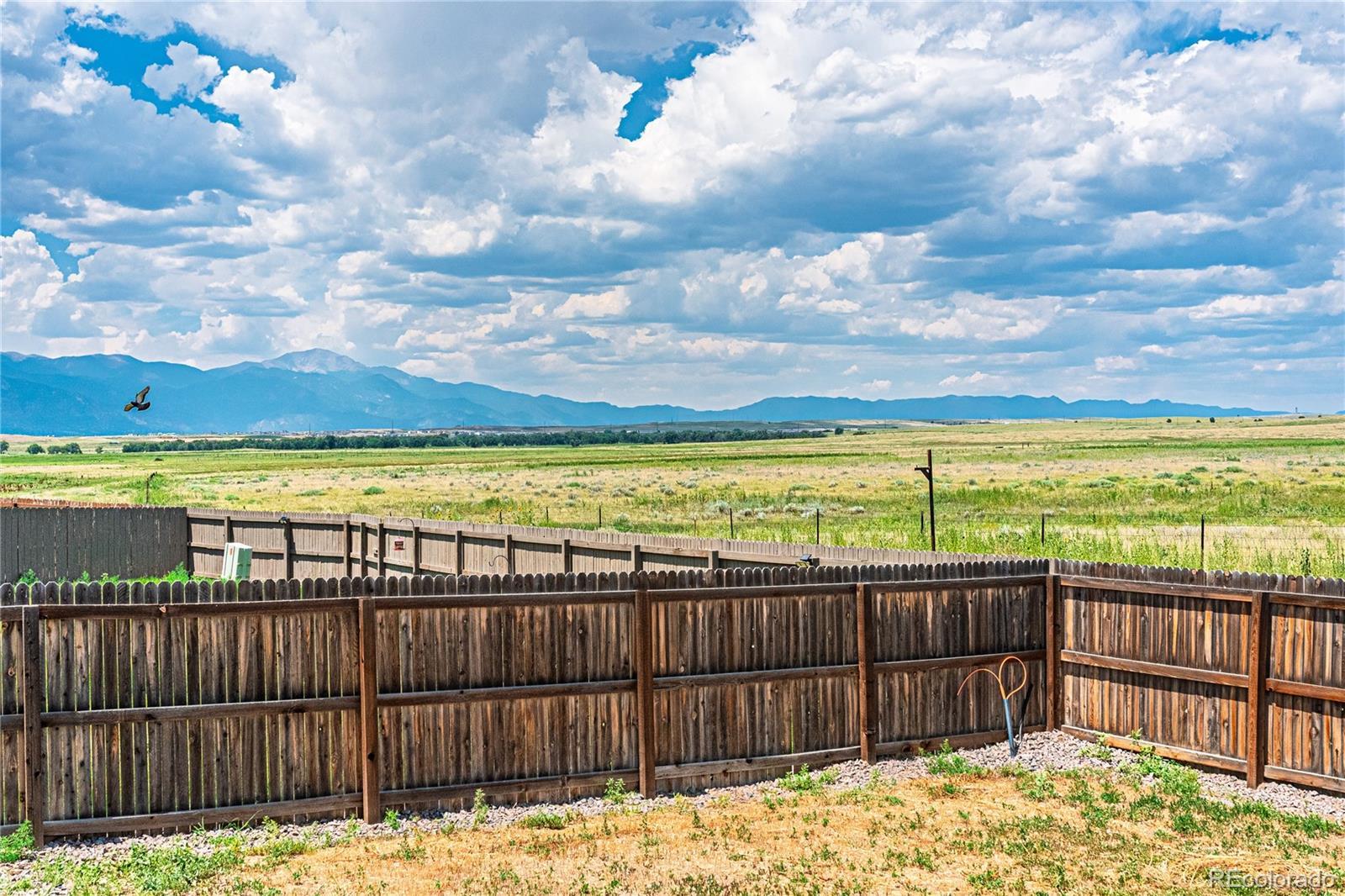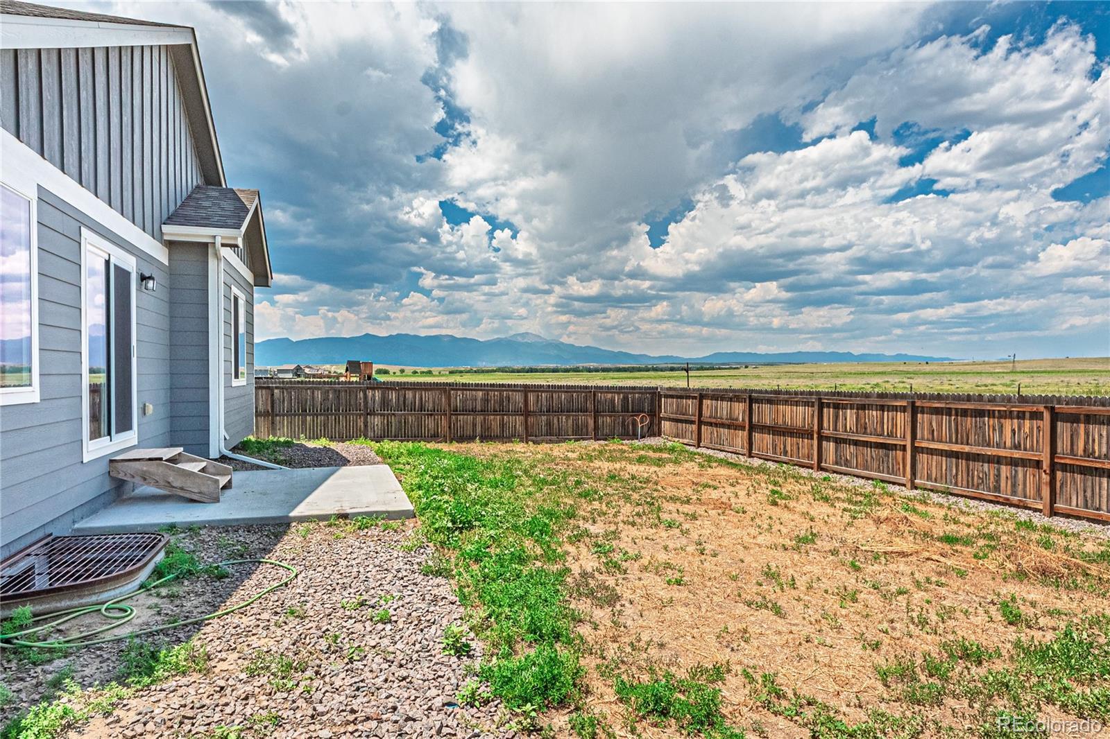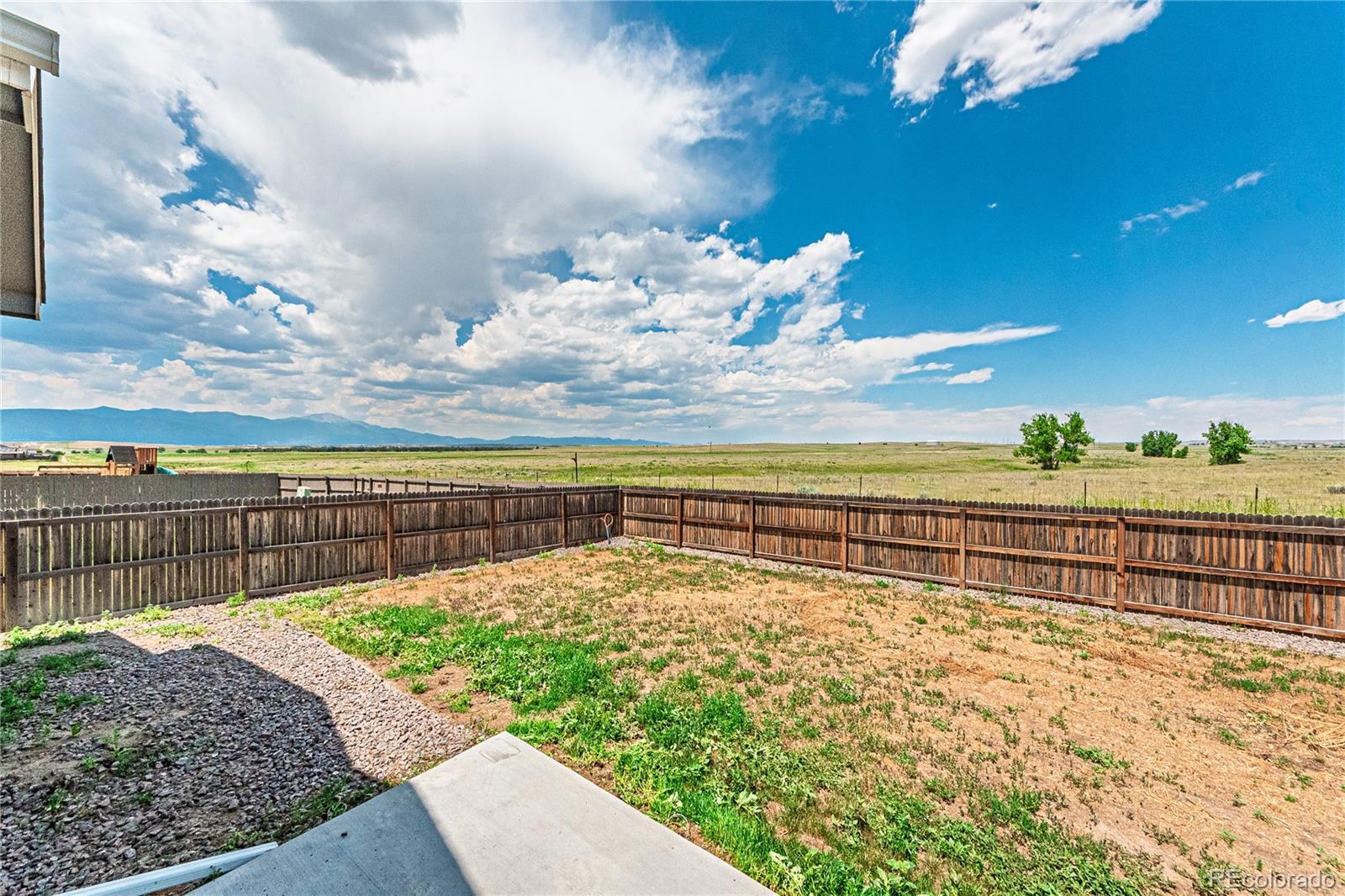 Welcome home to this spacious and upgraded 5-bedroom, 3-bath ranch-style home with a 3-car garage, nestled in the fast-growing, military-friendly community of Lorson Ranch. From the moment you arrive, you’ll appreciate the curb appeal and quiet setting with no rear neighbors—this lot backs directly to open space, offering rare privacy and GORGEOUS panoramic views of Pikes Peak and the front range. Step inside to soaring vaulted ceilings and a bright, open layout that flows seamlessly through the main living space. The gourmet kitchen features granite countertops, stainless steel appliances, a large center island with bar seating, and rich cabinetry. The kitchen overlooks a massive living and dining area—ideal for entertaining or family gatherings. The home is equipped with air conditioning to help cool you off during the hot Colorado summers. The main-level master retreat includes its own vaulted ceiling, large window with open views, and a stylish barn door leading to a luxurious 5-piece en-suite bathroom with a spa-style shower, oversized soaking tub, dual vanities, and a walk-in closet. Two more main-floor bedrooms and a full bath offer plenty of space for guests or home offices. Downstairs, the fully finished basement expands the living space with two additional bedrooms, a large full bathroom, a generous secondary living area, and a hardwood-floored flex space—perfect for a gym, playroom, or creative studio. Additional highlights include a main-level laundry room, abundant storage, and a location just minutes from Grand Mountain School (K–8) and multiple military bases including Fort Carson and Peterson SFB. Whether you're looking for space to grow or a turn-key family home, this one checks all the boxes!
