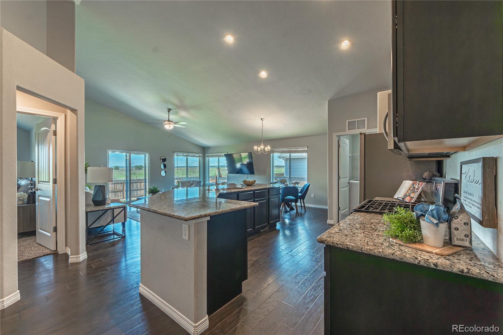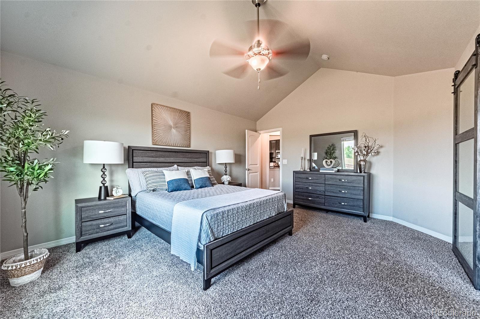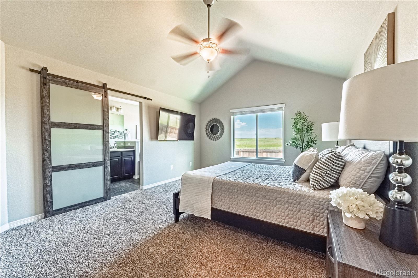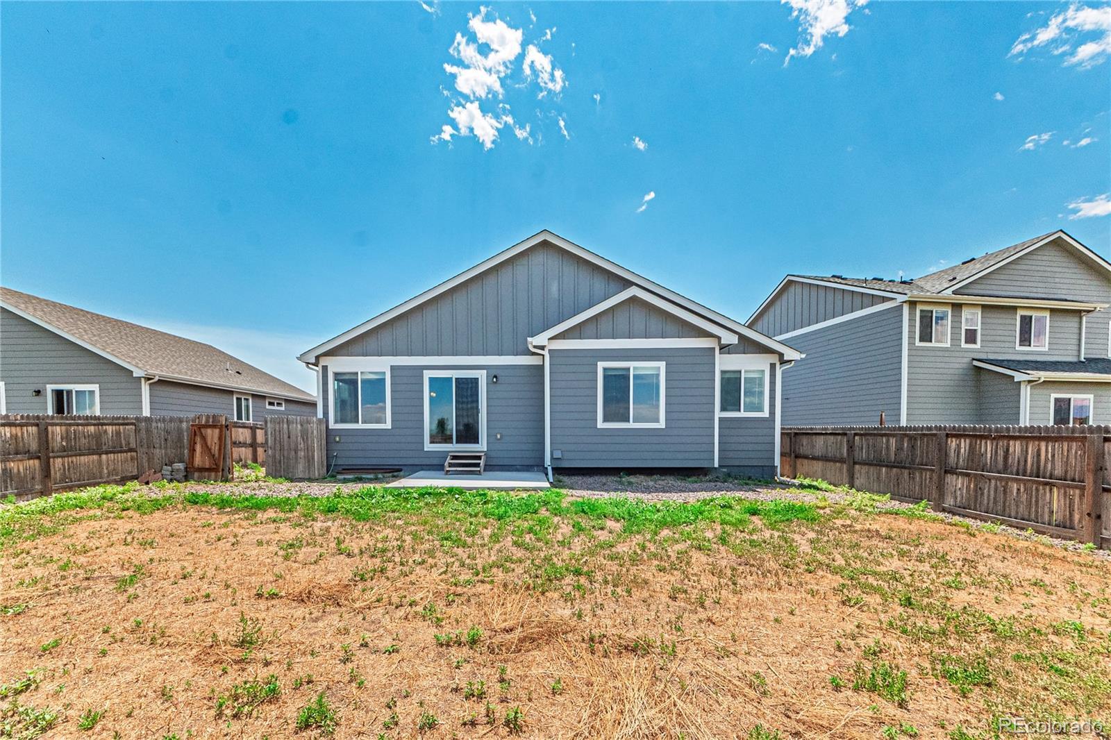 Welcome home to this spacious and upgraded 5-bedroom, 3-bath ranch-style home with a 3-car garage, nestled in the fast-growing, military-friendly community of Lorson Ranch. From the moment you arrive, you’ll appreciate the curb appeal and quiet setting with no rear neighbors—this lot backs directly to open space, offering rare privacy and GORGEOUS panoramic views of Pikes Peak and the front range. Step inside to soaring vaulted ceilings and a bright, open layout that flows seamlessly through the main living space. The gourmet kitchen features granite countertops, stainless steel appliances, a large center island with bar seating, and rich cabinetry. The kitchen overlooks a massive living and dining area—ideal for entertaining or family gatherings. The home is equipped with air conditioning to help cool you off during the hot Colorado summers. The main-level master retreat includes its own vaulted ceiling, large window with open views, and a stylish barn door leading to a luxurious 5-piece en-suite bathroom with a spa-style shower, oversized soaking tub, dual vanities, and a walk-in closet. Two more main-floor bedrooms and a full bath offer plenty of space for guests or home offices. Downstairs, the fully finished basement expands the living space with two additional bedrooms, a large full bathroom, a generous secondary living area, and a hardwood-floored flex space—perfect for a gym, playroom, or creative studio. Additional highlights include a main-level laundry room, abundant storage, and a location just minutes from Grand Mountain School (K–8) and multiple military bases including Fort Carson and Peterson SFB. Whether you're looking for space to grow or a turn-key family home, this one checks all the boxes!